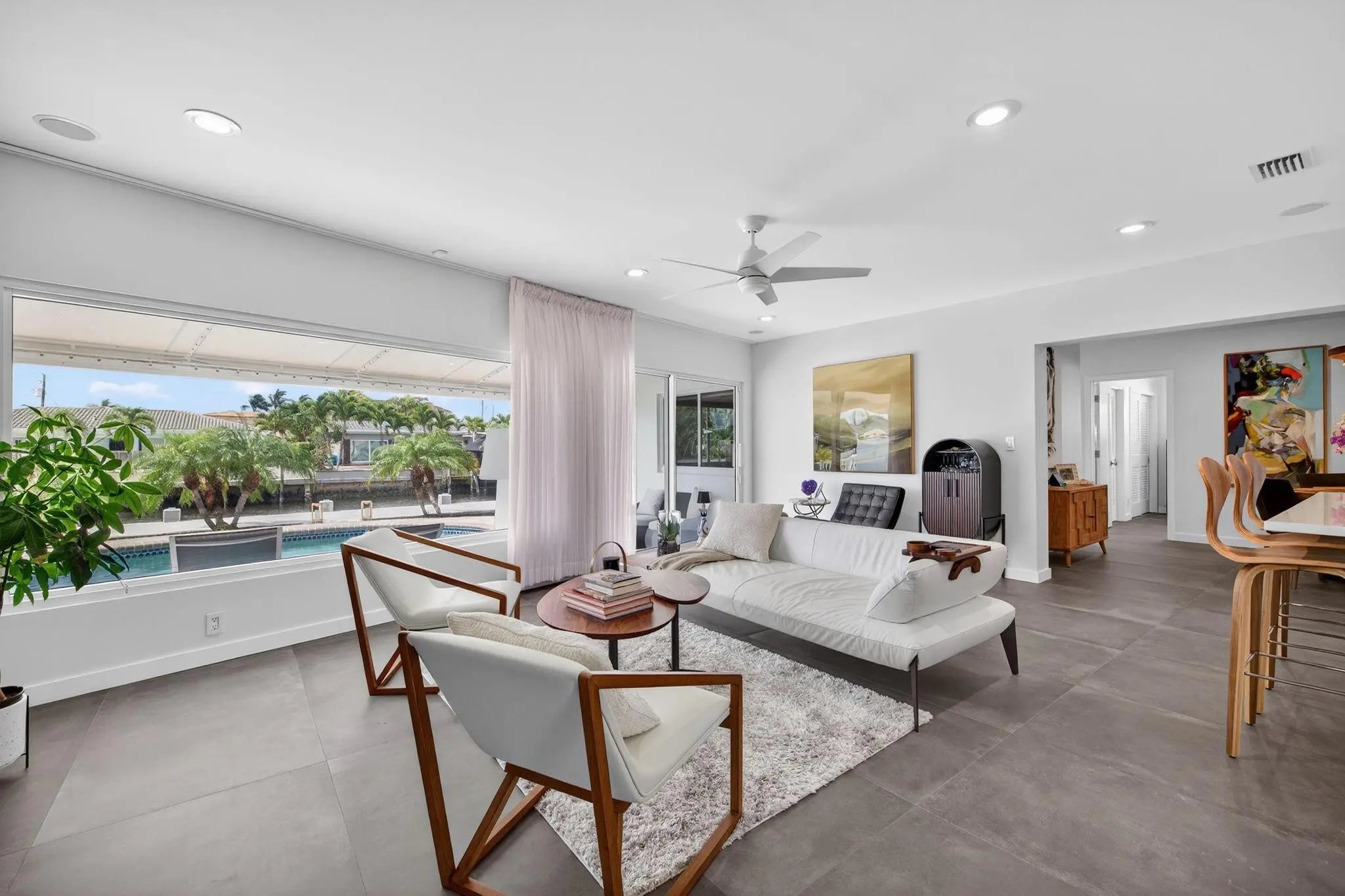 Enjoy this fully renovated waterfront home that has been meticulously crafted. From the striking chef’s kitchen with custom cabinetry, waterfall quartz counter, & top-tier appliances, to the expansive open-living concept that seamlessly flows from one area to the next with an oversized slate grey porcelain tile. The primary bedroom features an en-suite bath, walk-in closet, & generous sitting area offering direct pool/water views. 3 additional bedrooms & guest bath are positioned on the opposite wing of the home perfect. The outdoor living experience is equally exceptional w/ brand-new pool, and concrete seawall featuring a 75 ft dock. With it's prime location renters have easy access to Lauderdale By The Sea, known for its walkable downtown with local shops & waterfront dining and beaches