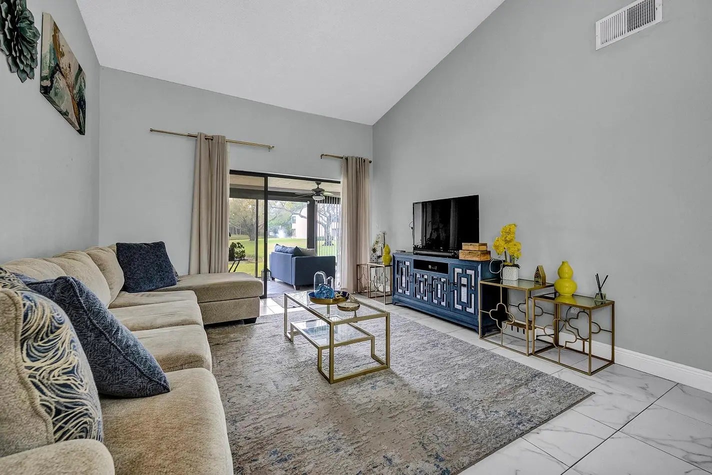 Beautifully upgraded villa with peaceful water views! This spacious home features tile and wood flooring throughout, vaulted ceilings, fresh interior paint, and fully renovated primary and guest bathrooms. The oversized kitchen offers abundant cabinetry and granite countertops. Ideally located directly across from the community pool, tennis courts, and clubhouse with a recently updated fitness center. Enjoy a prime Boca Raton location close to restaurants, shopping, and fine dining. Just a short walk to Boca Municipal Golf Course, approximately 2 miles to Town Center Mall, 4 miles to FAU, and minutes to Mizner Park and the beach. Quiet, well-maintained, pet-friendly all-ages community and no mandatory membership. HOA includes water, basic cable, and internet. Hurricane shutters included.