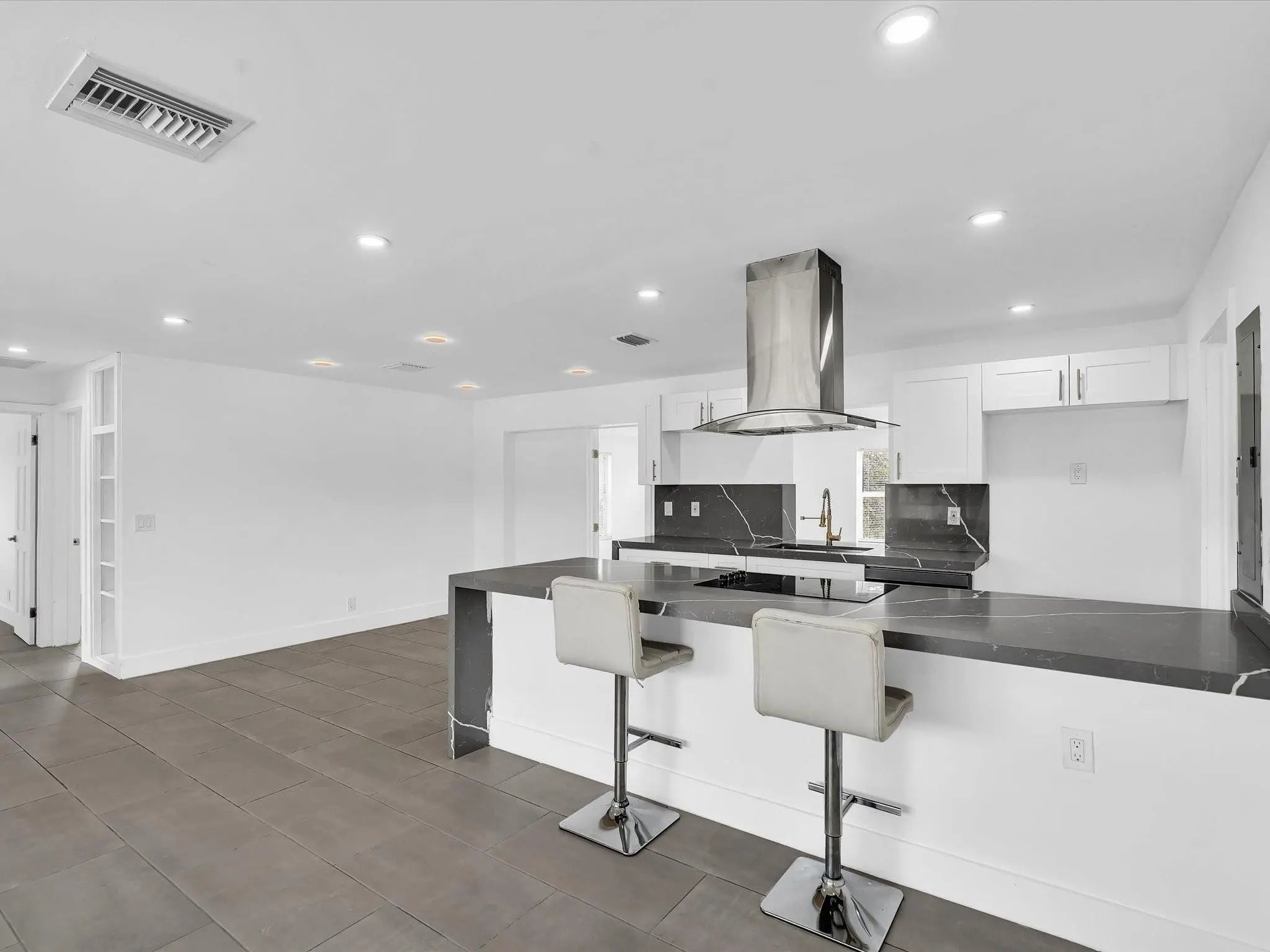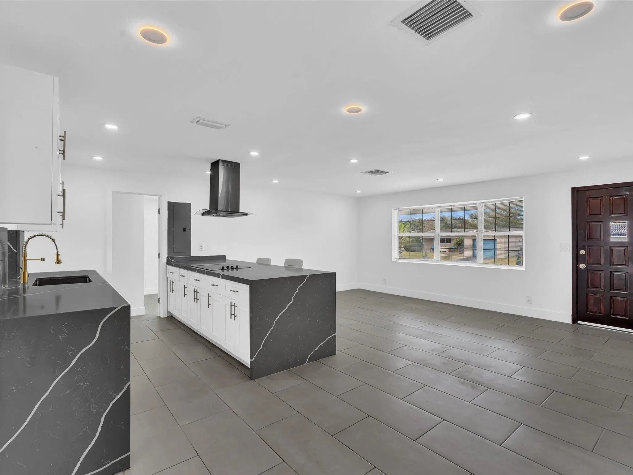 Experience the ultimate in modern waterfront living at 5710 SW 54th Ct, Davie. This stunning 3/2 residence features a sleek California-style driveway and a fully renovated, no-HOA interior. The open layout is draped in elegant tile flooring, leading to a gourmet custom kitchen with a breathtaking waterfall island. Both bathrooms have been meticulously upgraded with designer finishes.The spacious backyard is a private paradise, offering prime lakefront views and the best sunset vistas in South Florida. Enjoy the freedom of no homeowners association in a prime location. This turnkey home combines contemporary luxury with serene outdoor living. Perfect for buyers seeking a move-in-ready, modern oasis with expansive water views.