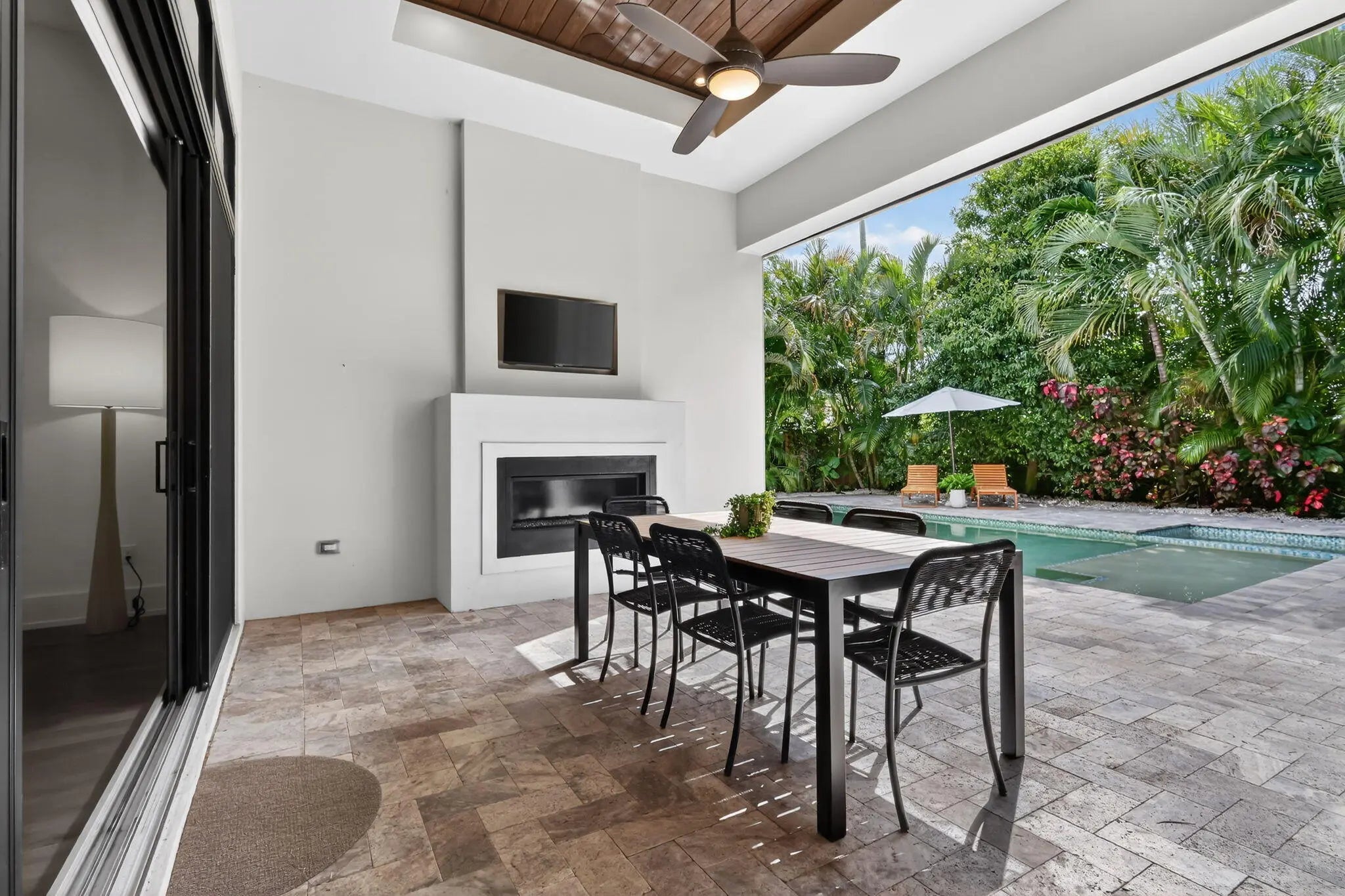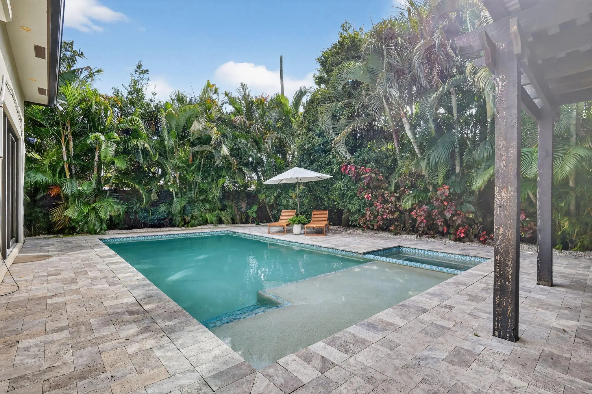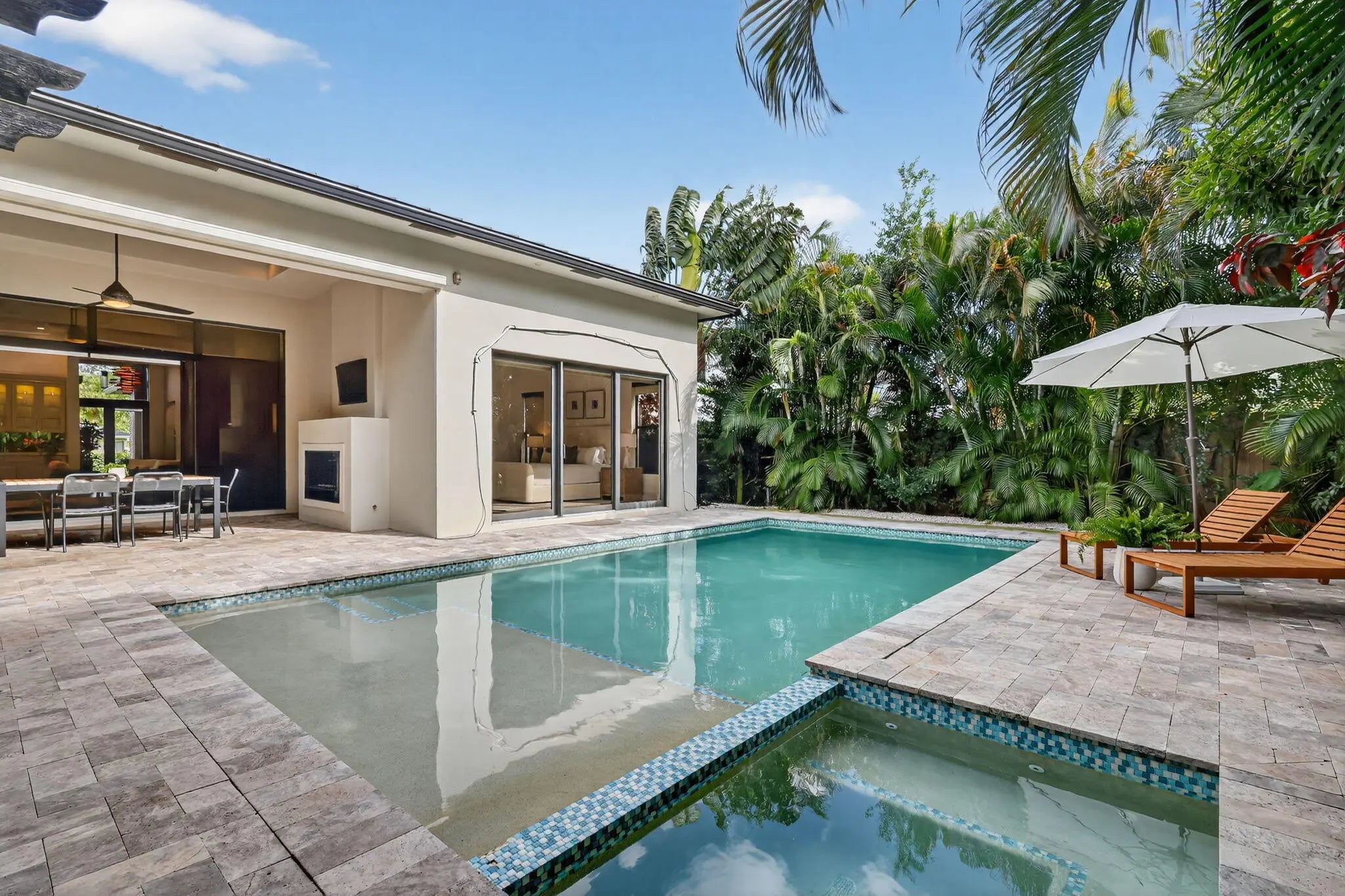 Luxurious 5-Bedroom Pool Home with Resort-Style Outdoor Living Step into refined Florida living in this stunning 5-bedroom, 4.5-bath estate offering 3,632 sq. ft. of beautifully designed space. From the moment you arrive, this home impresses with its grand entry doors, brass hardware, and a dramatic 14' foyer illuminated by statement lighting. The spacious primary suite is a true retreat--offering 270 sq. ft. of serenity, two generous walk-in closets, and a spa-inspired bath, overlooking the salt pool and spa. Each guest bedroom is thoughtfully sized, providing comfort, privacy, and flexibility for family, hosting, or a home office. Designed for effortless entertaining, the home features an expansive living room with volume ceilings, custom wet bar, and more The chef's kitchen boasts high-end appliances, a gas range, custom cabinetry, and a central island ideal for entertaining. Step outside to your private paradise, featuring a loggia with fireplace and tv, built-in barbecue, outdoor kitchen, shower, and custom lighting. The heated saltwater pool and spa offer year-round enjoyment, surrounded by lush landscaping and a fenced yard for privacy. So much toobserve, you must experience this home in person. Additional features include hurricane-impact windows, standing seam metal roof, a central vacuum, whole house generator and a decorative paver driveway leading to a spacious 2.5-car attached garage with golf cart parking. Located in a prime neighborhood, this home blends elegance, comfort, and modern convenience.