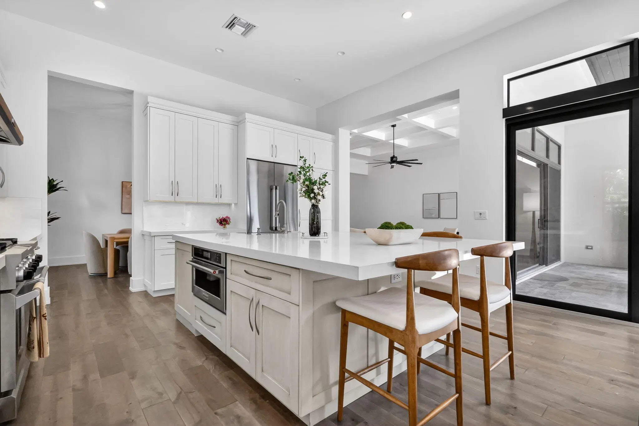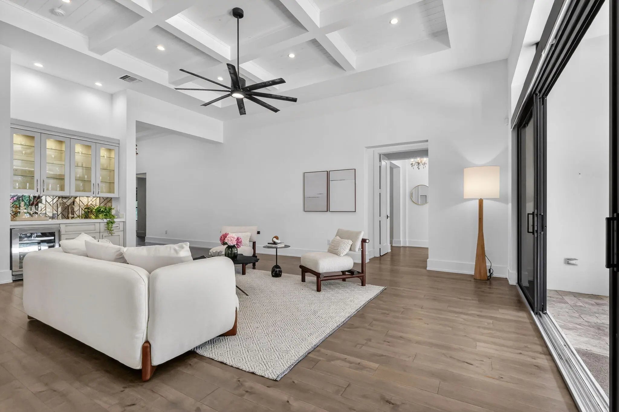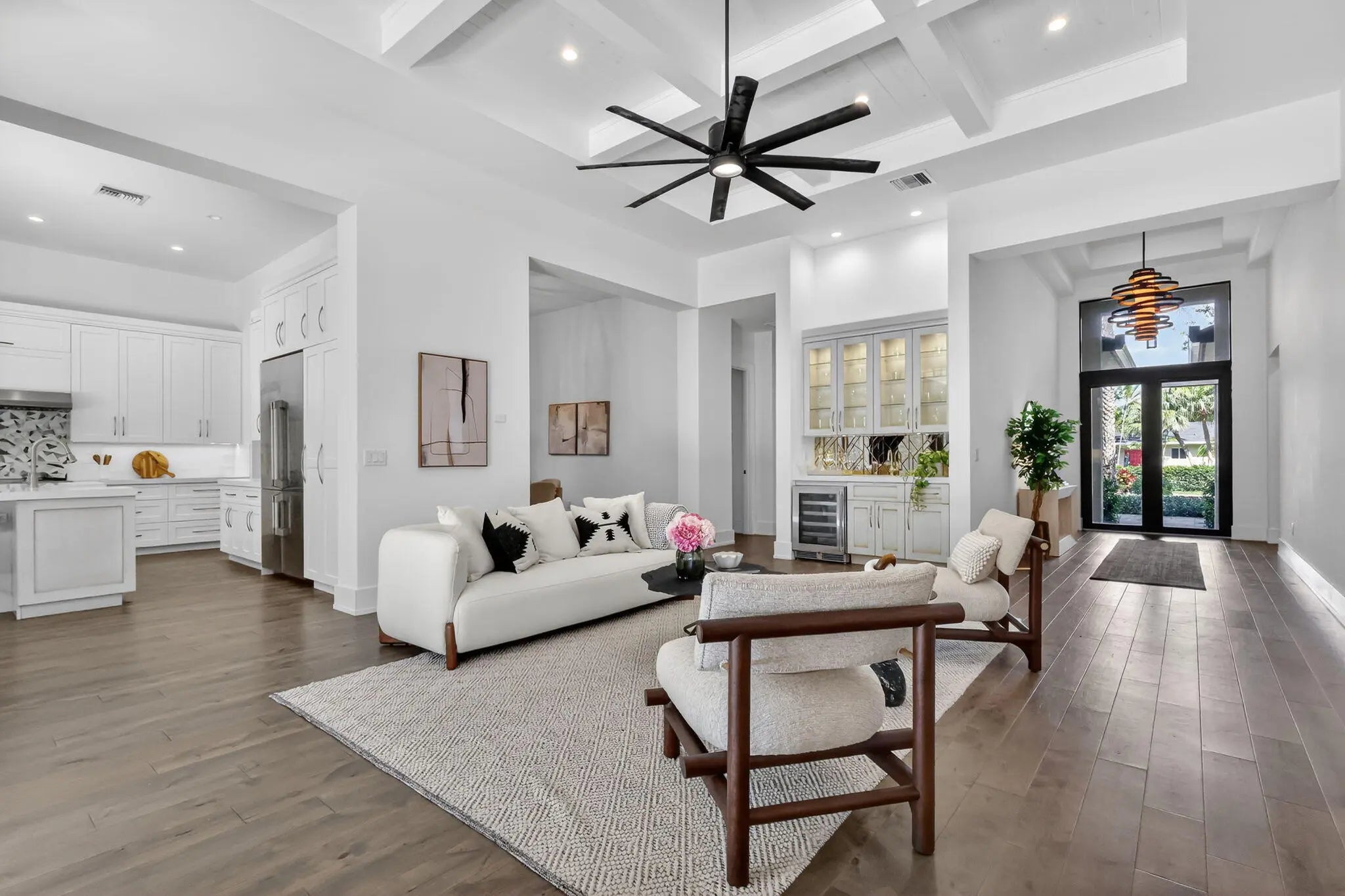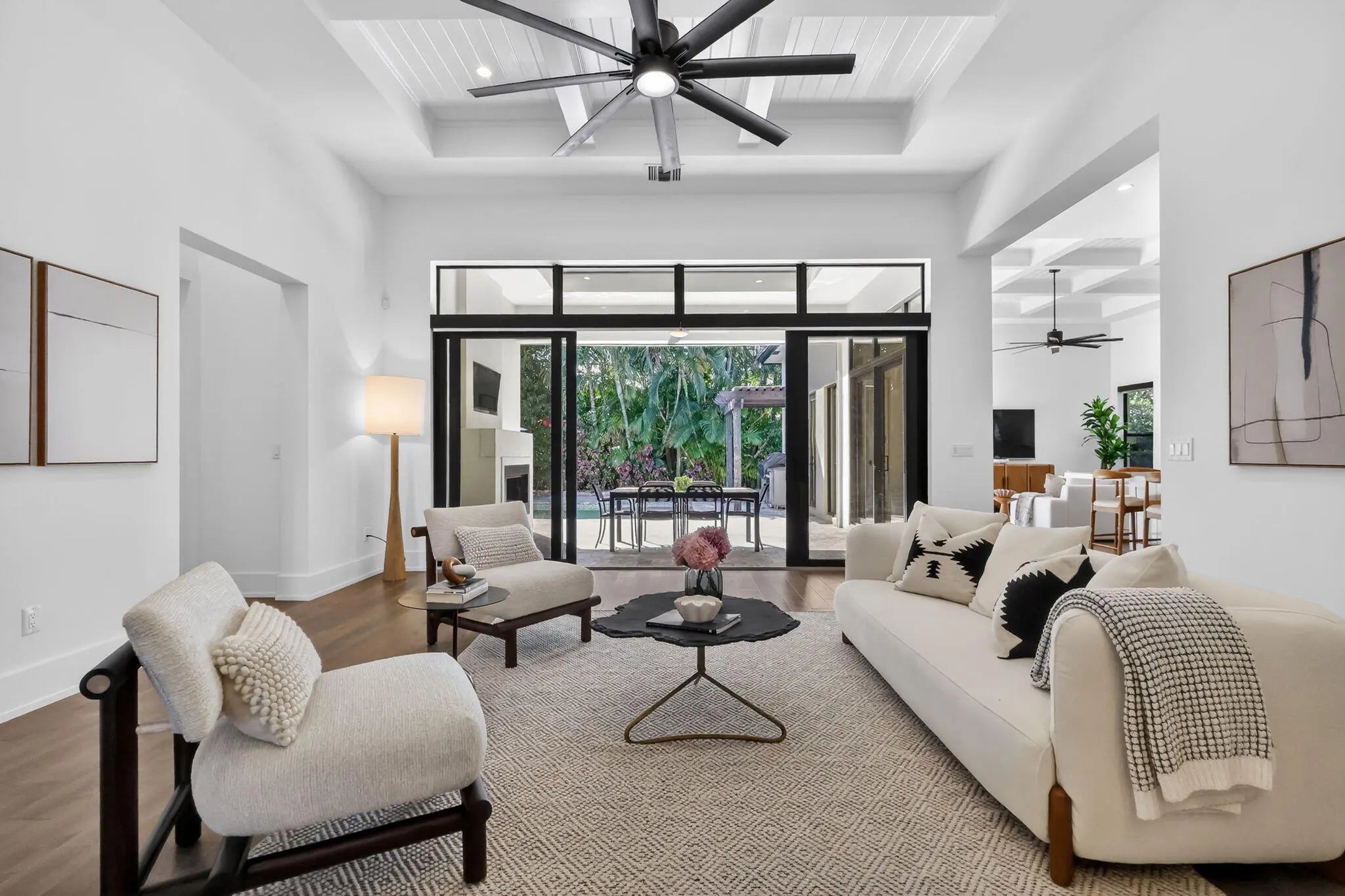 Luxurious 5-Bedroom Pool Home with Resort-Style Outdoor Living Step into refined Florida living in this stunning 5-bedroom, 4.5-bath estate offering 3,632 sq. ft. of beautifully designed space. From the moment you arrive, this home impresses with its grand entry doors, brass hardware, and a dramatic 14' foyer illuminated by statement lighting. The spacious primary suite is a true retreat--offering 270 sq. ft. of serenity, two generous walk-in closets, and a spa-inspired bath, overlooking the salt pool and spa. Each guest bedroom is thoughtfully sized, providing comfort, privacy, and flexibility for family, hosting, or a home office. Designed for effortless entertaining, the home features an expansive living room with volume ceilings, custom wet bar, and more The chef's kitchen boasts high-end appliances, a gas range, custom cabinetry, and a central island ideal for entertaining. Step outside to your private paradise, featuring a loggia with fireplace and tv, built-in barbecue, outdoor kitchen, shower, and custom lighting. The heated saltwater pool and spa offer year-round enjoyment, surrounded by lush landscaping and a fenced yard for privacy. So much toobserve, you must experience this home in person. Additional features include hurricane-impact windows, standing seam metal roof, a central vacuum, whole house generator and a decorative paver driveway leading to a spacious 2.5-car attached garage with golf cart parking. Located in a prime neighborhood, this home blends elegance, comfort, and modern convenience.