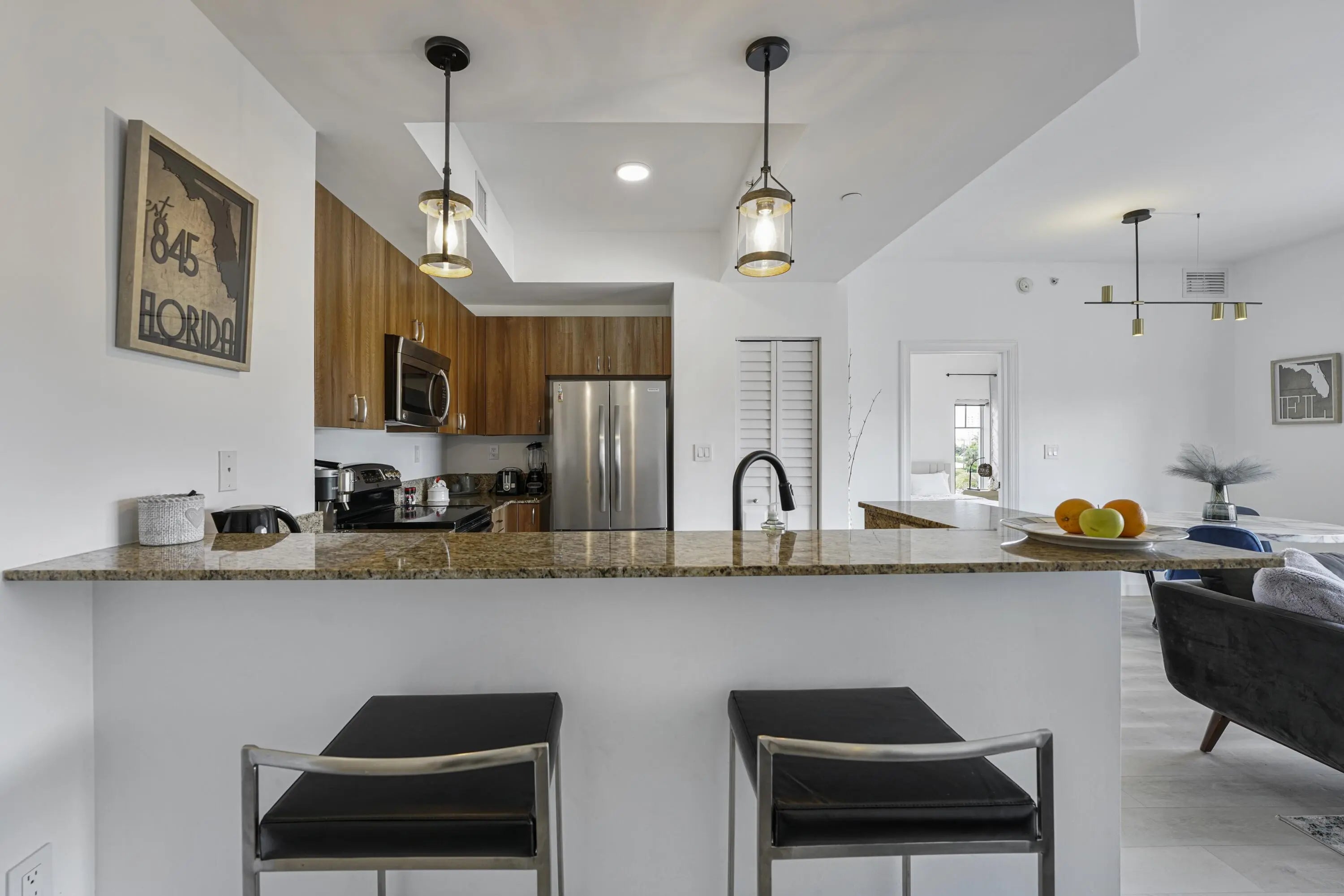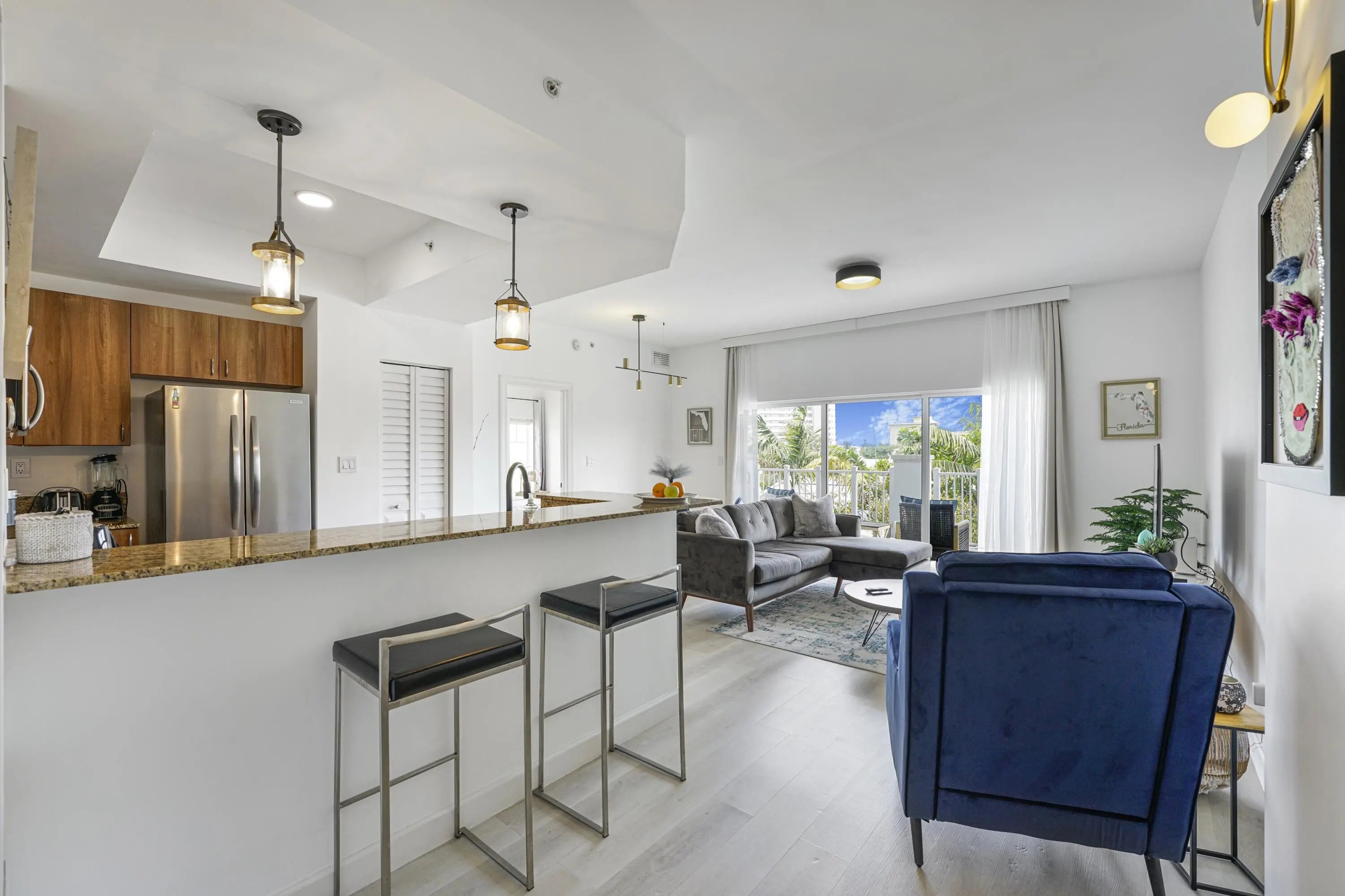 THIS IS SEASONAL RENTAL! Turnkey just bring your toothbrush! Beautiful building in the charming seaside city of Deerfield Beach! Just two blocks from the ocean and restaurants, this fully renovated unit features 2 bedrooms and 2 bathrooms, stainless steel appliances, in-unit washer and dryer and clean and elegant finishes throughout. Enjoy the convenience of two assigned parking spaces in a secure, gated garage. The complex is fully fenced and offers a pool area, perfect for relaxing and enjoying the Florida lifestyle. This is month to month rental unit! Rent minimum for a one month $7,500 two months or more $6,000