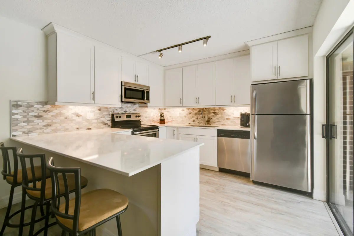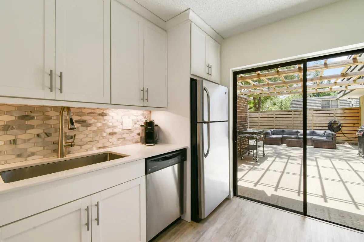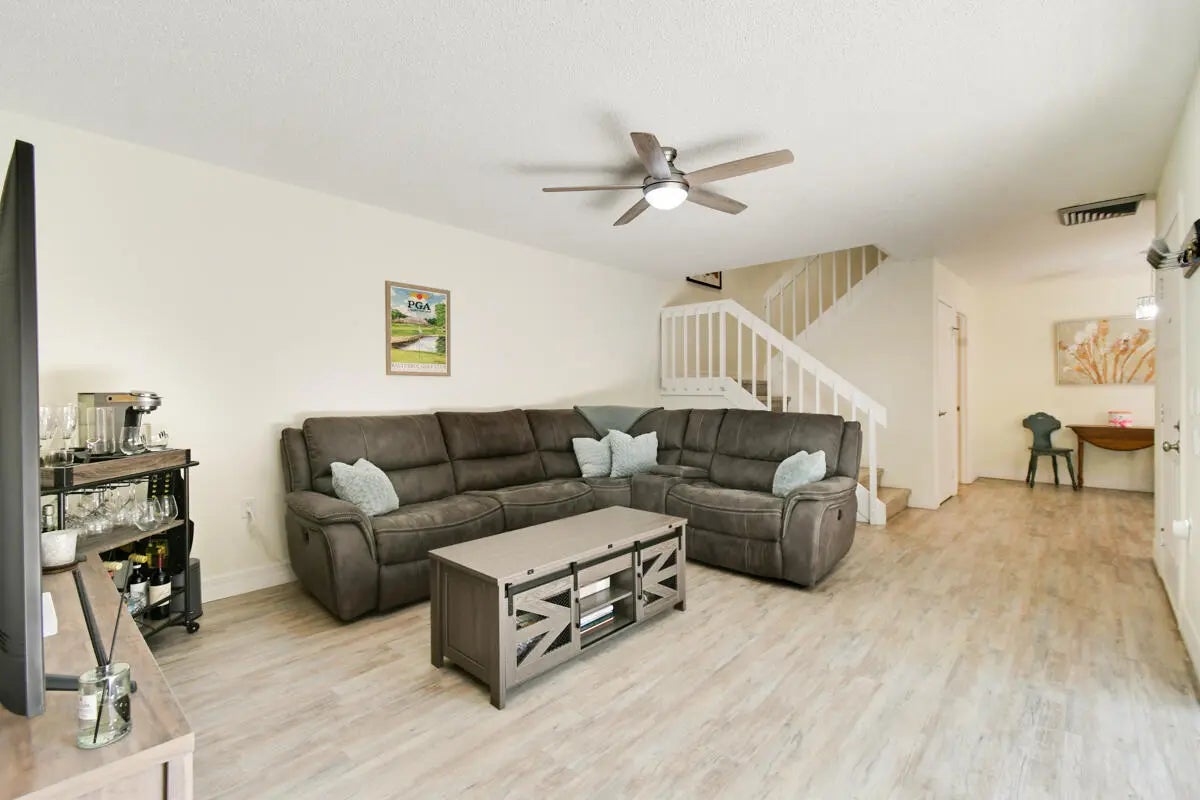 SELLER WILL PAY ROOF ASSESSMENT AT CLOSING!!! Welcome to this beautifully updated 2-bedroom, 2.5-bath townhouse nestled in the heart of the prestigious PGA National - home to the renowned PGA Tour Cognizant Classic. Boasting elegant design and an exceptional layout, this residence offers the perfect balance of luxury, comfort, and privacy. Step inside to discover brand-new flooring throughout and a newly renovated kitchen featuring modern cabinetry, sleek countertops, and updated appliances. The open-concept floor plan also includes a spacious den/office, perfect for working from home or converting into a guest retreat. Enjoy seamless indoor-outdoor living with an expansive private patio, perfect for relaxing after a long day at work, hosting dinner parties, or soaking up Florida's year-round sunshine. A new roof and new fencing offer added peace of mind and a polished exterior aesthetic. Retreat to the generous bedrooms, each with expansive closet storage, while the master bedroom features its own en-suite bath for added convenience. An outdoor storage shed provides additional space for seasonal items or sporting equipment, and two assigned spaces ensure easy parking. Located within a secure, gated community with amazing amenities, you'll enjoy easy access to championship golf courses, walking trails, resort-style pools, tennis facilities and more! all inside the world-renowned PGA National enclave.
