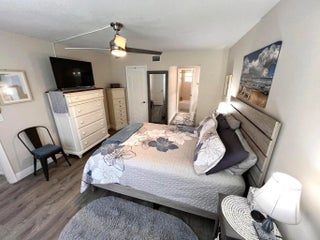 Stunning Move-In Ready 2BR/2BA Condo! Furnished & Beautifully renovated second-floor unit with smart split floor plan. Features ceramic tile and laminate wood flooring, crown molding, and ceiling fans throughout. Updated kitchen with modern appliances opens to spacious living/dining area. Master suite includes renovated en-suite bath and walk-in closet. Guest bedroom offers privacy with full bathroom and ample storage. Enjoy your enclosed patio and dedicated carport, Steps to community laundry. Walk to dining and shopping. Ready for immediate occupancy!