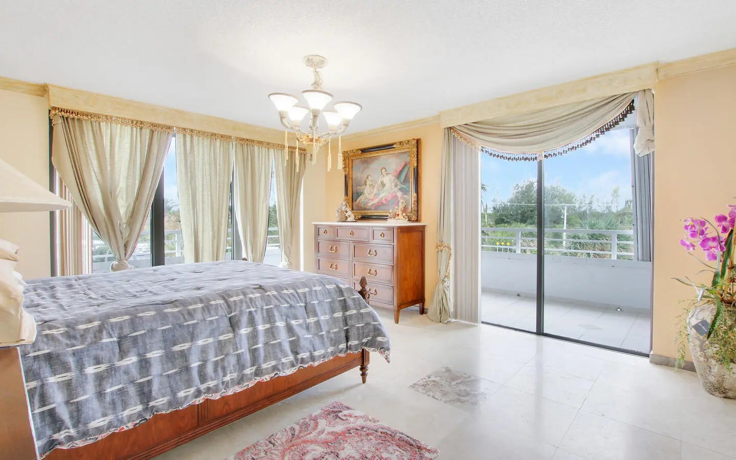 Discover this Beautifully furnished 3 Bedroom, 2 Bathroom, Large Beachfront Condo Home! It comes with a huge wraparound Balcony with an Ocean view PLUS a lovely warm southerly exposure. Exquisite Craftsmanship on the inside, Tastefully appointed throughout + imported Italian Marble flooring. The Miramar Royale complex offers gated access, a social gathering room with full kitchen, lounge/bar area, fitness center, billiards room, poker room, BBQ grilling area, tennis court, swimming pool + hot tub & a deeded boardwalk beach access. Cable TV, Water & Sewer are all included! Enjoy the Beach life!