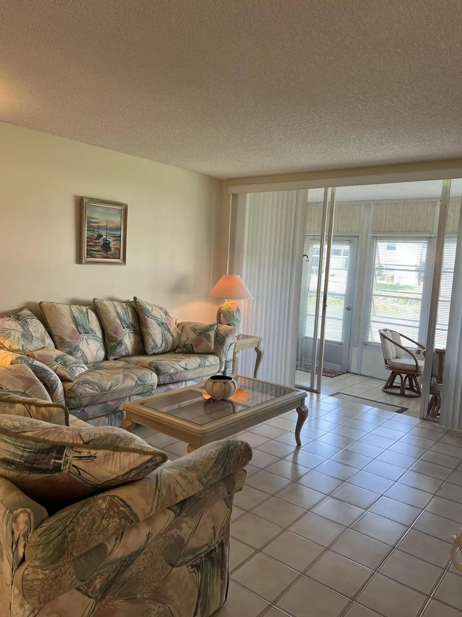 Welcome to this charming 2-bedroom, 2-bathroom condo located on the desirable 1st floor, offering the perfect balance of comfort and convenience. Enjoy peaceful water views of the lake and fountain from the living room, while the front door opens up to a serene garden view. With tile flooring throughout, this home is both stylish and easy to maintain. The second bathroom has been beautifully updated, adding a fresh and modern touch. The vibrant community provides a wealth of amenities to enhance your lifestyle, including a sparkling pool, clubhouse, shuffleboard, and a fun-filled game room. Whether you're relaxing by the water or socializing with neighbors, this condo offers the ideal place to call home. One person must be 55 plus