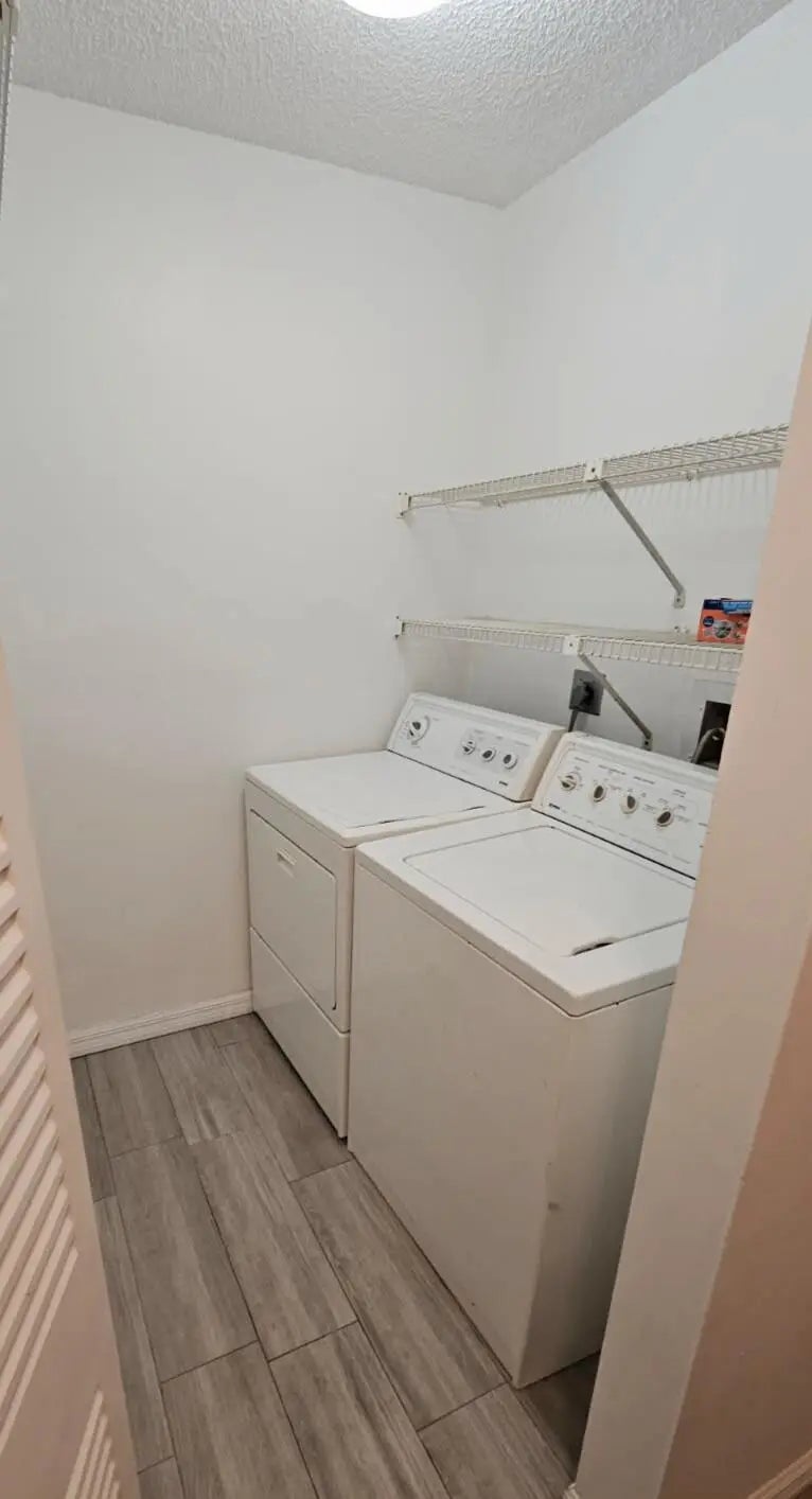 Move in ready, clean and spacious 2/2 villa located in well maintained subdivision of Springdale Homes. Privacy fenced patio with accordion shutters. Vaulted ceilings in living/dining area and master bedroom, wood tile flooring throughout, split bedroom floor plan, 2 closets in master bedroom, dedicated laundry room with washer and dryer, large stand-up attic space for storage, 2 assigned parking spots. New A/C in 2024. Close proximity to all the amenities including the clubhouse, pool and tennis courts featuring a newly added fitness center and pickleball courts. Security TV cameras throughout the community along with Security Patrol at night and an on-site Property Manager. As per Association Homeowner's Insurance the roof must be replaced by October 2026.