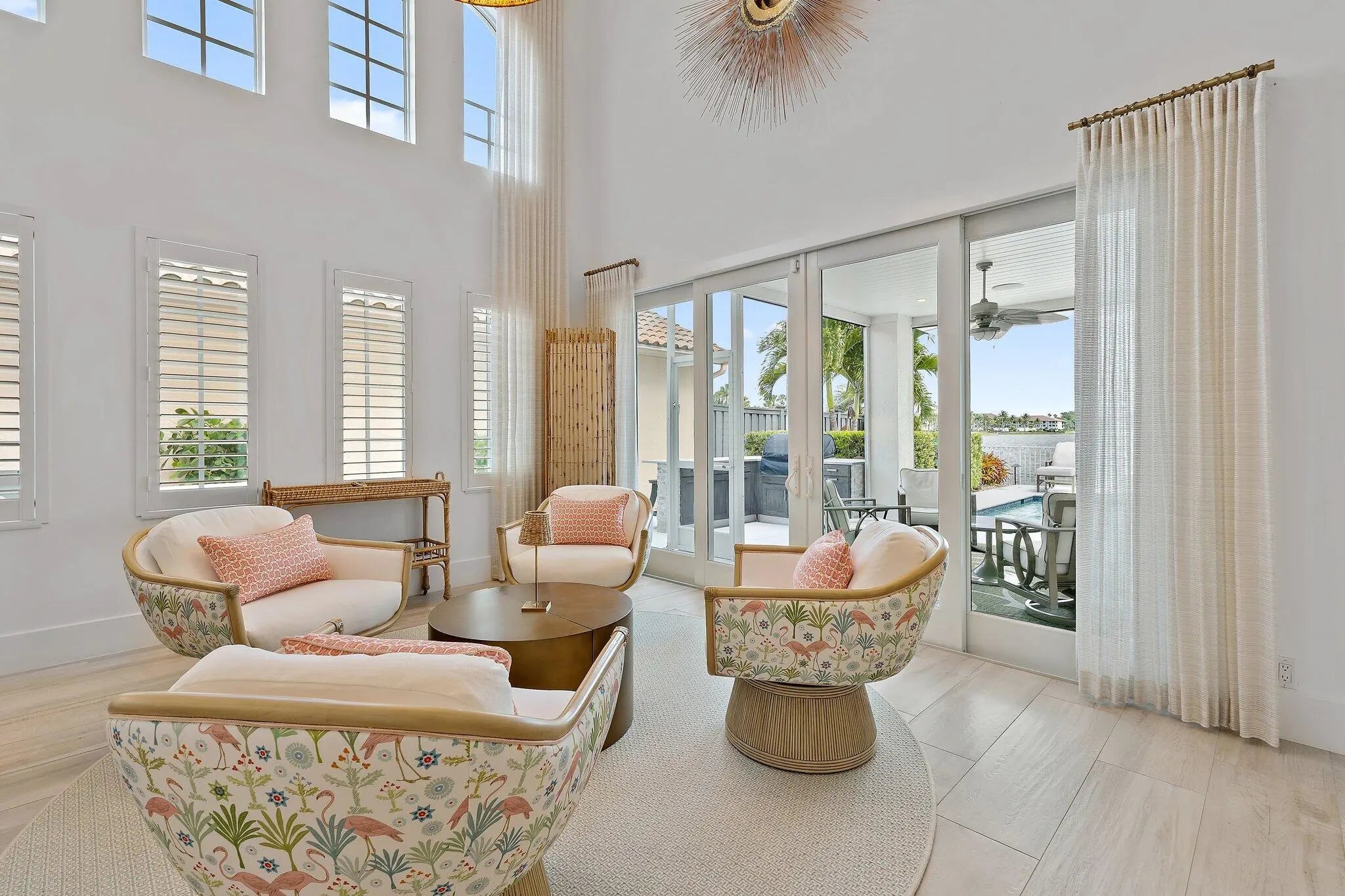 Situated on one of the best lots in PGA National, this home offers sweeping views of the wide lake and Hole 18 of ''The Champ'', Home of The Cognizant Classic. Renovated and redesigned in 2019, this home offers seamless indoor-to-outdoor living. The charming curb appeal is further enhanced by lush landscaping and a newly painted exterior. Upon entering the home, the attention to detail is apparent. Every room is tastefully decorated and upgraded to a degree rarely seen in PGA. PGA National, home of the PGA Tour's Cognizant Classic, offers five Championship Golf Courses, a state-of-the-art fitness center, spa, and luxurious hotel with a resort style pool. Located in the heart of Palm Beach Gardens, minutes from world class shopping, fine dining, and pristine beaches. Design elements and upgrades from the 2019 (and newer) renovation are listed below: " New drywall and trim throughout, Garage Tech garage walls, cabinets, and epoxy floor. " New fences installed around the property. Re-landscaped entire yard in 2019. " Constructed an outside bar/cabinets and built-in grill. Installed a motorized screen in 2019 and added a 2nd one in 2023 on the rear patio. " Rebuilt the pool and installed a new pool heater. " Rebuilt and expanded the outside pool deck and surrounding areas with white marble pavers in 2023. " Installed whole house Kohler generator in 2022. " Kitchen was completely remodeled in 2019 with new cabinetry, countertops and appliances. Thermador refrigerator, oven and 5 burner range, Sharp drawer microwave, dual Uline wine refrigerators and two Thermador dishwashers. " Interior painted in 2024. Sonos system was rebuilt and installed in 2024. " California Cabinets installed in Kitchen, Family Room and 2nd floor office in 2024.