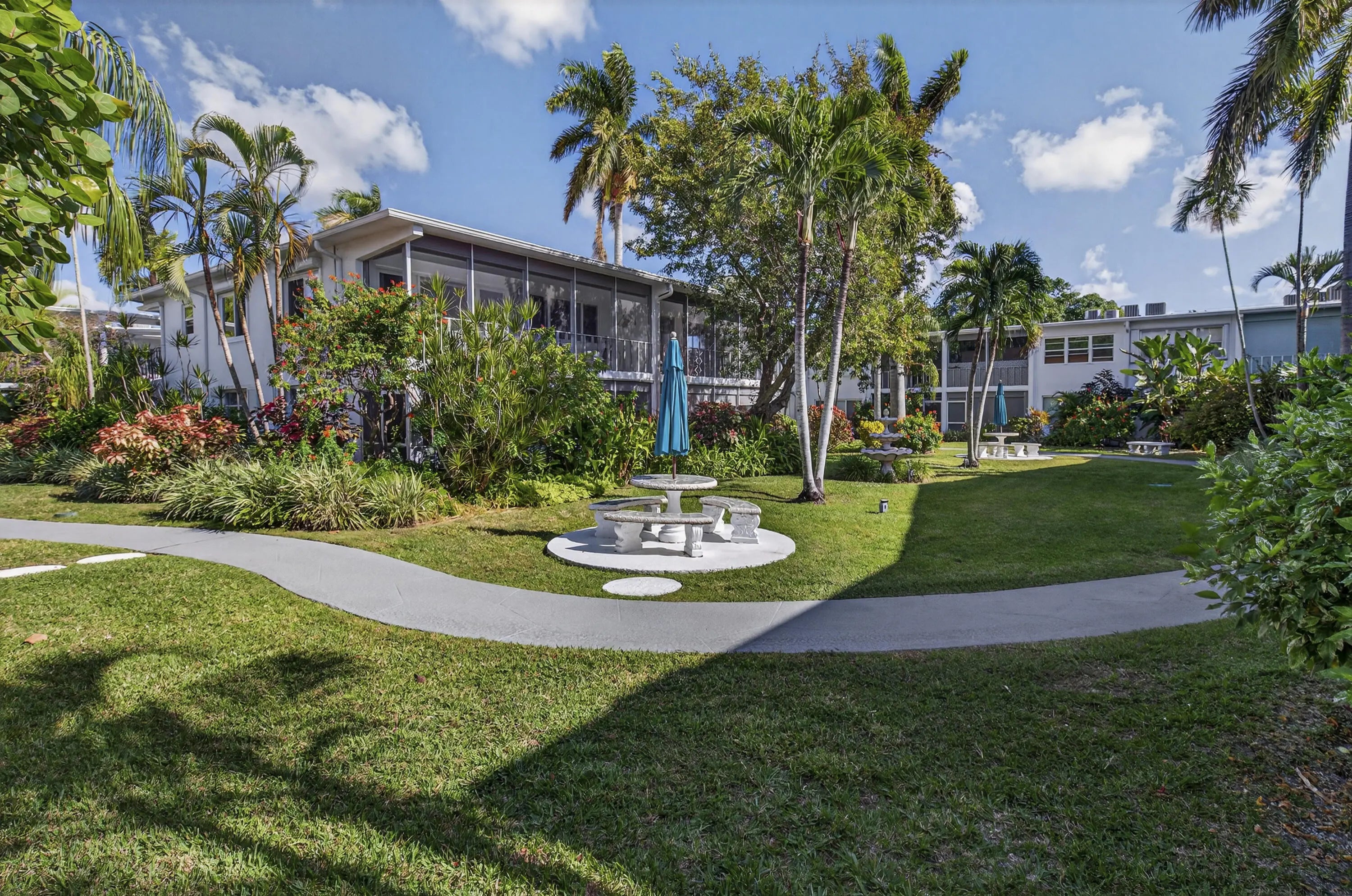 Welcome to Venetian Gardens in Lighthouse Point. This bright and inviting 1 bed/1 bath unit features an open living area with tile flooring throughout, an updated kitchen, excellent storage, and access to a screened patio surrounded by lush greenery. Enjoy peace of mind with partial hurricane-impact windows and doors. The bedroom offers a walk-in closet and relaxing garden views. A/C is only 3 years old. Recent updates include a new roof, completed 40-year inspection, and fully funded reserves. The unit is conveniently located close to the community pool. Community amenities also include a pickleball court, clubhouse, outdoor kitchen/BBQ area, picnic space, car wash, and on-site laundry. Association fees include water and cable. Can be rented once during the lifetime of ownership. Cash only. All ages welcome. This is a Co-Op community with NO land lease.