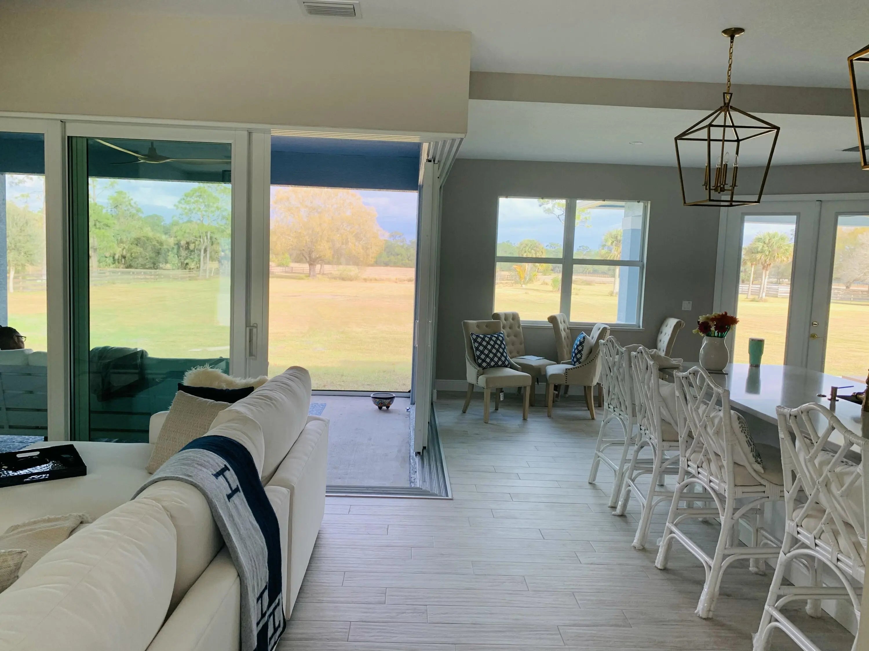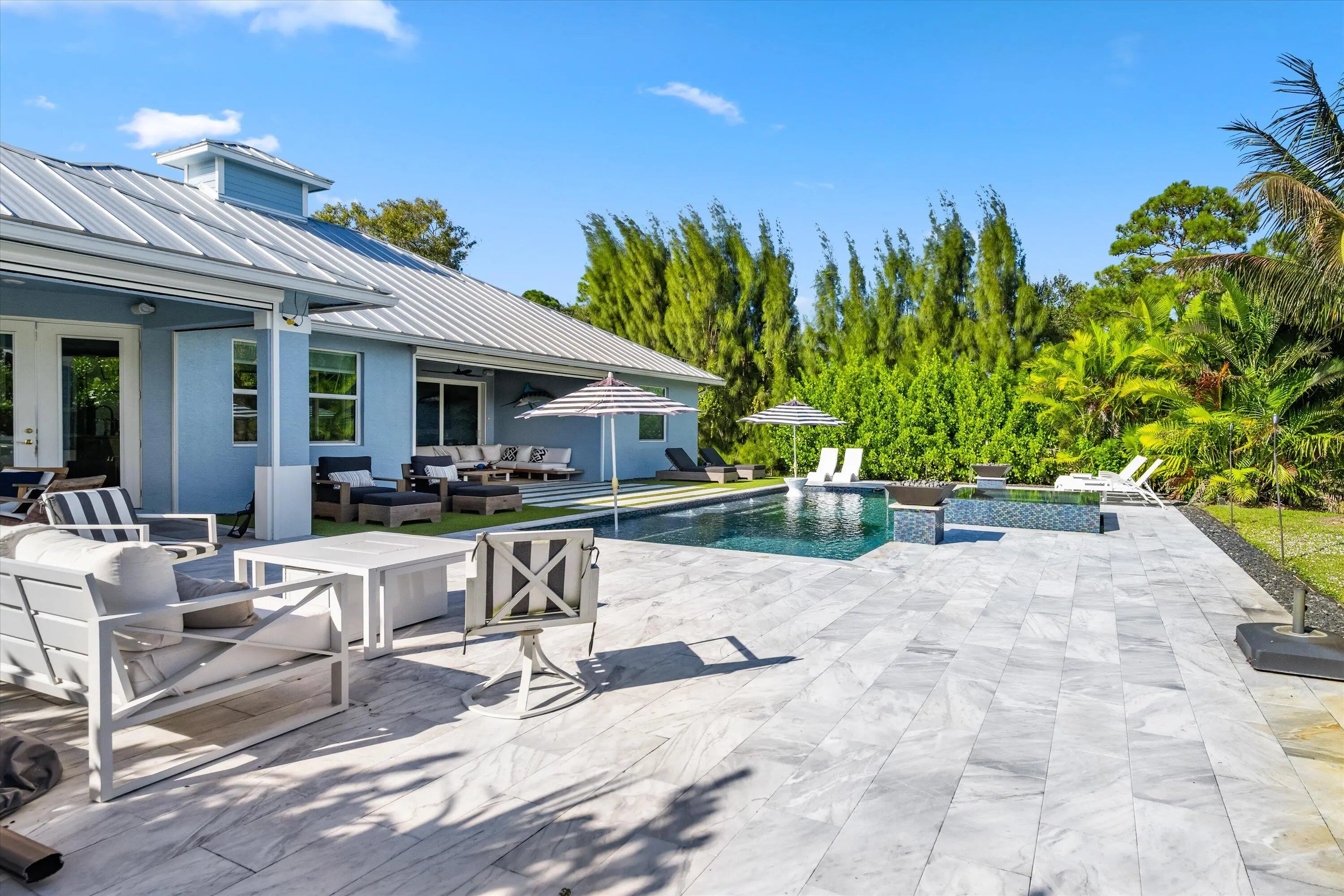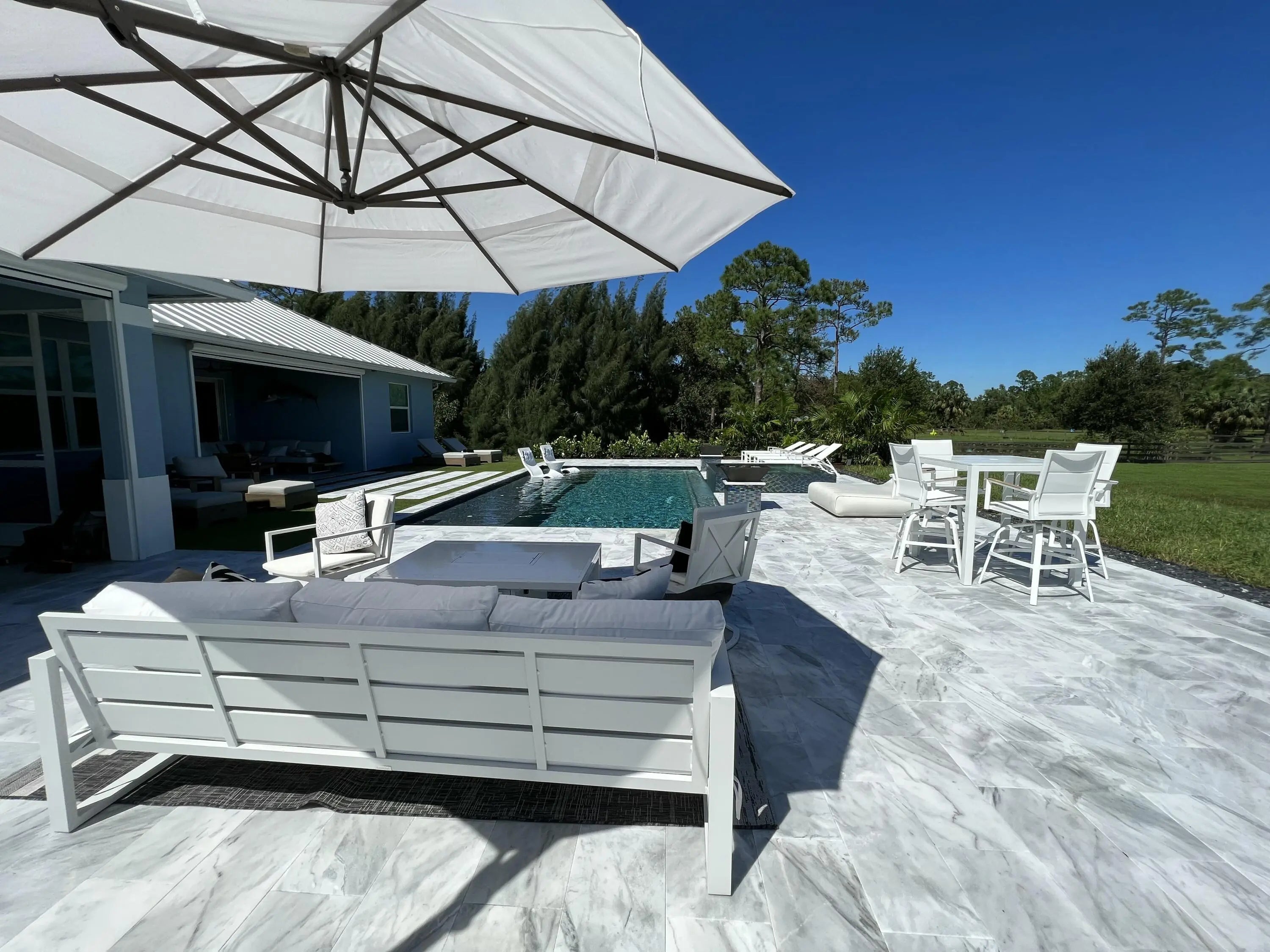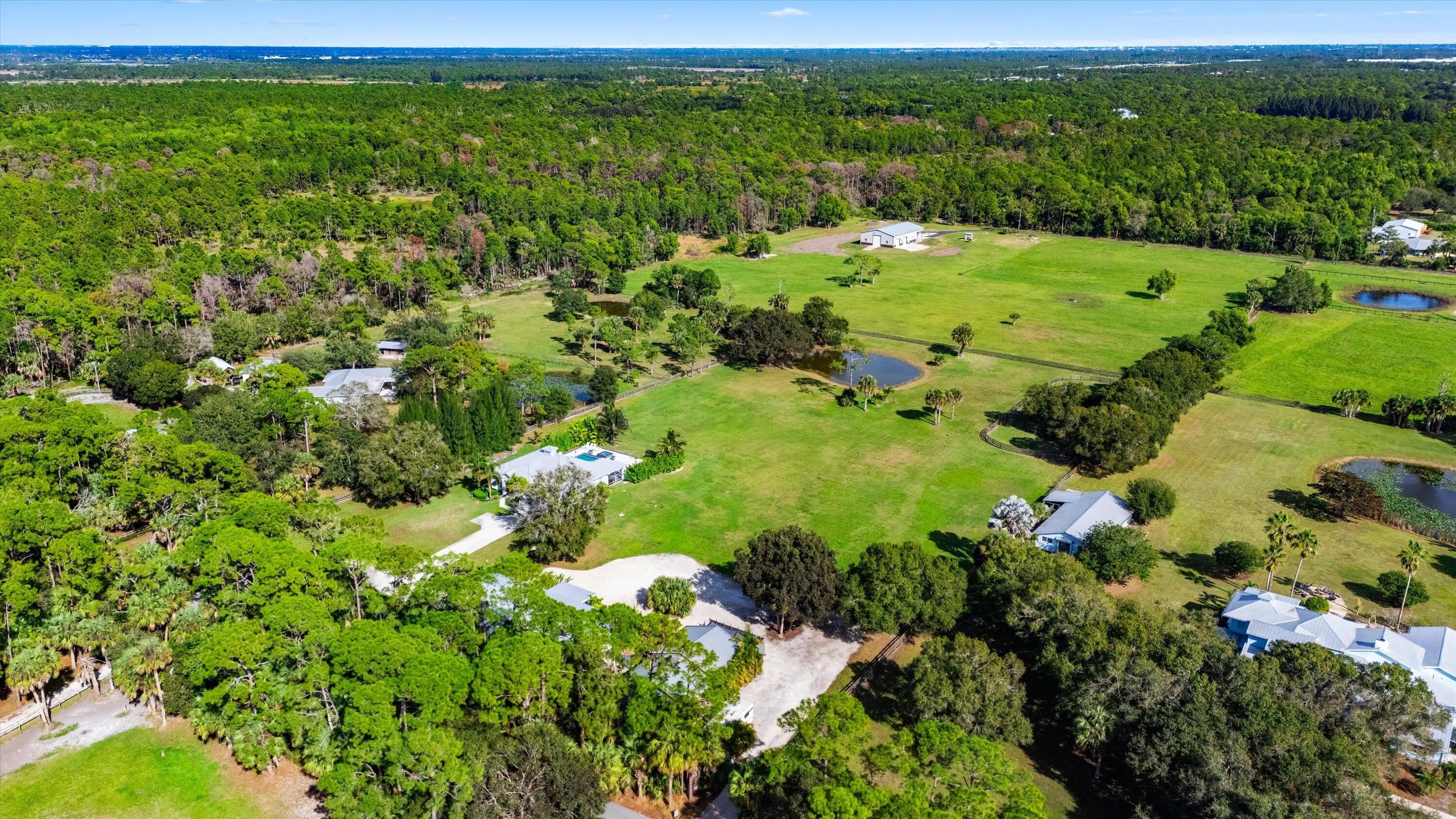 Welcome to highly desirable Palm City Farms! This stunning 2021 custom-built home sits on 5 picturesque acres and offers the perfect blend of modern comfort and quiet country living. Featuring 3 bedrooms, 2 bathrooms, a 2-car garage, and an open-concept kitchen and living area, this property is designed for both relaxation and entertaining. Step outside to your private oasis: a gorgeous pool overlooking sprawling acreage, 3 well-maintained paddocks, and plenty of space to bring your horses—plus community horse boarding available. The fully fenced property offers peace of mind and freedom with **no HOA**, so feel free to bring your RV, boat, and animals on vacation. The primary suite is a retreat of its own with a spacious walk-in closet, large walk-in shower, and a separate soaking tub. The split floor plan provides privacy with two additional bedrooms and a full bathroom. Available **furnished for the 2026 season** with a **30-day minimum rental**, this home is perfect for seasonal living, equestrian getaways, or extended vacations. The owners also operate an on-site dog boarding and training facility, making this an ideal destination for pet owners. Enjoy the best of Palm City, nearby Stuart and Jupiter, and easy access to beautiful beachesall just a short drive away. This is Florida living at its finest!