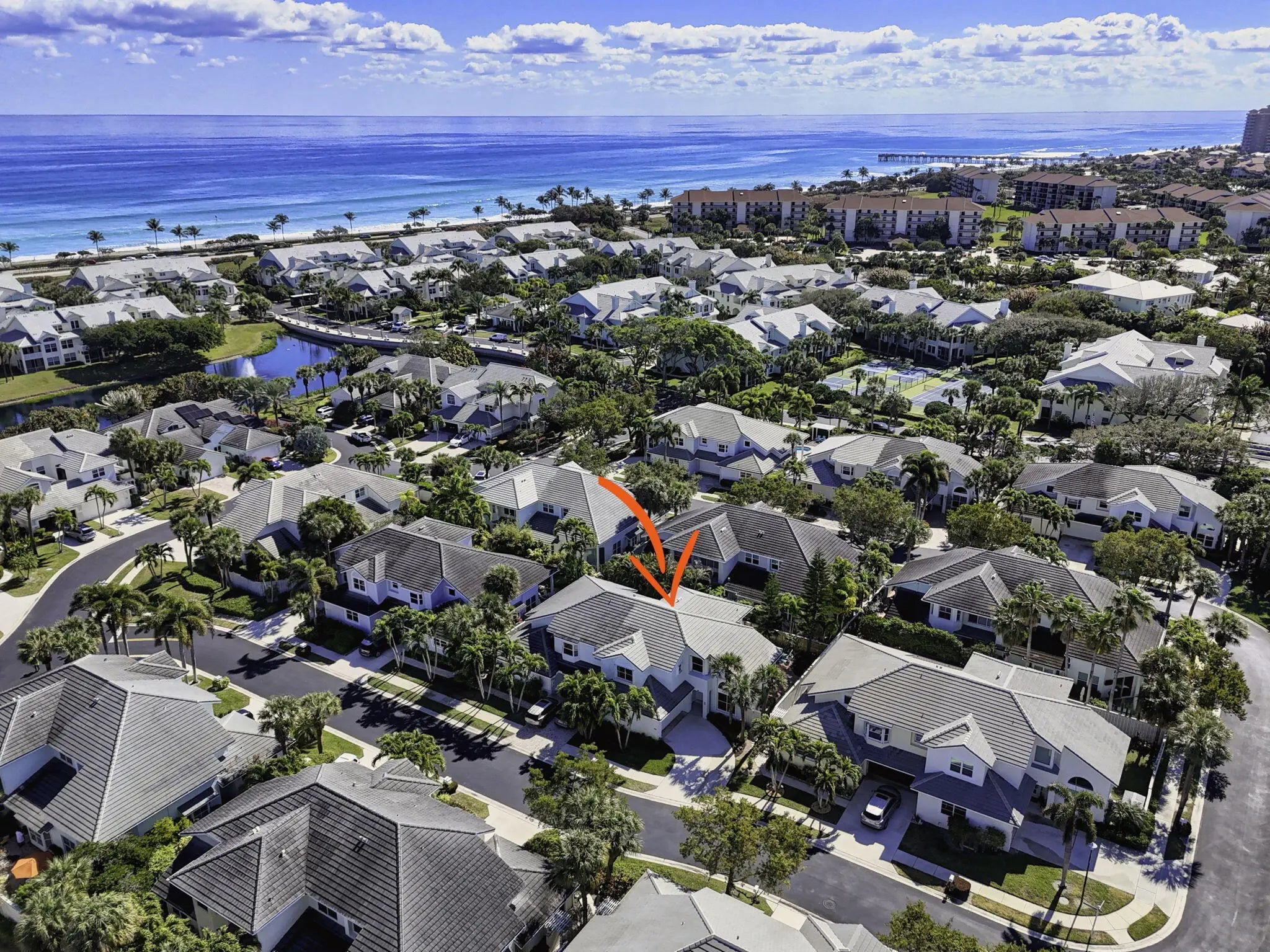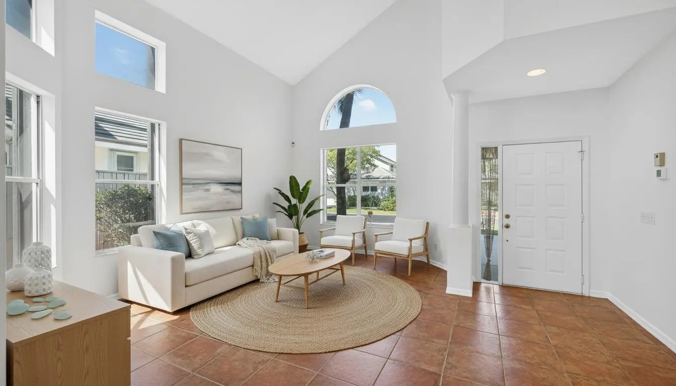 Highly sought-after Sea Colony, this big-dog-friendly residence sits across the street from the famous Jupiter Dog Beach. Offering 3 bedrooms, 3 baths, and a 2-car garage, this home lives like a single-family residence. Soaring ceilings and a newer roof (2022) provide an excellent foundation, while the interior presents a wonderful opportunity for the next owner to customize to their personal style. The first floor features a spacious living room and formal dining area, plus a family room that opens to the kitchen, eat-in kitchen and extra room that would be a super den/study/library. Upstairs, you'll find the primary suite, two guest bedrooms. 24-hour manned, resort-style amenities including pool, fitness center, tennis/pickleball and manned gate.