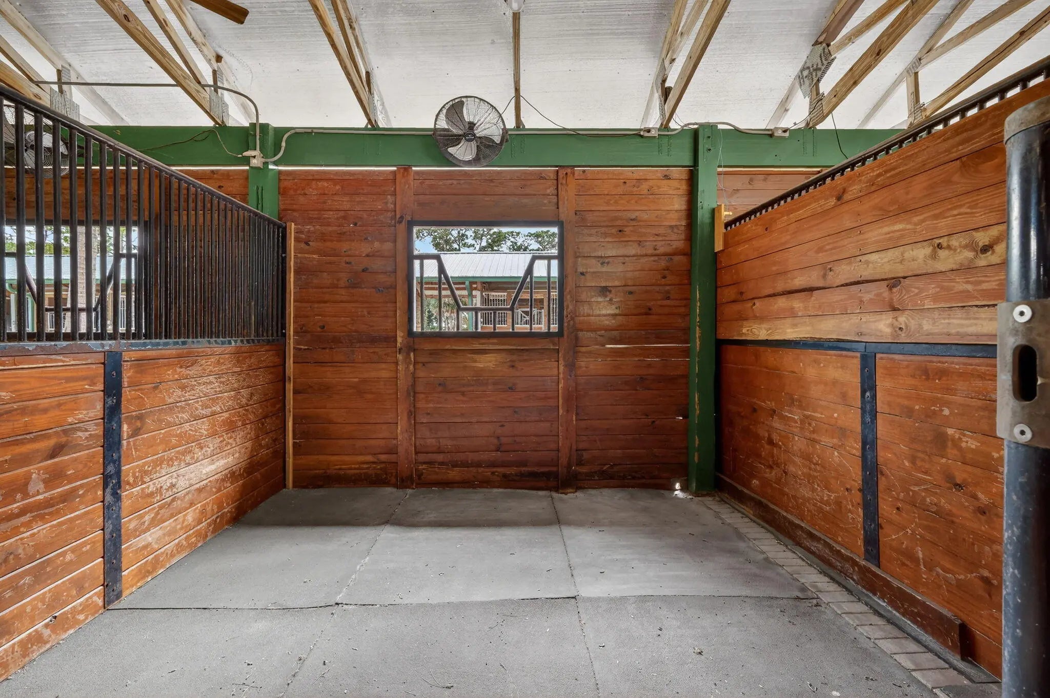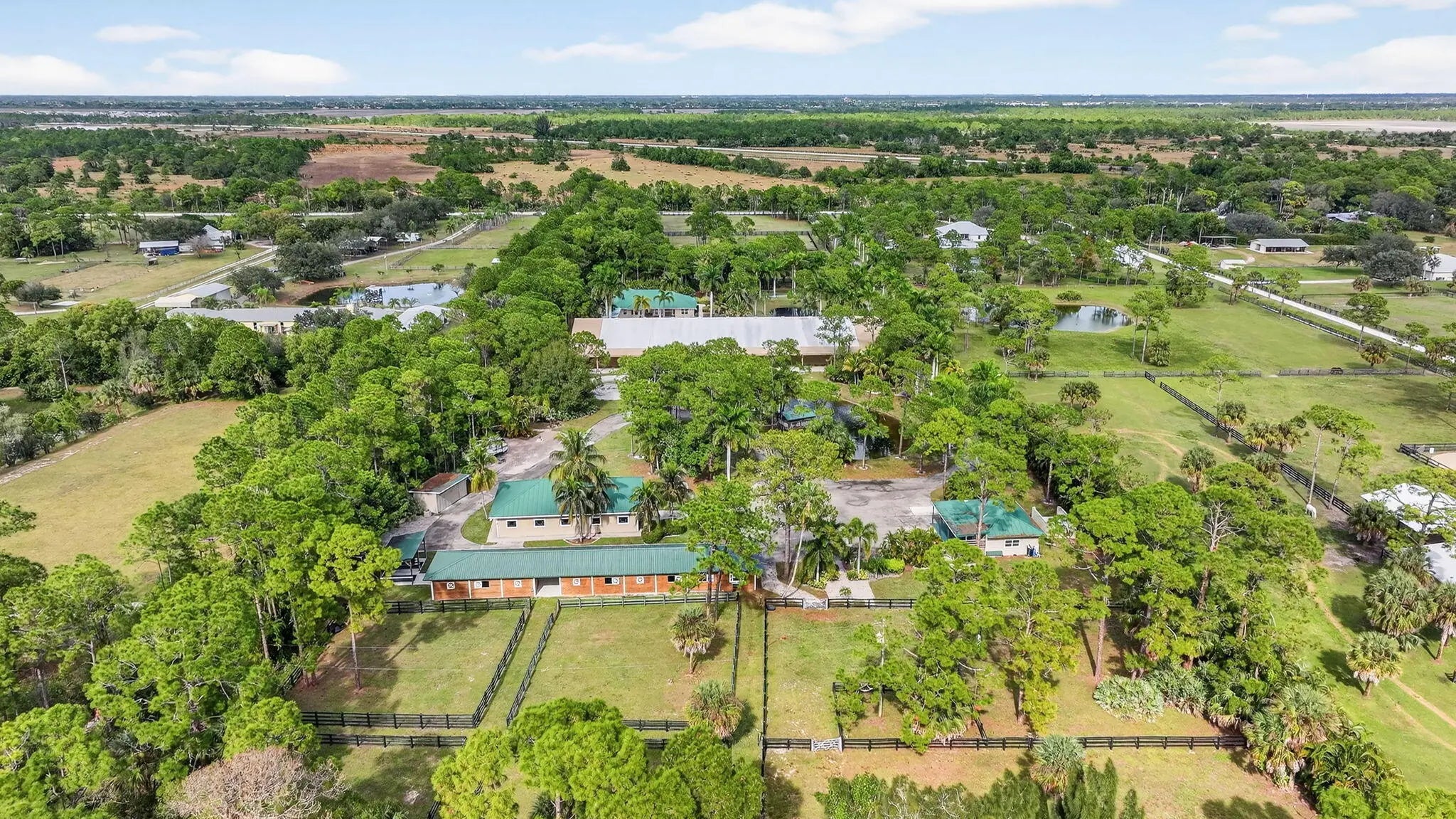 Beautiful Equestrian property with 11.72 gated acres in Palm City. There are 4 large paddocks on the front 5 acres to the main home with 3 bdrms, 2.5 baths & resort style pool with hot tub as well as Brazilian style covered cooking area. Just past the pool you will find your private 100'x220' covered arena & riding track with mirrors & ESI footing. There are 2 barns with 14 stalls, 4 wash racks, 2 tack rooms / office, feed room. Separate hay and shavings building & maintenance building with washer & Dryer & room for equipment.There are an additional 6 fenced paddocks behind the barns. The property has 2 ponds, pump for filling when necessary, irrigation system, camera system, fly system, 2 gazebos and a lunging area. This is a perfect property for full time or seasonal equestrian.
