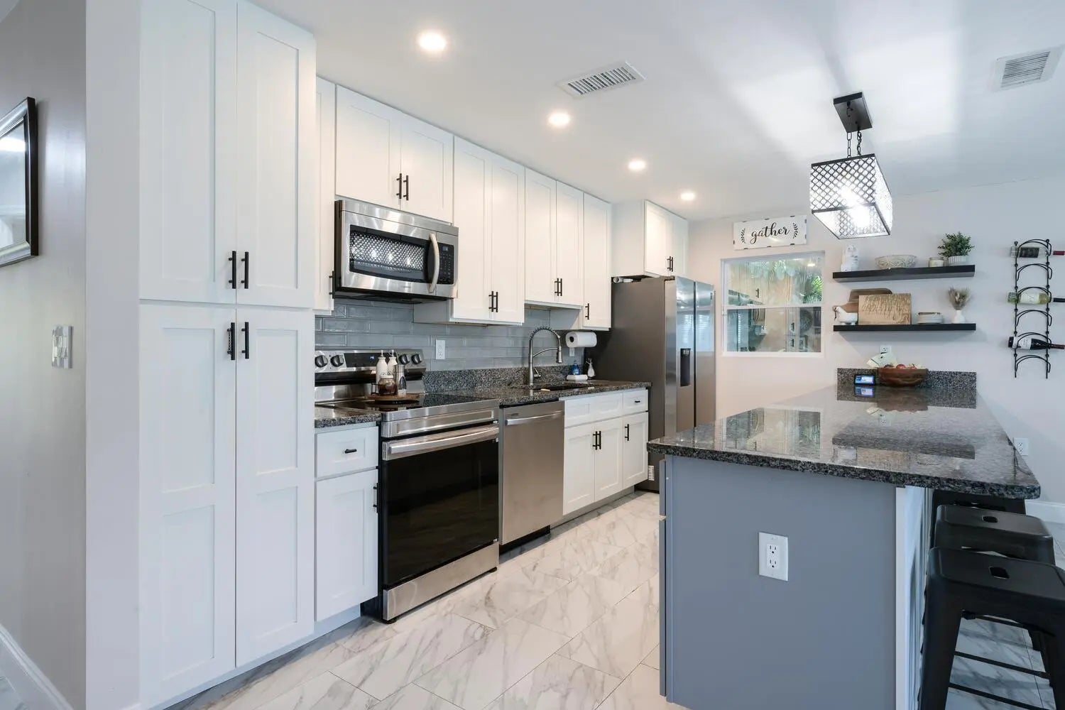 Explore this updated 3-bed, 2-bath ocean-access home with a dock in the boating community of Rustic Hills, Palm City. This turnkey property features an oversized lot with ample parking for multiple vehicles and all your toys. It is a short boat ride to the inlet with low HOA fees and no need for flood insurance. Recent improvements include a newer roof, AC, windows, flooring, bathrooms, a kitchen boasting granite and quartz countertops, newer appliances, an irrigation system, and professional landscaping. The open floor plan is great for entertaining, and both the den and primary bedroom have French doors leading to a 30 ft wide covered patio and a 38 ft dock with a 10K boat lift. Rustic Hills is an ''Old Florida'' style community that is minutes from everything. More...