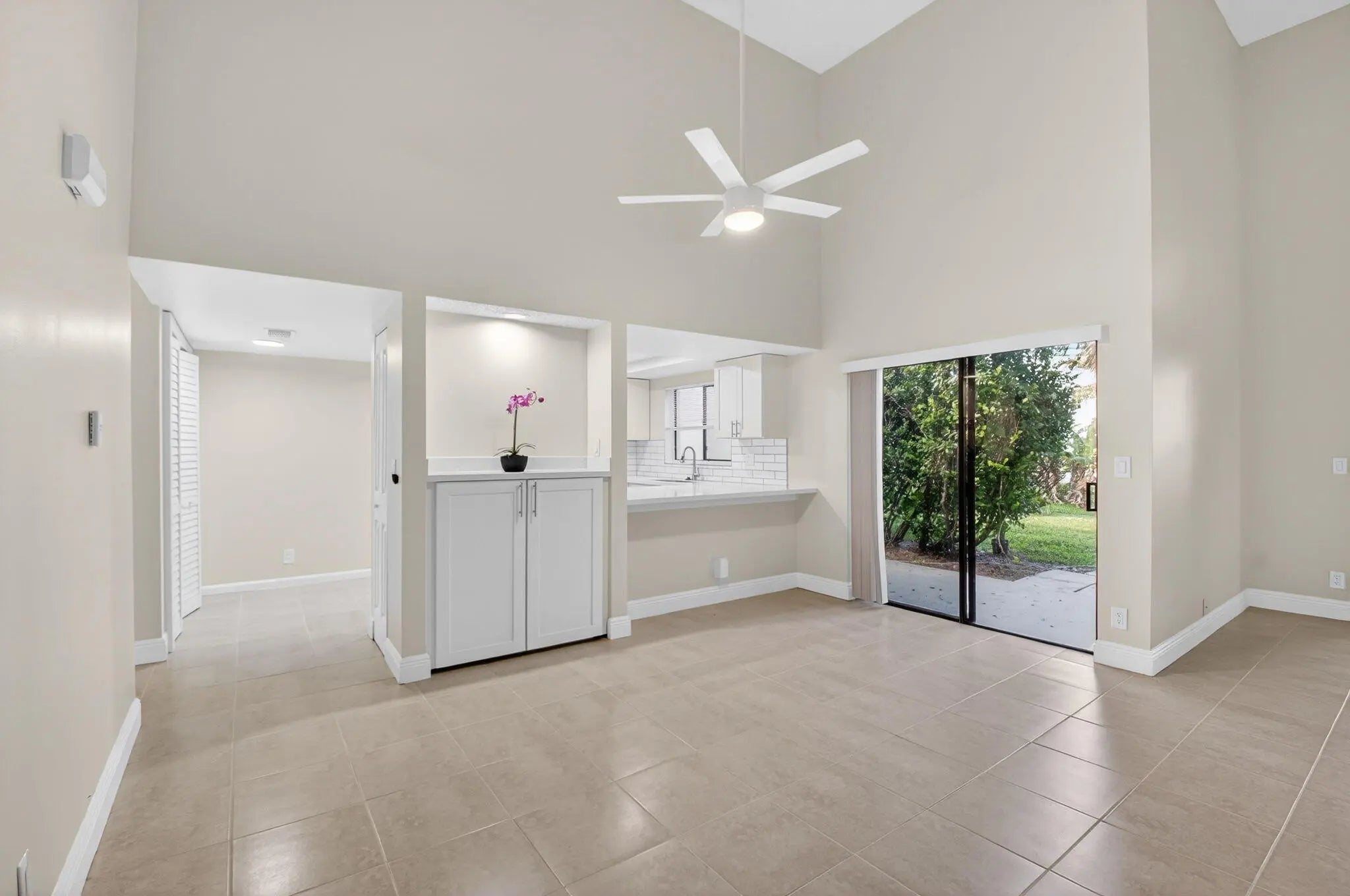 Beautifully updated charming villa situated on an idyllic cul-de-sac with mature lush landscaping. This light bright home offers vaulted ceilings and tile flooring throughout. Fabulous updated kitchen custom offers white wood cabinets, quartz countertops, tile backsplash & newer SS appliances. Master suite boasts updated bath with quartz top white vanity, beautiful tiled shower, generous walk in closet and sliders to sunny patio. Tranquil private backyard (no neighbors behind) offers private greenspace & patio perfect for added outdoor living & entertaining space. Freshly painted interior, updated LED lighting & fans. Cable, insurance, lawn & roof maintenance included. INVESTOR FRIENDLY!. 24 hour gated community in East Boca close to everything! ROOF ASSESSMENT PAID IN FULL! One assigned parking spaces right out front and plenty of guest parking. Windwood offers an abundance of greenspace, 5 acre wildlife preserve, 24 hour guarded entry, two pools, clubhouse, tennis, basketball, racquetball, bike/jogging trail, dog park & picnic area. Just 1.5 miles to the beach. Close to FAU, Downtown Boca, I95, the best shops and restaurants. Great schools.