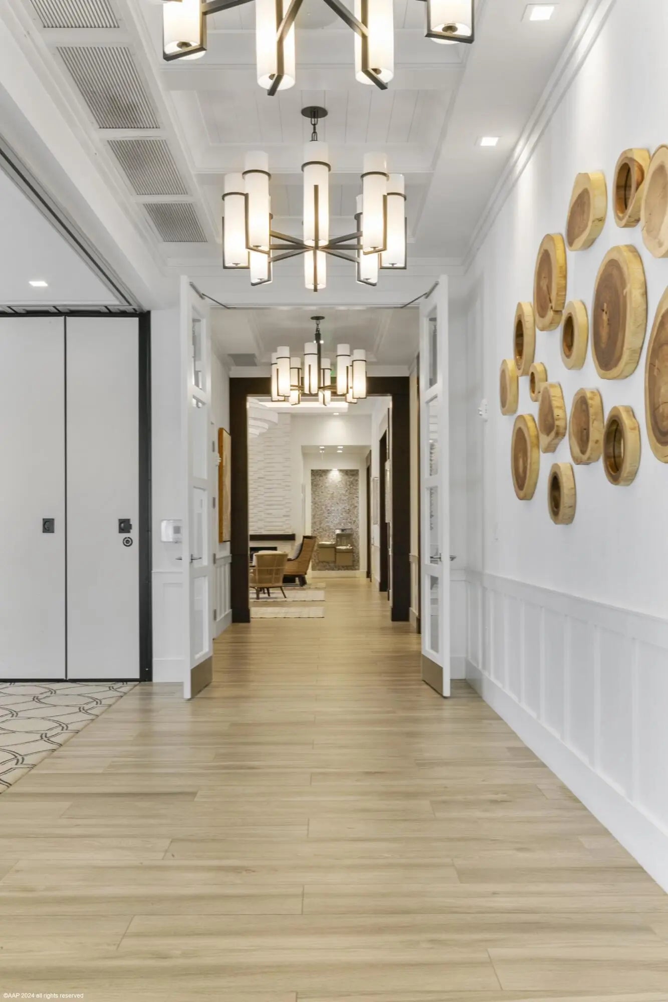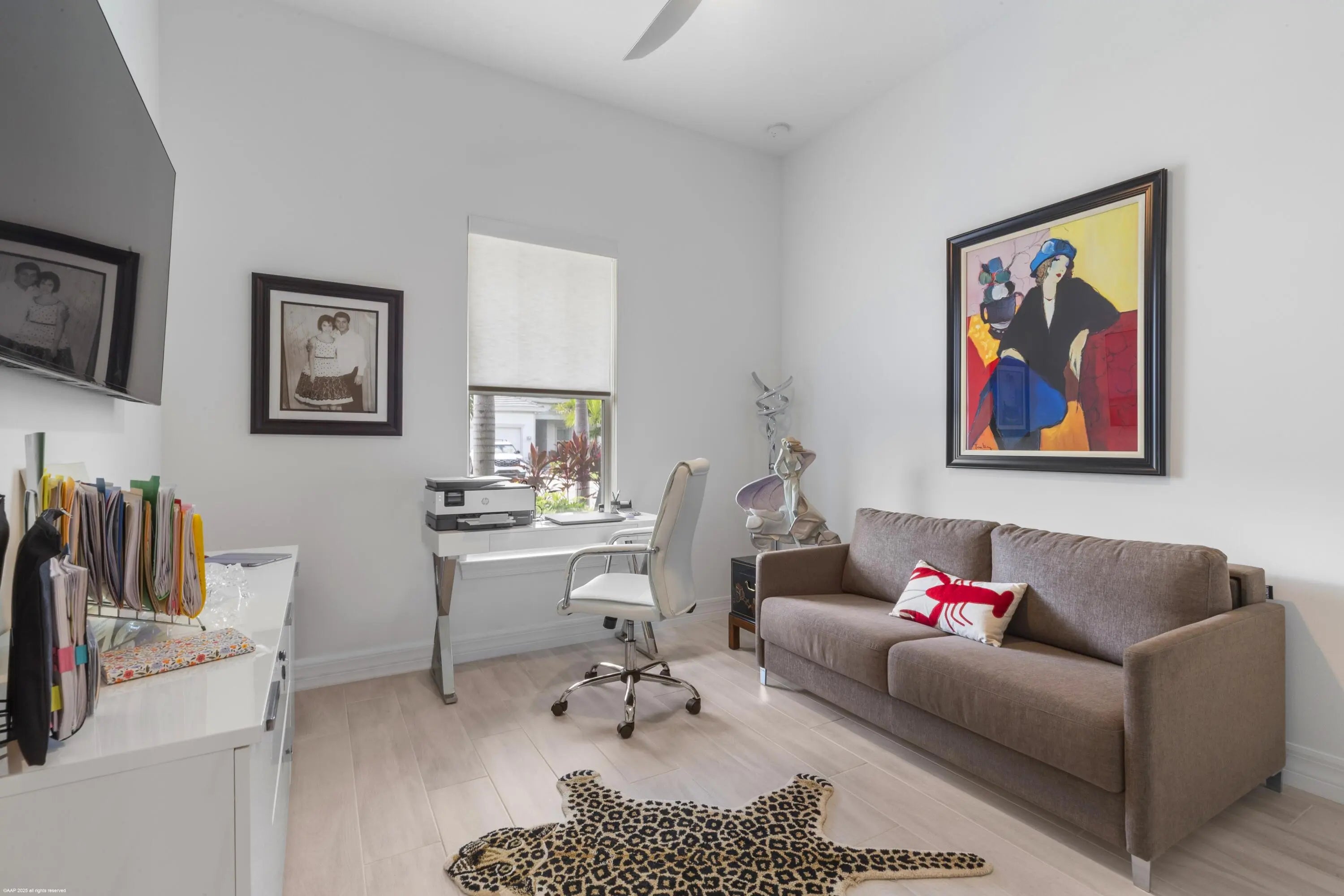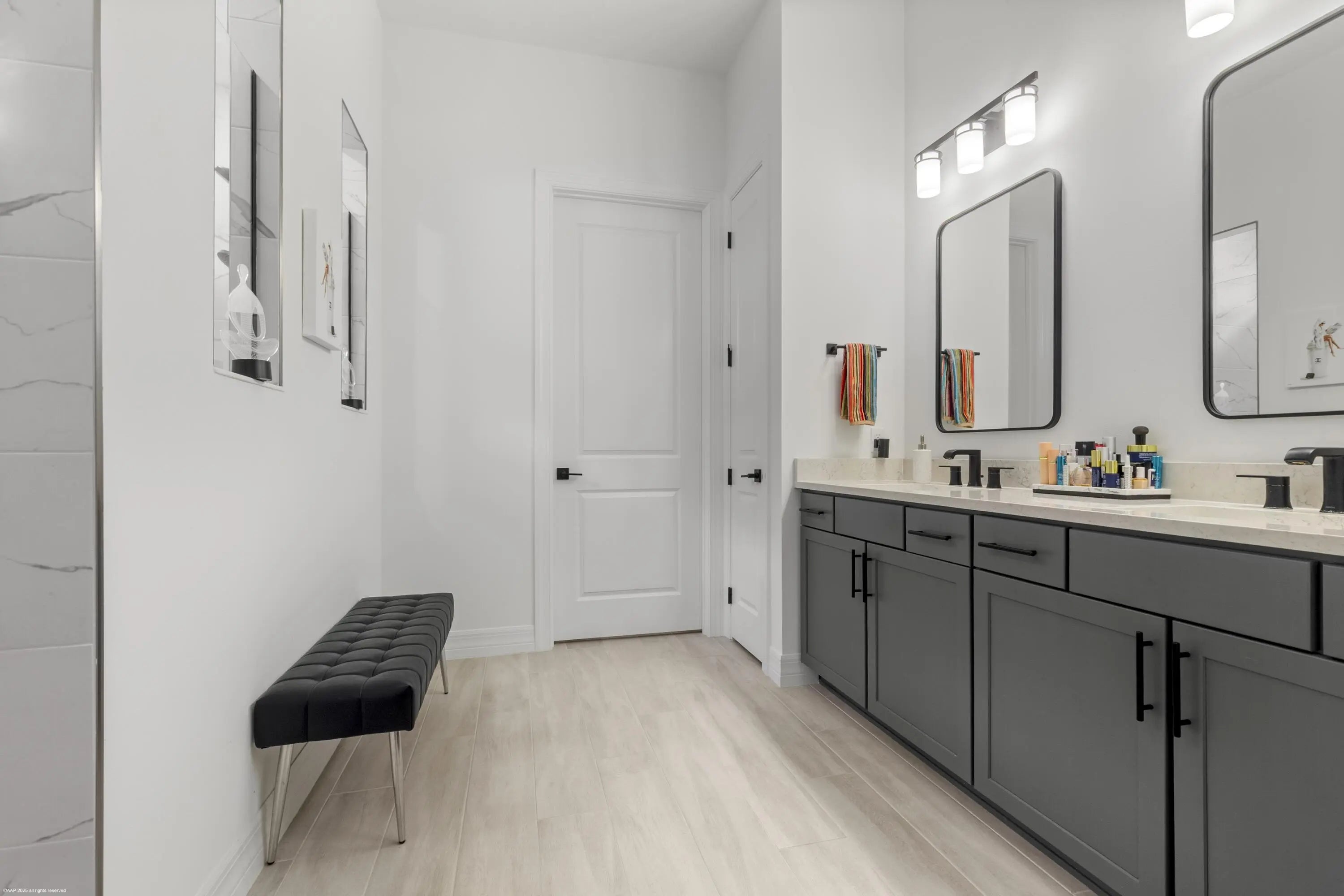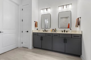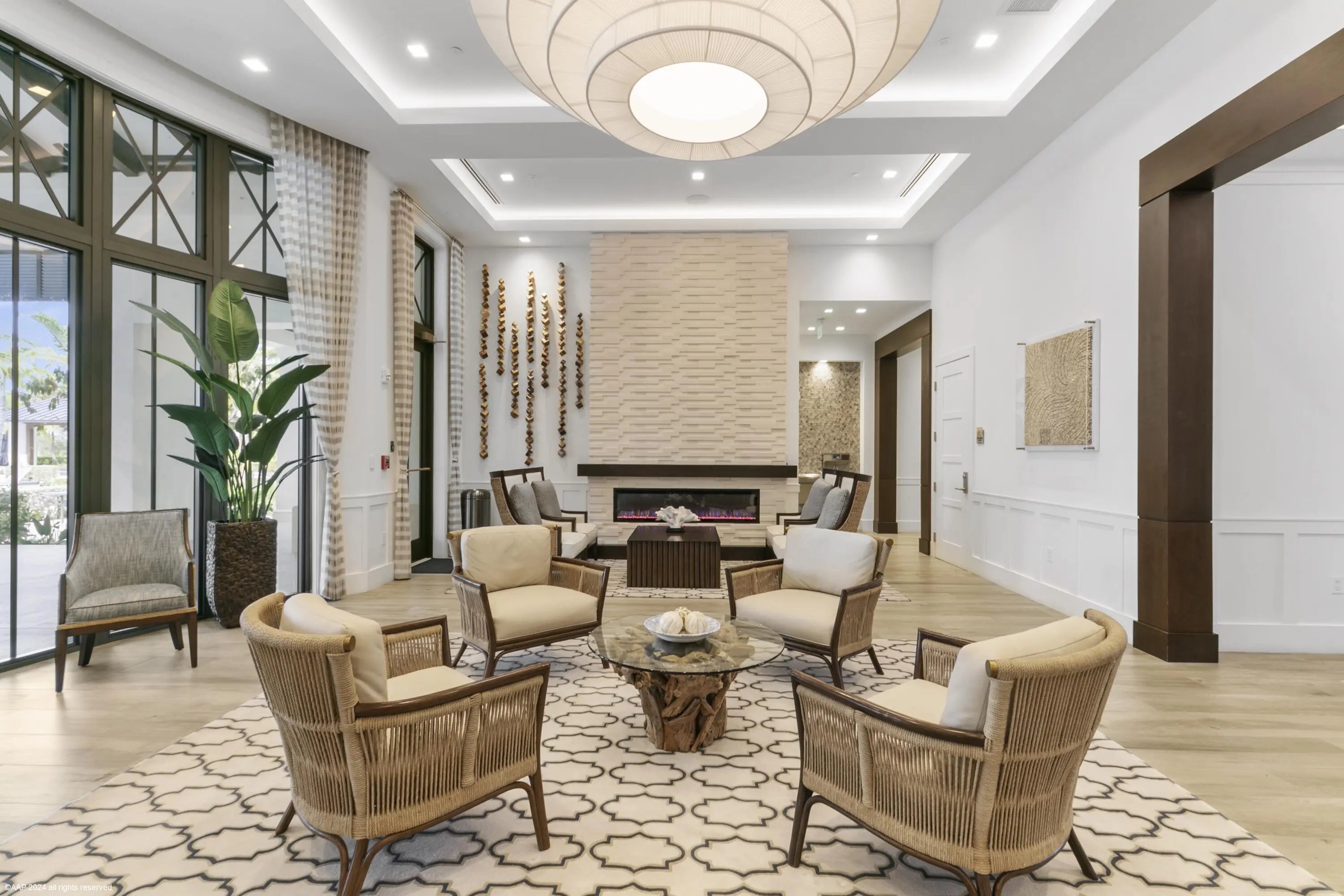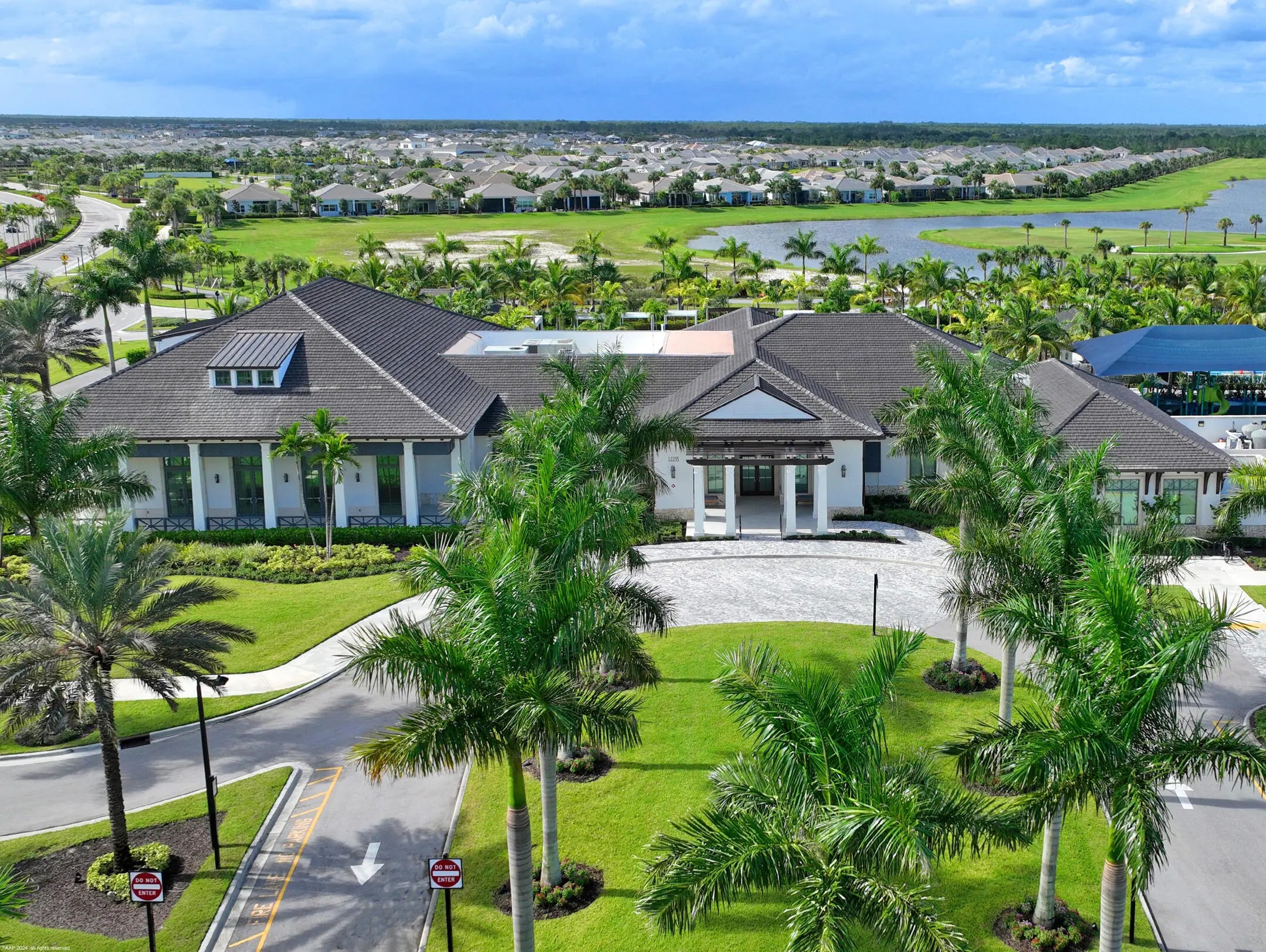 Don't miss the opportunity to see this exquisite waterfront home. From the moment you enter through the beautiful custom front door, your eyes are immediately drawn to the shimmering lake and fountain views visible through two sets of sliding glass doors. These doors open to a large panoramic, oversized screened patio - perfect for relaxing or entertaining. Whether you're cooking in the upgraded kitchen with a large built-in pantry,enjoying dinner, or relaxing in the gathering room, the tranquil water views create a stunning backdrop. The private, fenced backyard overlooks the lake and fountain, offering both beauty and privacy. This 3 bedroom, 2.5 bath home offers everything you've been wishing for. The kitchen features natural gas cooking with a cooktop, built-in microwave and oven along with an upgraded French-door refrigerator. The owner has installed high-end fixtures throughout the home, along with ceiling fans in every room. The main living areas and primary suite include electric window treatments. The master bedroom suite has an upgraded bathroom with two closets, the larger one has all built-ins.