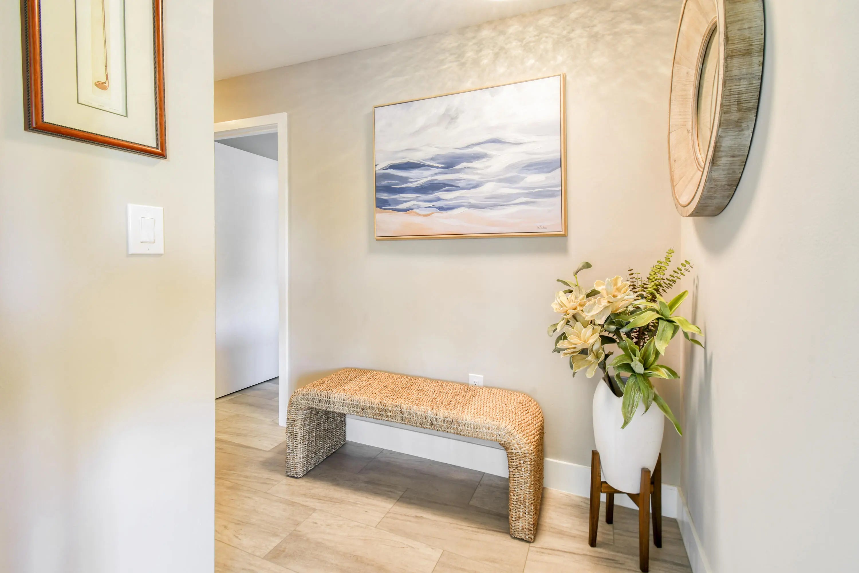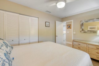 This beautifully renovated 3-bedroom, 2-bath condo in Jupiter, FL delivers the ultimate coastal lifestyle with style, comfort, and walkability. Thoughtfully updated from top to bottom in 2018, this 1,315 A/C sq ft residence is built with solid CBS construction and features a highly desirable split-bedroom floor plan, offering privacy and flexibility for guests, family, or a home office. The home feels fresh and modern thanks to LVT flooring throughout, smooth textured walls, new baseboards, and a newly painted interior, all enhanced by energy-efficient LED lighting, impact windows and doors, new fans, and updated window treatments. At the heart of the home, the renovated kitchen is both functional and elegant. White shaker soft close cabinetry, stone countertops, a tile backsplash, and LG stainless steel appliances create a timeless look, while the center island with bar overhang makes the space perfect for casual dining, entertaining, or morning coffee before the beach. The bathrooms are equally impressive, featuring glass-enclosed showers tiled to the ceiling for a clean, spa-like feel, plus the added convenience of having a washer and dryer in the unit as well. The oversized primary suite includes a large walk-in closet, offering storage rarely found in condos of this size, including an additional outdoor storage closet. Major systems have already been addressed with an updated A/C unit with a UV light and an updated water heater, allowing you to move in with confidence. Step outside and enjoy tranquil lake views with a fountain, a serene backdrop that brings a sense of calm to everyday living. Parking is easy with assigned parking plus ample guest spaces. The community elevates the lifestyle even further with a clubhouse, resort-style pool, tennis and pickleball courts, and direct access to Carlin Park. Best of all, you're within walking distance to Jupiter's beautiful beaches and a variety of local restaurants and bars, making it effortless to enjoy everything this coastal town is known for. Whether you're looking for a full-time residence, seasonal retreat, or low-maintenance investment, this move-in-ready condo offers the perfect blend of modern upgrades, prime location, and the laid-back elegance that defines life in Jupiter, Florida.