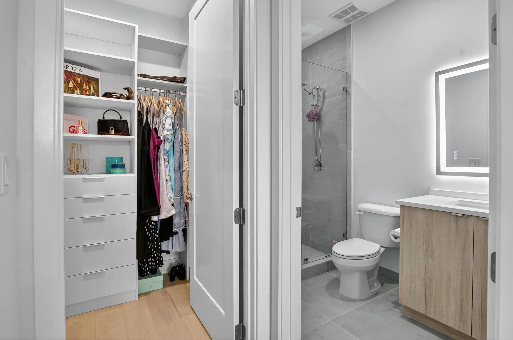 Built-in Features, High Ceilings, Walk-In Closet(s), Closet Cabinetry, Custom Mirrors, Upstairs Living Area, Cabana Bath