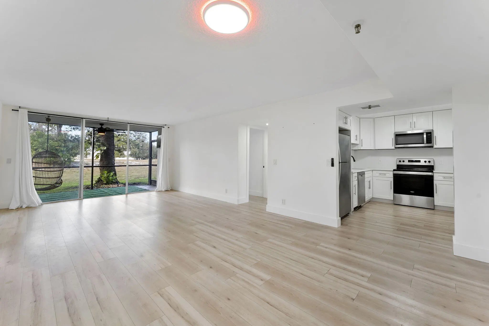 Welcome Home to Boca Teeca. Bring your tooth brush and move right in. This condo brings a modern feel with tasteful updates including high end luxury vinyl throughout, all new LED lighting, high hats and fixtures. Fresh paint, no popcorn or carpet. Kitchen offers white shaker cabinets, SS appliances with new deep sink and beautiful white quartz countertops with flowing backsplash. Large master offers amazing walk in closet with built in shelving. Completely remodeled master bath with gorgeous walk in shower offering dual rainfall shower heads. All new vanities mirrors. Sliders from master to the patio. Guest bathroom is updated as well, larger W/D in separate laundry closet. Large Screened in Patio with TV outside, complete according shutters, deeded parking spot. Water Sewer Trash Cable TV and Internet Pool and Tennis/Pickelball included in condo fee. LOCATION LOCATION LOCATION. East Boca Condo 5 Minutes to 95 and the beach. Close to all restaurants, shopping and places of worship.