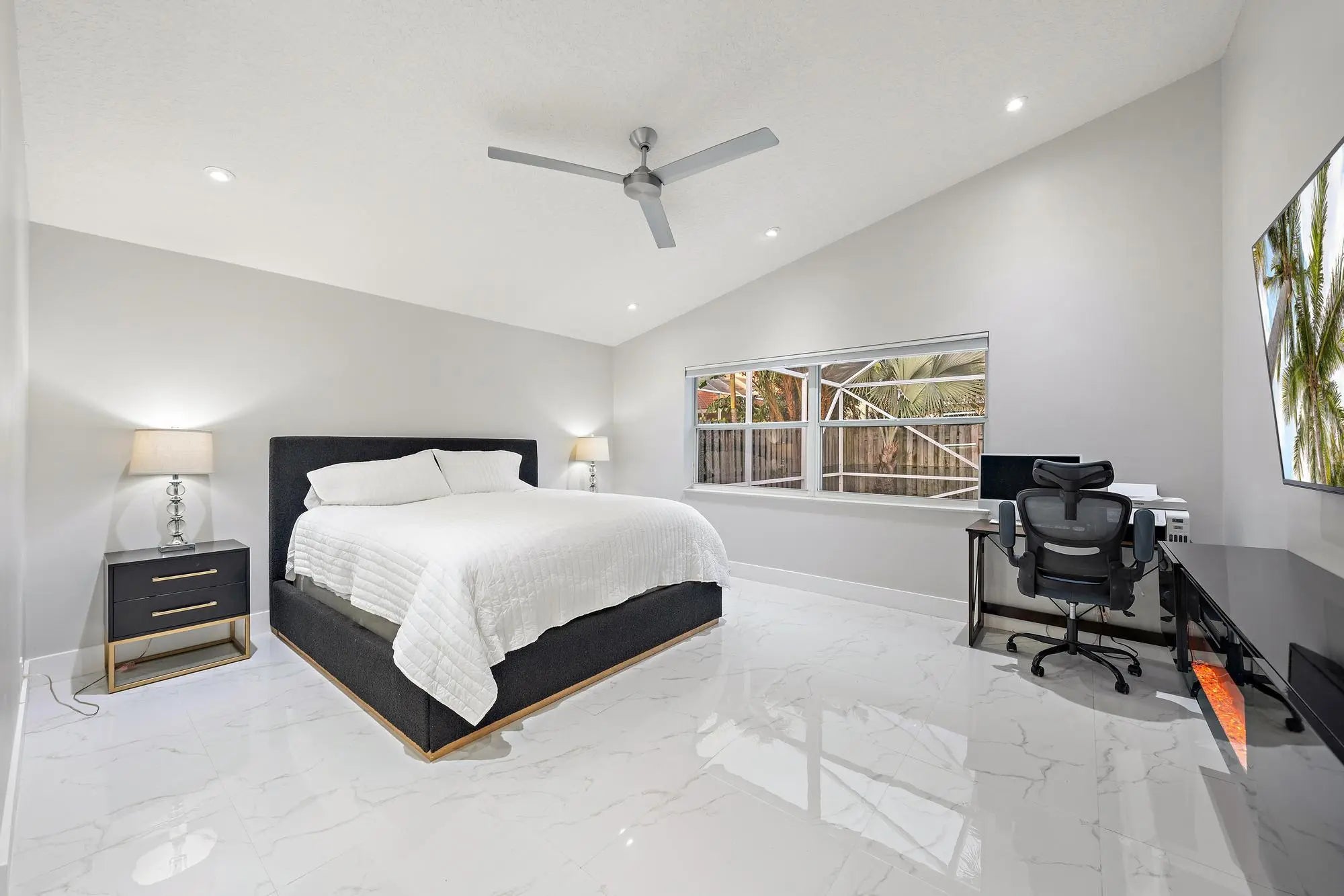 Cathedral Ceiling(s), High Ceilings, Vaulted Ceiling(s), Walk-In Closet(s), Bedroom Layout - Split, Closet Cabinetry