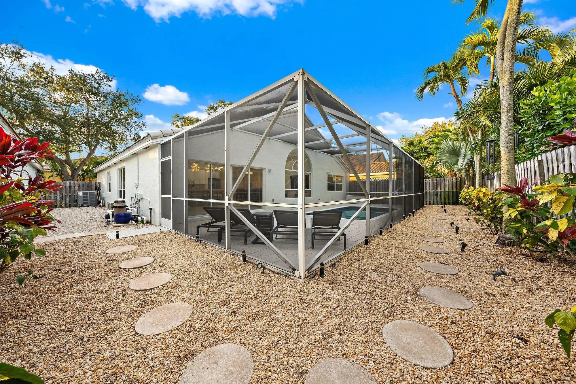Welcome to 1077 Siena Oaks Cir E, a beautifully updated and maintained home in the heart of Palm Beach Gardens. This 3-bedroom, 2-bathroom residence is a perfect blend of comfort and convenience with no expense spared in it's renovation. Step inside to discover a thoughtfully designed layout with ample space to entertain or relax. The bright and inviting living areas flow seamlessly into the kitchen, creating a welcoming atmosphere for family gatherings or quiet evenings. The oversized, waterfall, island is the centerpiece of the home and the gathering spot for family and friends. Outdoors, this home truly shines with a screened in pool/lanai perfect for cooling off on warm Florida days while keeping the bugs out. Evening time is truly incredible on this property, featuring an abundance of mature landscaping with lighting to emphasize the beauty. As part of this safe and lovely community, enjoy access to a range of shared amenities, including a recently resurfaced pickleball court and updated pool area. Within just minutes from Palm Beach Gardens medical center, TGL SoFi Arena, the beach, A rated schools, award winning restaurants, etc., you truly cannot beat this location. With its incredible location and updated features, 1077 Siena Oaks Cir E offers everything you need to enjoy comfortable, modern living. Don't miss the opportunity to make this stunning home your own! Schedule your private showing today and experience all this property has to offer.