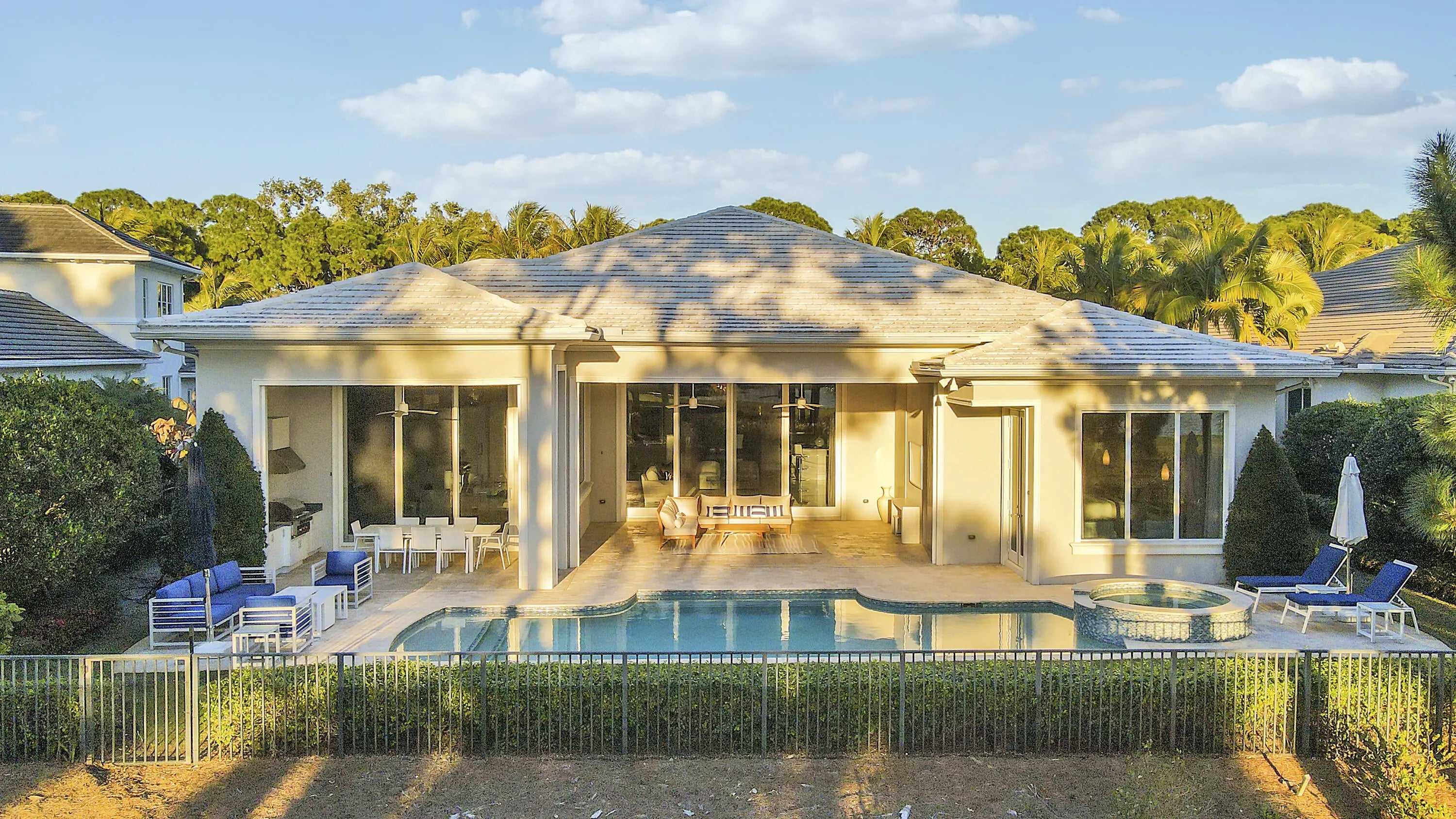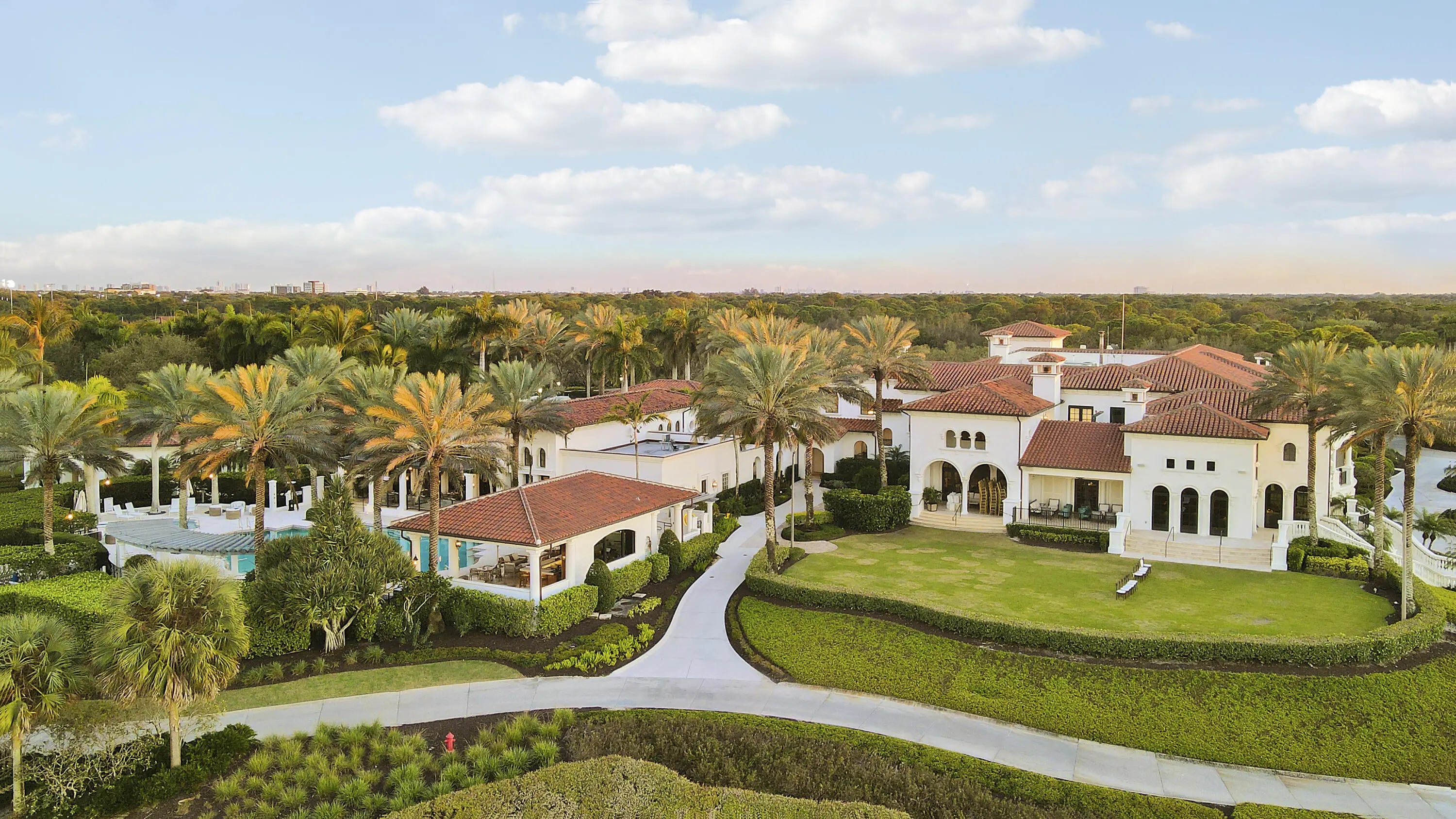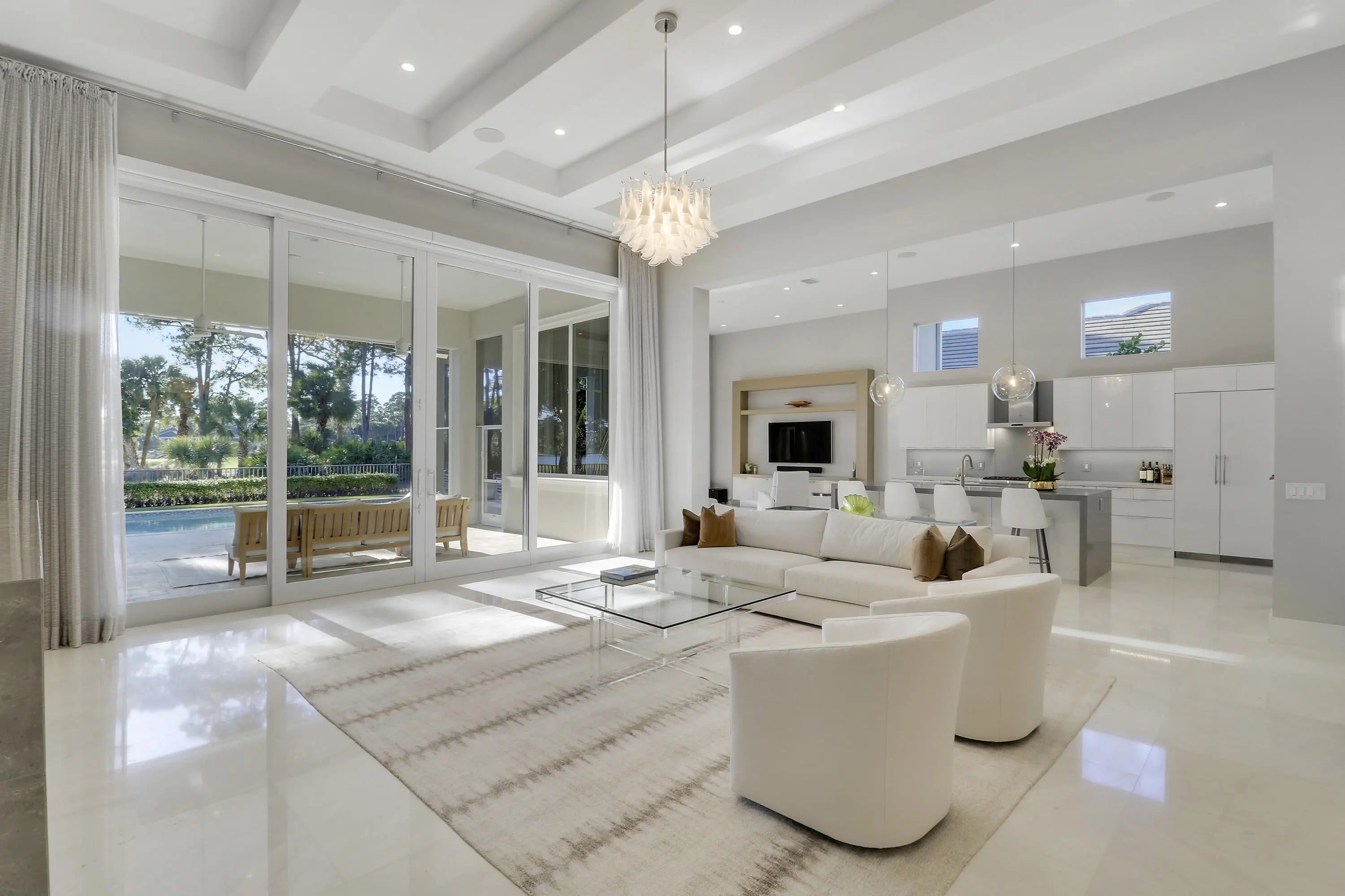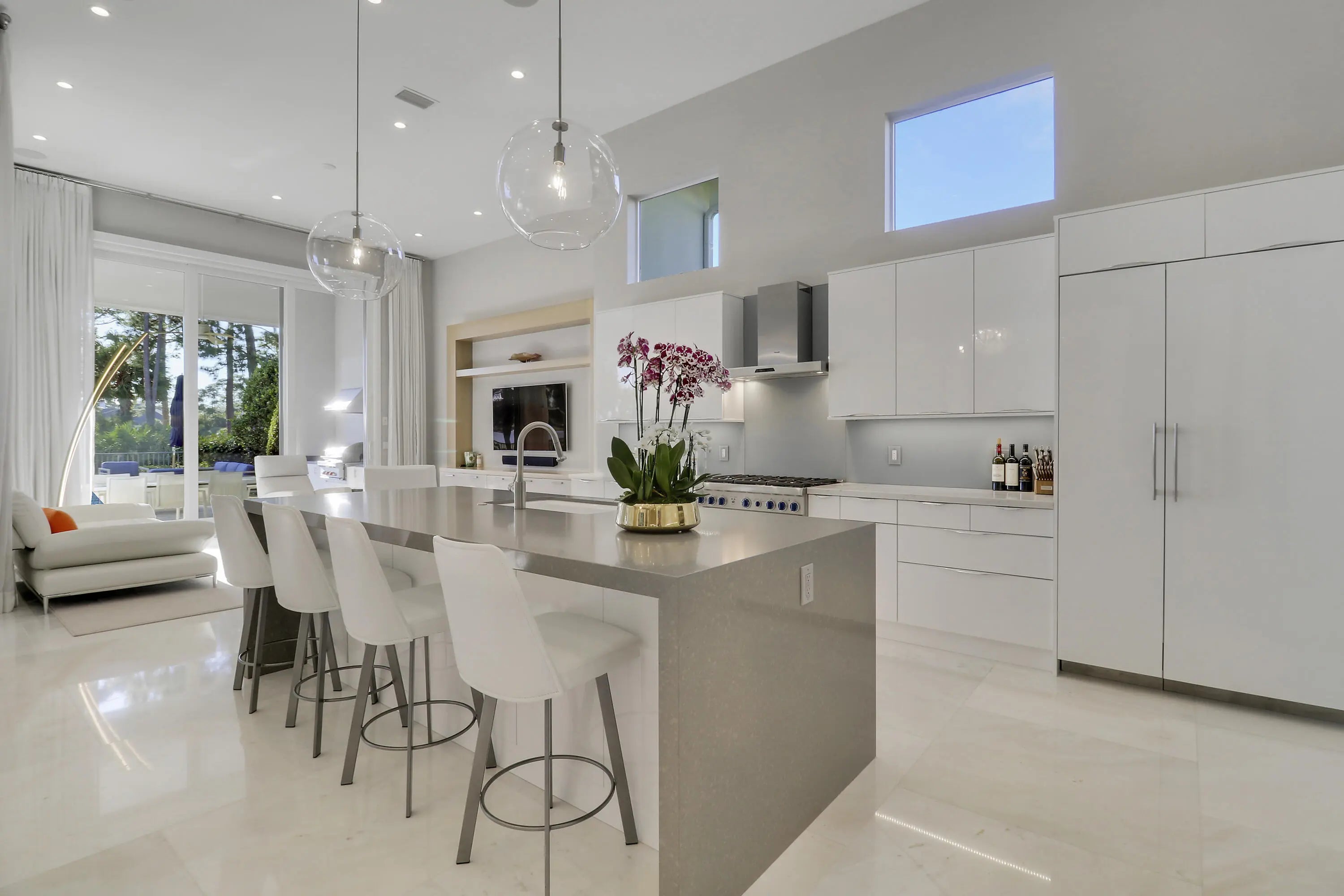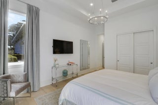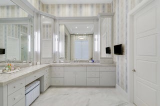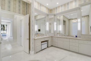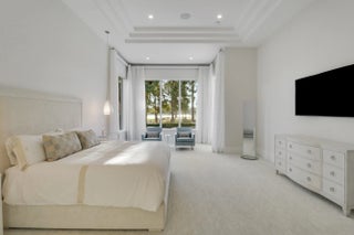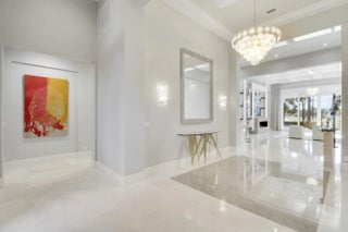 Spectacular 1-story residence by Mustapick Homes on a .39 acre lot featuring 4 full bedroom suites + an office/den, 5.5 baths, epic golf and lake views, 36x36'' Diamond White marble floors, Imported Italian kitchen w/ Thermador appliances, Stormy Sky and Calcutta Quartz counter tops, wet bar, and coffered ceiling heights up to 15'. The primary suite is enormous with a sitting room. Separate his and her baths and closets. Her built-out closet is the size of a guestroom! The outdoor area features a summer kitchen, phantom retractable screens, heated pool & spa, and some of the best views in Old Palm. This gorgeous home is being offered furnished so you begin enjoying this home and the Old Palm right away. This is a rare offering so act quickly and don't miss your opportunity! Additional Features: Air conditioned garage European White Oak Floors in the guest suites