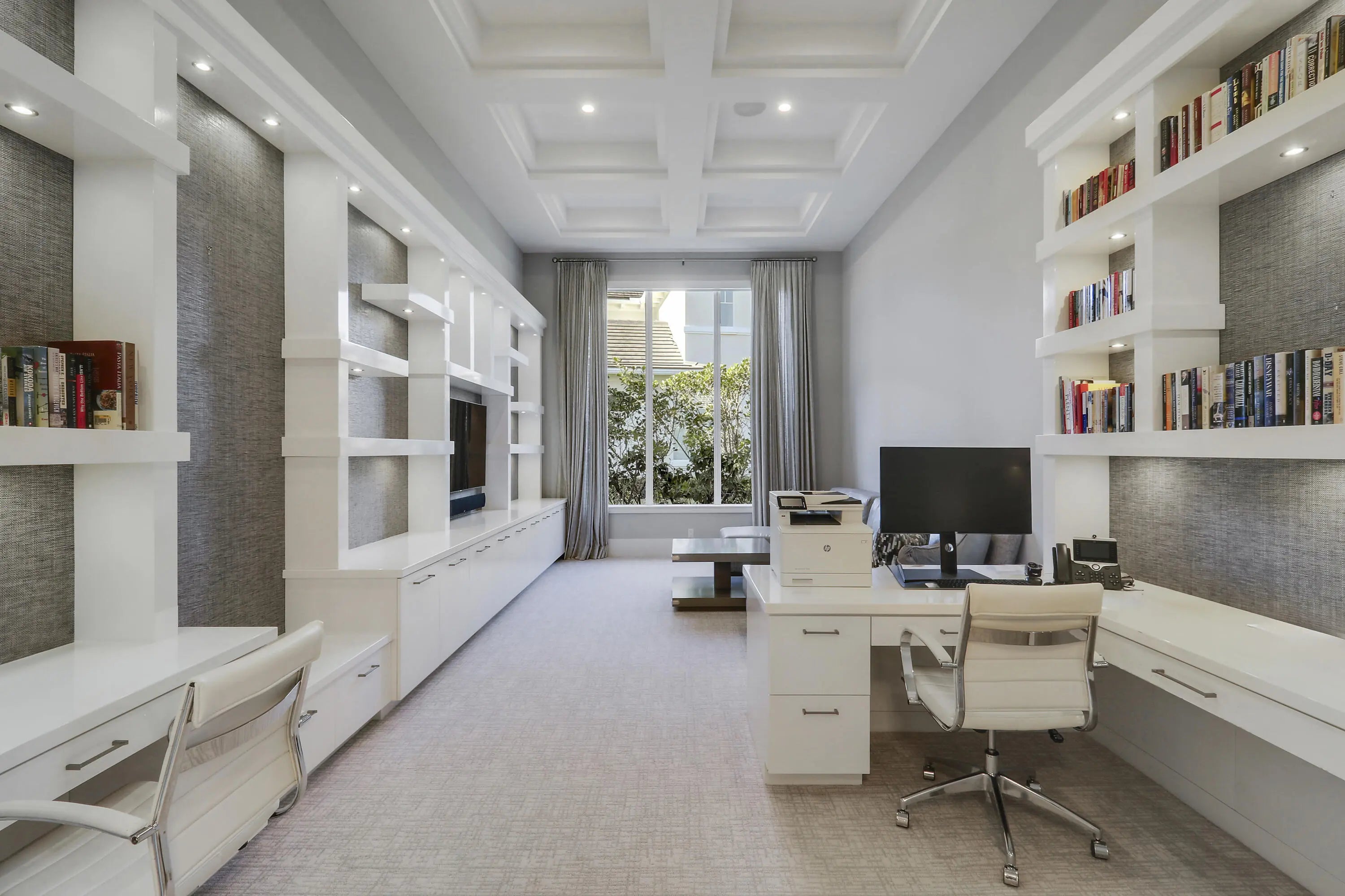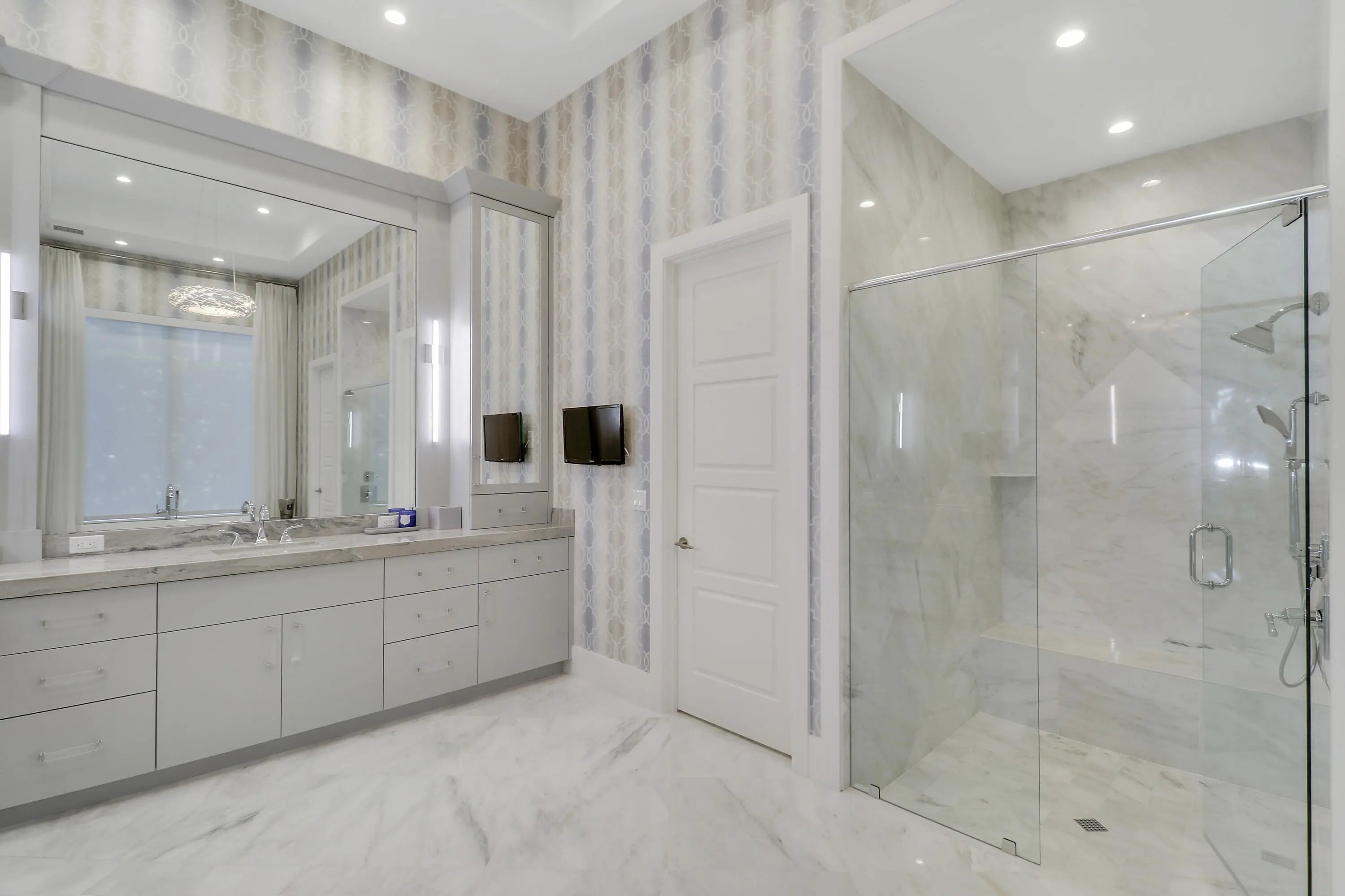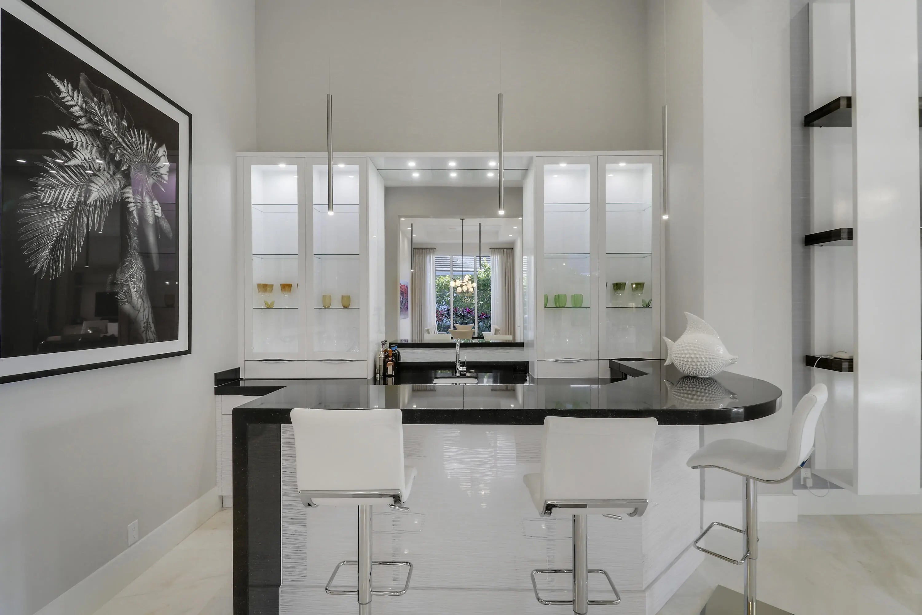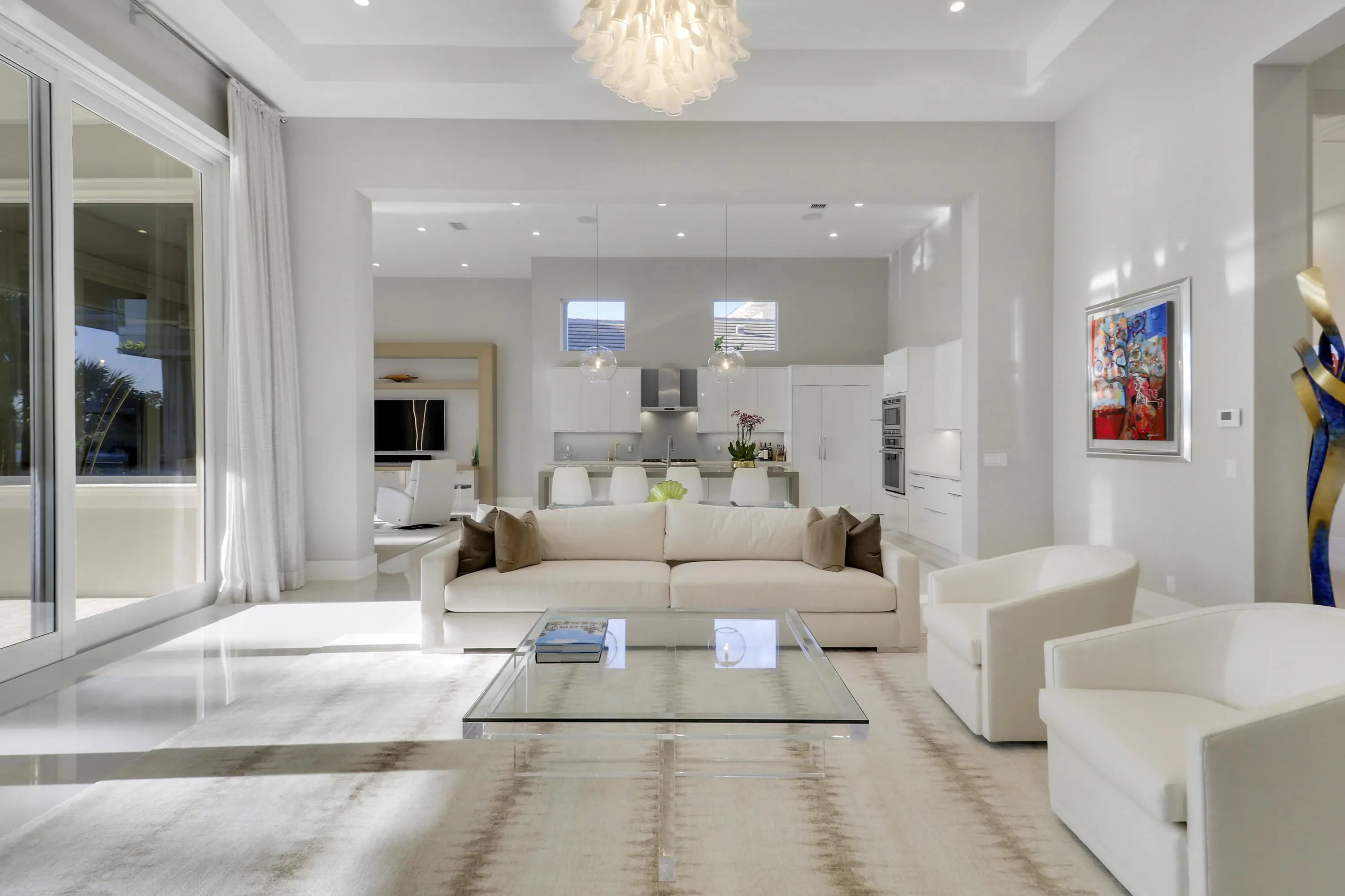 Spectacular 1-story residence by Mustapick Homes on a .39 acre lot featuring 4 full bedroom suites + an office/den, 5.5 baths, epic golf and lake views, 36x36'' Diamond White marble floors, Imported Italian kitchen w/ Thermador appliances, Stormy Sky and Calcutta Quartz counter tops, wet bar, and coffered ceiling heights up to 15'. The primary suite is enormous with a sitting room. Separate his and her baths and closets. Her built-out closet is the size of a guestroom! The outdoor area features a summer kitchen, phantom retractable screens, heated pool & spa, and some of the best views in Old Palm. This gorgeous home is being offered furnished so you begin enjoying this home and the Old Palm right away. This is a rare offering so act quickly and don't miss your opportunity! Additional Features: Air conditioned garage European White Oak Floors in the guest suites