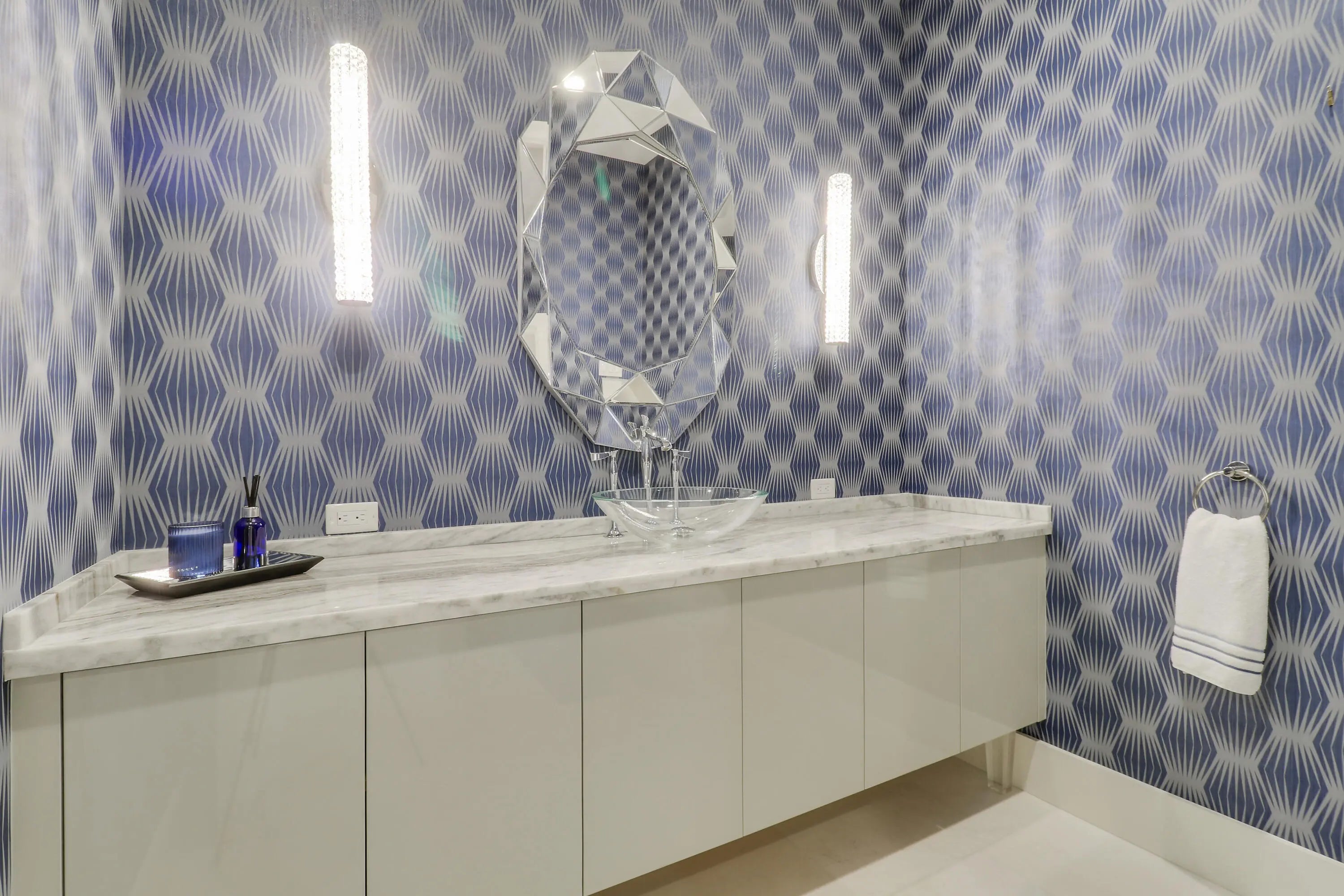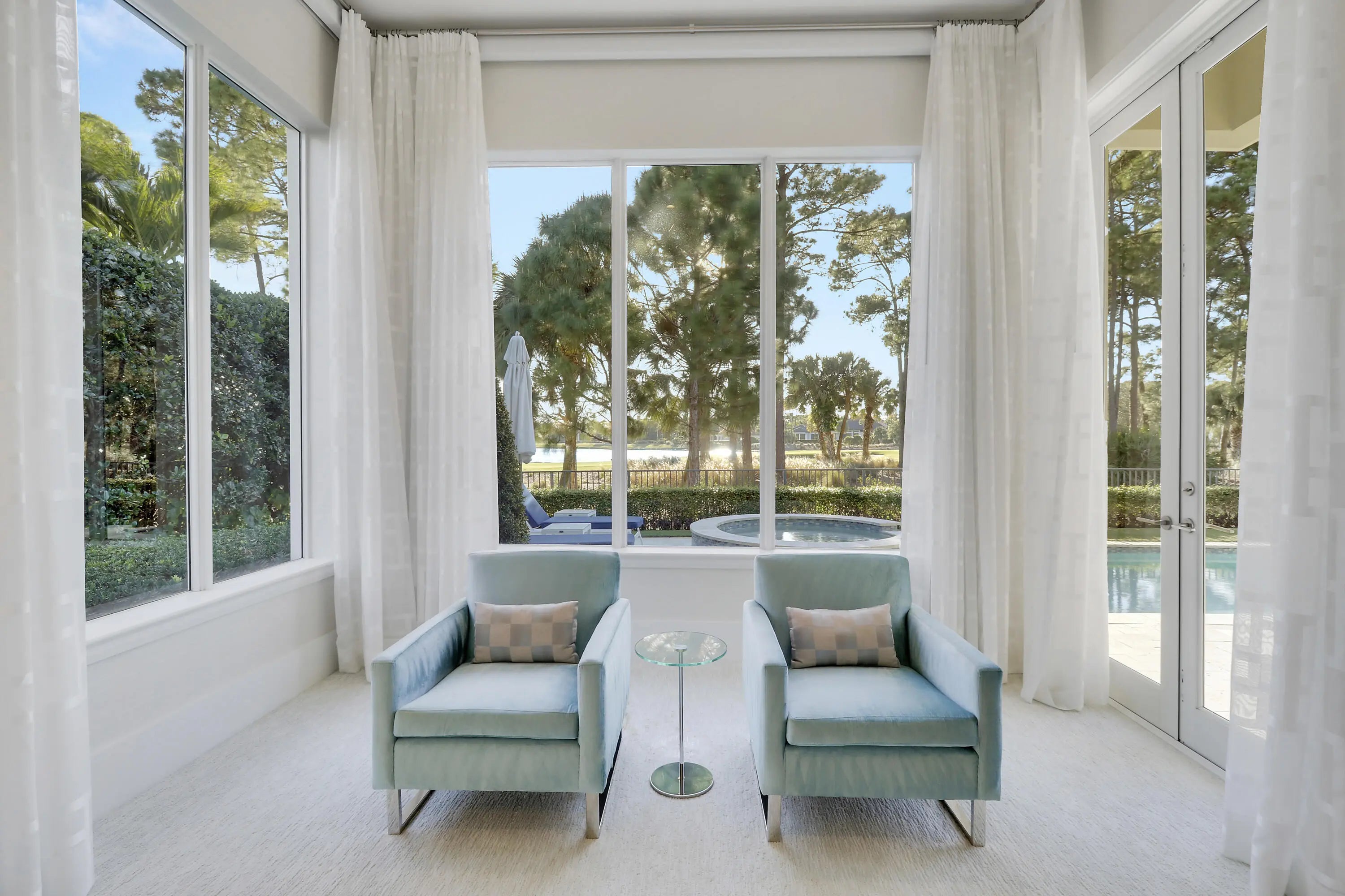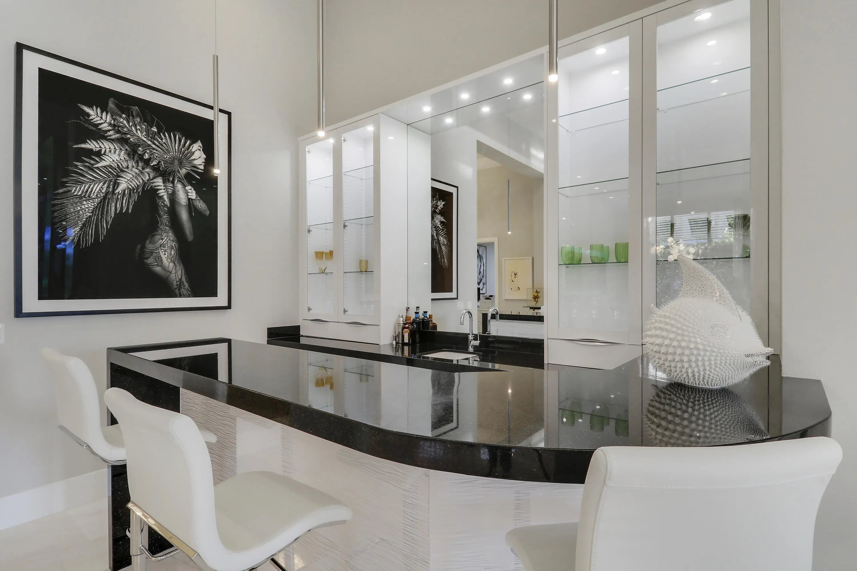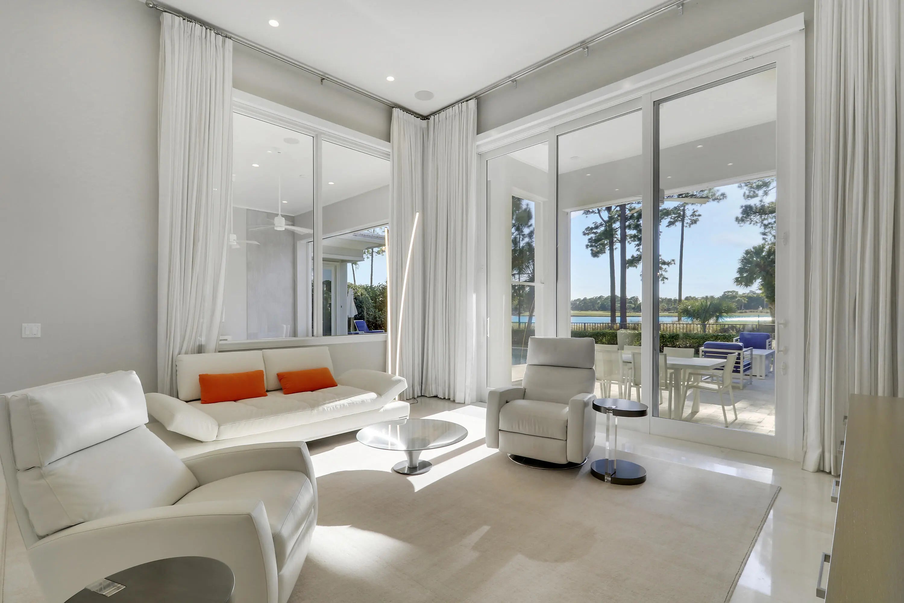 Spectacular 1-story residence by Mustapick Homes on a .39 acre lot featuring 4 full bedroom suites + an office/den, 5.5 baths, epic golf and lake views, 36x36'' Diamond White marble floors, Imported Italian kitchen w/ Thermador appliances, Stormy Sky and Calcutta Quartz counter tops, wet bar, and coffered ceiling heights up to 15'. The primary suite is enormous with a sitting room. Separate his and her baths and closets. Her built-out closet is the size of a guestroom! The outdoor area features a summer kitchen, phantom retractable screens, heated pool & spa, and some of the best views in Old Palm. This gorgeous home is being offered furnished so you begin enjoying this home and the Old Palm right away. This is a rare offering so act quickly and don't miss your opportunity! Additional Features: Air conditioned garage European White Oak Floors in the guest suites