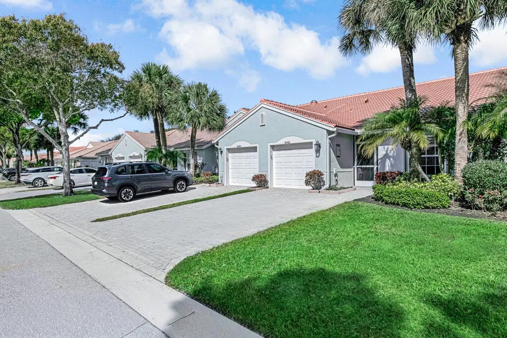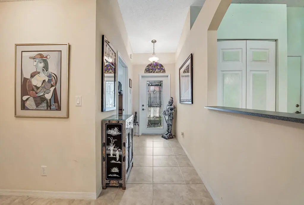 NEW ROOF! Beautiful glass front door. Absolutely meticulous home with extended patio crown molding, custom vanity in primary bath, a/ 2019 and hot water heater 2022. fabulous custom closet in primary bedroom. Venetian Isles is the latest rage! Resort living at its finest! Brand New & exquisite clubhouse is not only stunningly gorgeous but truly has it all! First you have an elegant lobby with an elevator that brings you to an upper level lounge and rooftop bar that leads out to a fabulous rooftop patio. The entire indoor and outdoor upper level overlooks the pools, lake cabanas and veranda. Then on the main level you'll find the restaurant, card rooms, library, billiards, arts and crafts center and more!