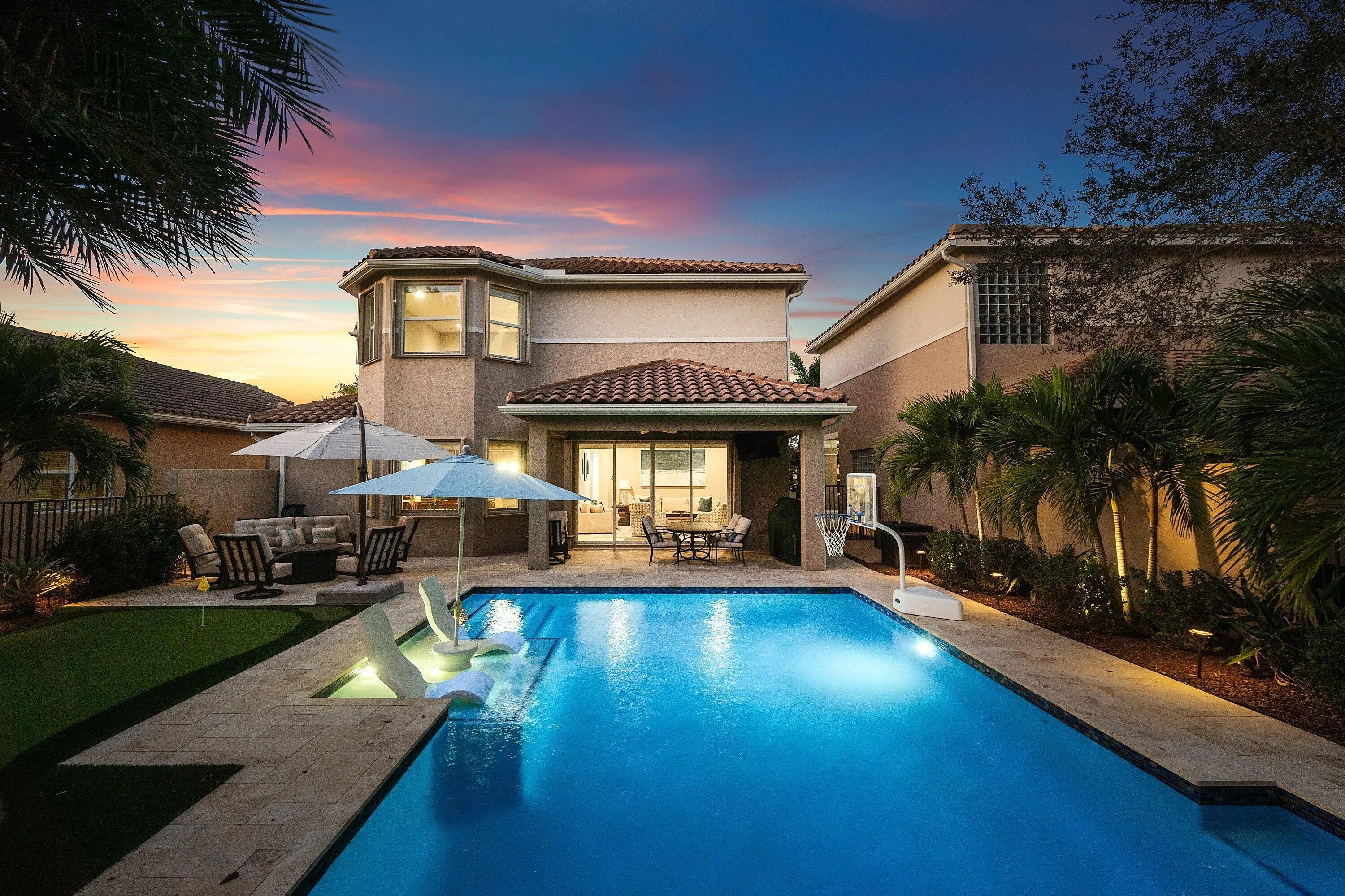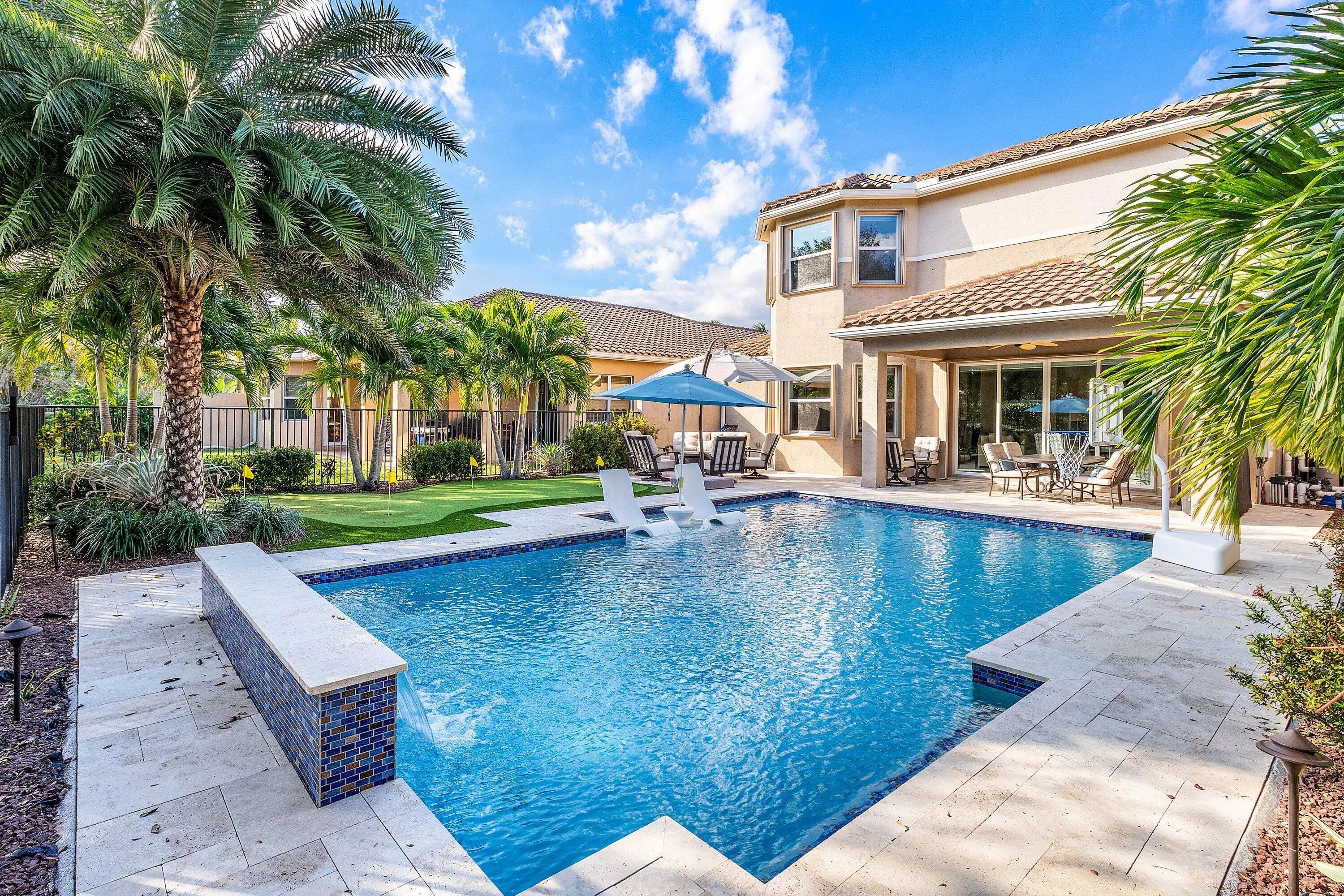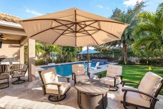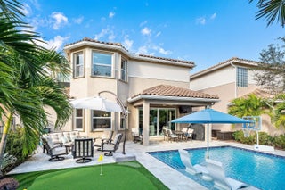 Gorgeous 5 Bedroom Pool Home in Canyon Trails. This Exquisite Home Sits on a Premium Private Lot with Unobstructed Lake Views from the Front and Private Green Space in the Back. The Home Includes Accordion Hurricane Shutters Throughout & Impact Glass Front Doors at the Entrance. The Living Areas Have Beautiful Wood Look Tile Floors. The Home has Smooth Walls Painted in Modern Tones. The Huge Kitchen Boasts 42'' Wood Cabinetry, Granite Counters & Stainless Steel Appliances. The Backyard is Truly Spectacular . Travertine Pavers Lead to the Custom Oversized Heated Pool with Sunshelf and Waterfall. There is Even a 3 Hole Putting Green to Complete Your Private Resort. Upstairs is a Large Loft that Makes a Great Den/Hangout. The Primary Suite has Walk-In Closets and an Updated Bathroom. There are 3 Upstairs Guest Rooms Including Two that Share a Jack & Jill Setup. Other Awesome Features of this Home include Remote Controlled Window Treatments, a Mosquito Misting System on the Exterior, a Huge Storage Closet & Even a Separate A/C System for the Garage. Canyon Trails is an Incredible Community with Amenity Rich Clubhouse & a 24 Hour Manned Gate. All within Walking Distance to Excellent Schools, Shopping and a New County Park and Library.