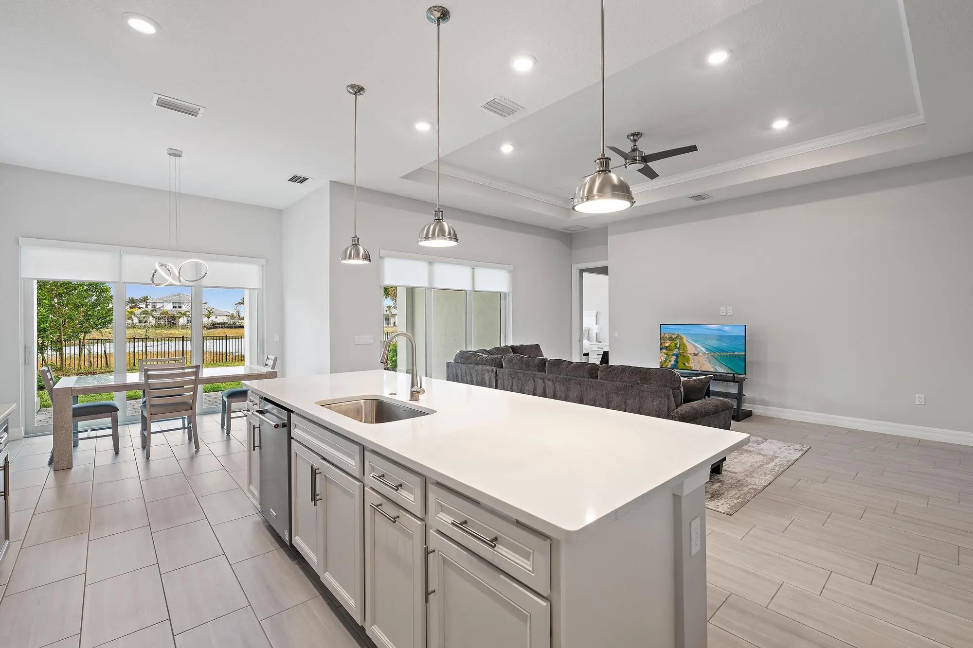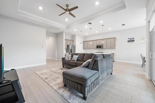 More than $44,000 in thoughtfully curated upgrades, both functional and aesthetic, elevate this beautifully appointed Prestige model set on a premium waterfront lot within the vibrant Avondale community of Avenir in Palm Beach Gardens. Built by DiVosta and truly better than new, the home captures magnificent west-facing sunset views and serene water vistas, complemented by a fully fenced yard that enhances privacy and everyday enjoyment. The interior has been refined with a cohesive palette and designer-selected enhancements throughout. The kitchen serves as a striking centerpiece, featuring upgraded 3cm polished quartz countertops, an elegant marble backsplash, an upgraded sink and faucet, a curated pendant lighting package, and an exterior hood vent upgrade-- blending beauty and performance for both daily living and entertaining. Baths have been elevated with upgraded 3cm polished quartz countertops, enhanced shower wall tile extended to the ceiling in the primary bath, and upgraded secondary bath finishes, delivering a spa-like feel. Upgraded tile flooring in the main living areas pairs seamlessly with plush upgraded carpeting in the bedrooms, while a two-tone interior paint scheme, upgraded lighting and hardware package, and LED lighting throughout create a polished, modern ambiance. Additional thoughtful upgrades include ceiling fans in all bedrooms, the dining area, and living room, blinds on all windows and sliders, a glass insert in the impact-rated front door, and an enhanced garage lighting package. Beyond the home itself, Avondale at Avenir offers a lifestyle defined by connection, convenience, and resort-style amenities. Residents enjoy a luxurious clubhouse, resort-style pools, state-of-the-art fitness centers, tennis courts, and scenic walking trails. The highly anticipated Avenir Town Center, coming soon, will introduce world-class shopping, dining, and entertainment just moments from home. Ideally located in one of Palm Beach Gardens' most desirable new communities, this residence delivers modern Florida living at its finest--newer construction, tasteful upgrades, tranquil water views, and an energetic yet peaceful setting. Move right in and begin enjoying the Avondale at Avenir lifestyle immediately.