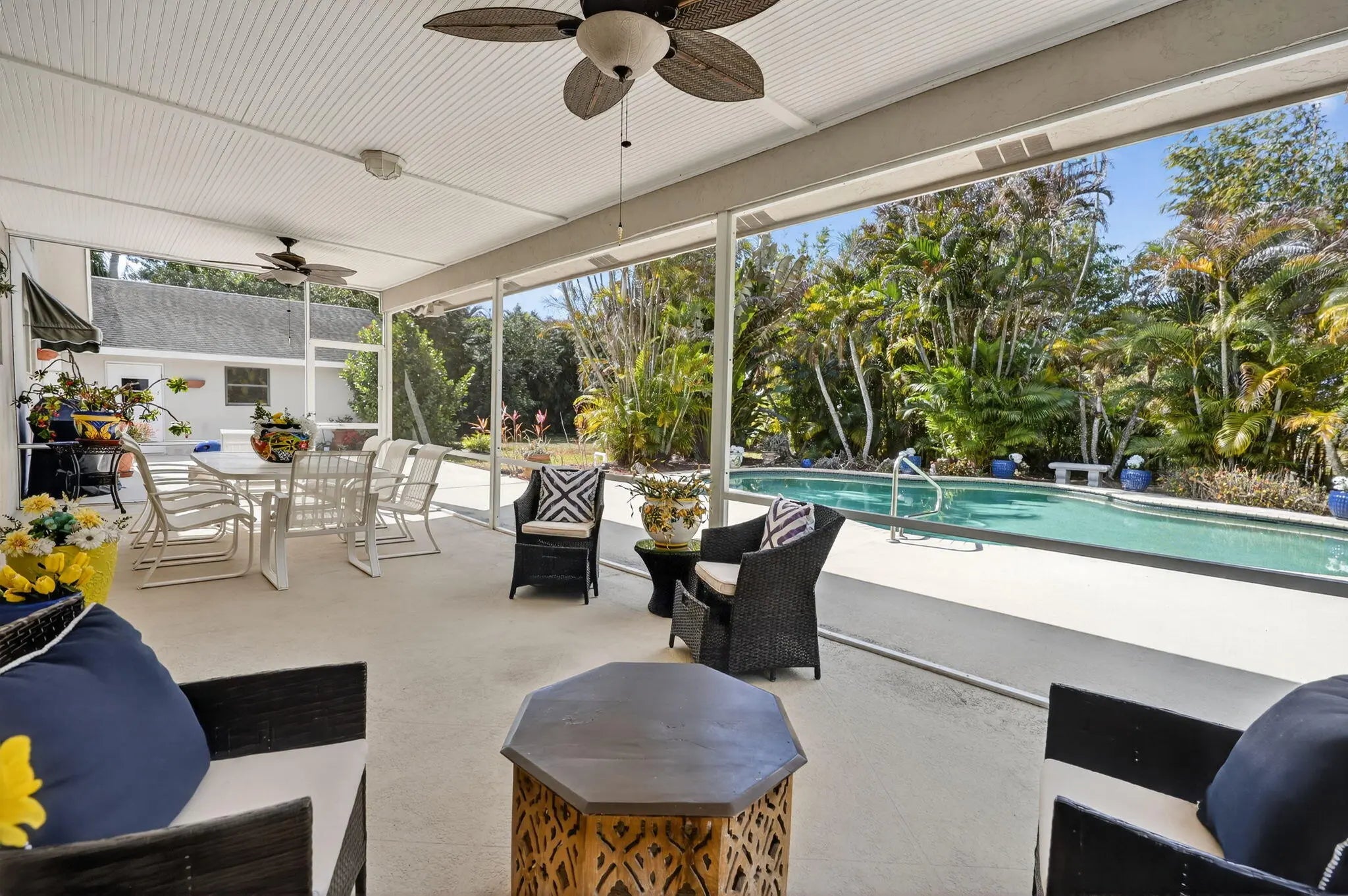Welcome to this beautifully maintained single family home in the desirable Palm Beach Country Estates subdivision of Palm Beach Gardens. This inviting residence offers four bedrooms and two full bathrooms with a functional layout ideal for families or entertaining. Enjoy an open floor plan with natural light, a well appointed kitchen, and comfortable living areas. The private primary suite offers ample closet space, while additional bedrooms are perfect for guests or a home office. Step outside to your private retreat with an in ground pool featuring color changing LED lighting, a well maintained garden, and a built in surround sound system. Additional highlights include an oversized three car garage, extra long driveway, and the property sits on over 1.15 acres. Dont miss OUT!