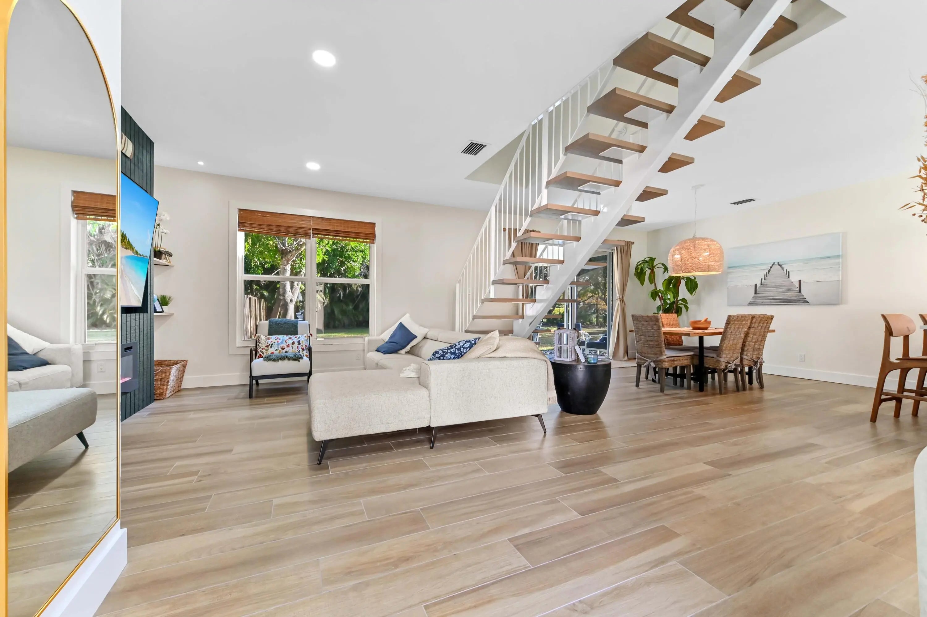 Welcome to this beautifully updated home located within the highly desirable gated community of Nautica. NEW 2025 ROOF and AC with impact windows and doors. Situated at the end of a peaceful cul-de-sac, this single-family home sits on a premier 0.25-acre corner lot. This residence delivers modern upgrades and a bright, open layout designed for today's lifestyle. Step inside to soaring ceilings and an airy living space filled with natural light. The open-concept main level flows seamlessly from the living area to the dining space and into a thoughtfully renovated kitchen featuring sleek cabinetry, upgraded countertops, stainless steel appliances, and generous prep space. Upstairs, the open staircase adds architectural interest while maintaining the home's contemporary feel. The bedrooms are well-sized with ample closet space, and the updated bathrooms showcase clean finishes and modern touches. Beyond the property line, the Nautica community offers a resort-style lifestyle with impressively low HOA fees. Residents enjoy a wealth of amenities including a sparkling swimming pool and diverse recreation options like tennis and basketball courts. For families, the community playground provides a perfect gathering spot, while the gated entrance ensures an added layer of privacy and security. The location is truly unbeatable, placing you in the heart of Boynton Beach with effortless access to everything the area has to offer. You are just minutes away from top-rated schools, premier dining, and vibrant shopping centers, with I-95 conveniently close for easy commuting. Best of all, the beautiful South Florida beaches are a short drive away, offering the quintessential coastal lifestyle.