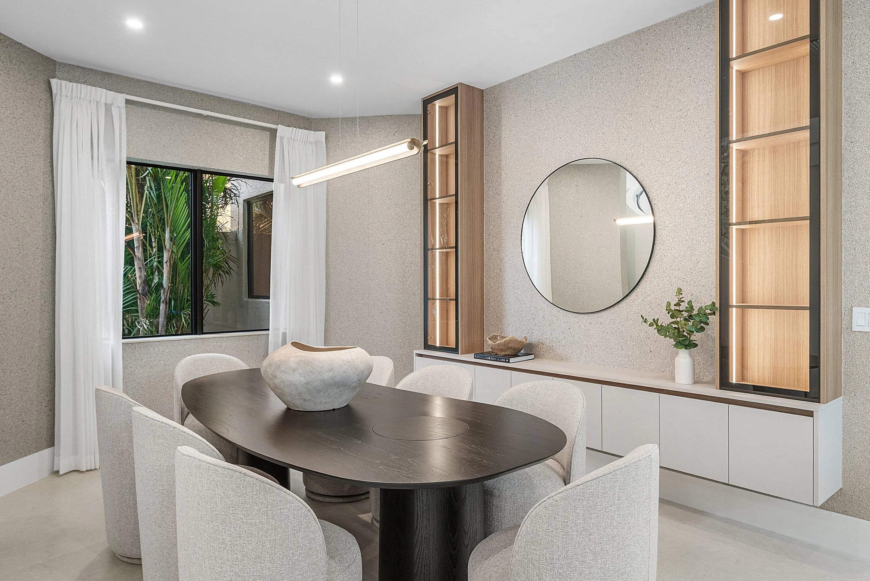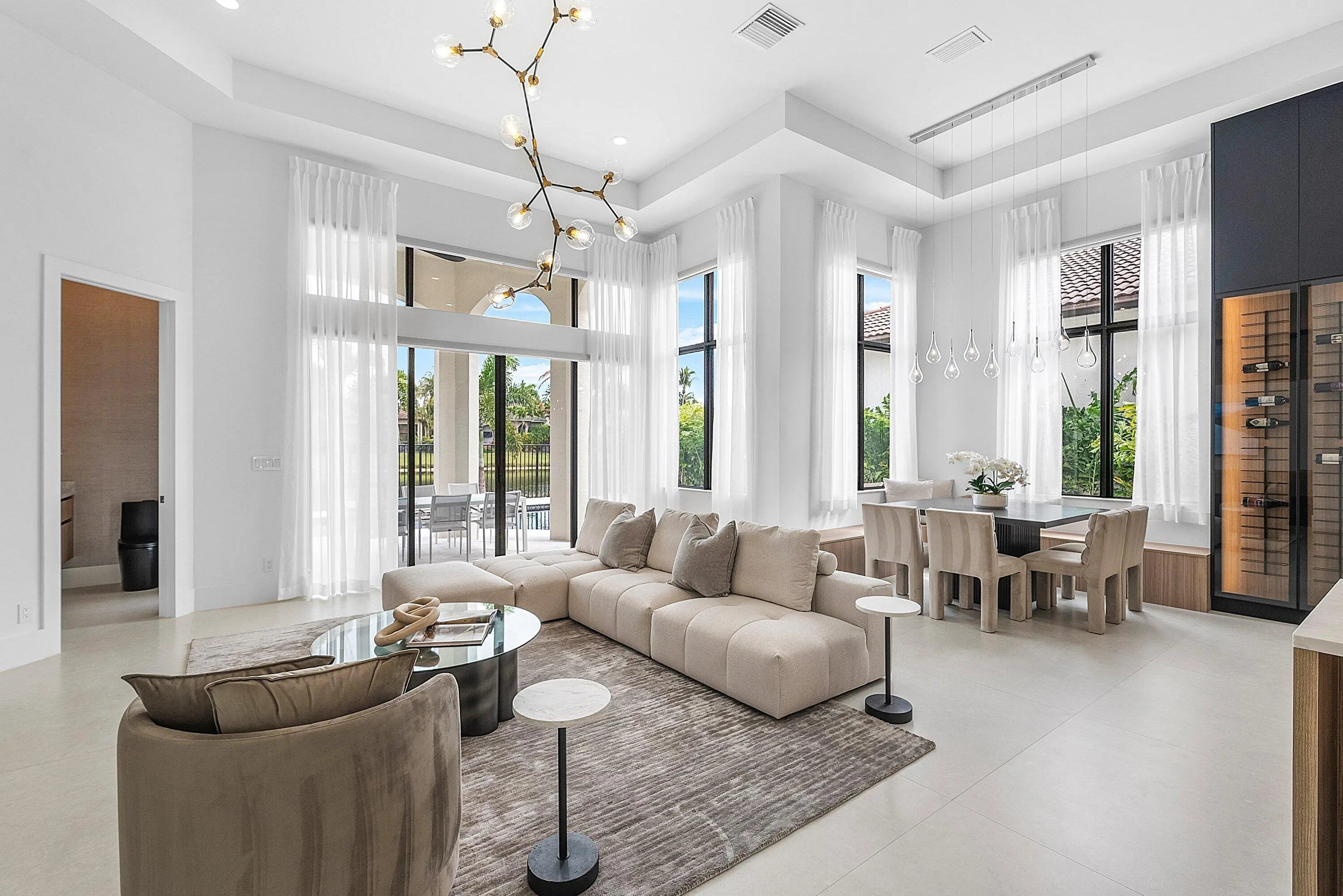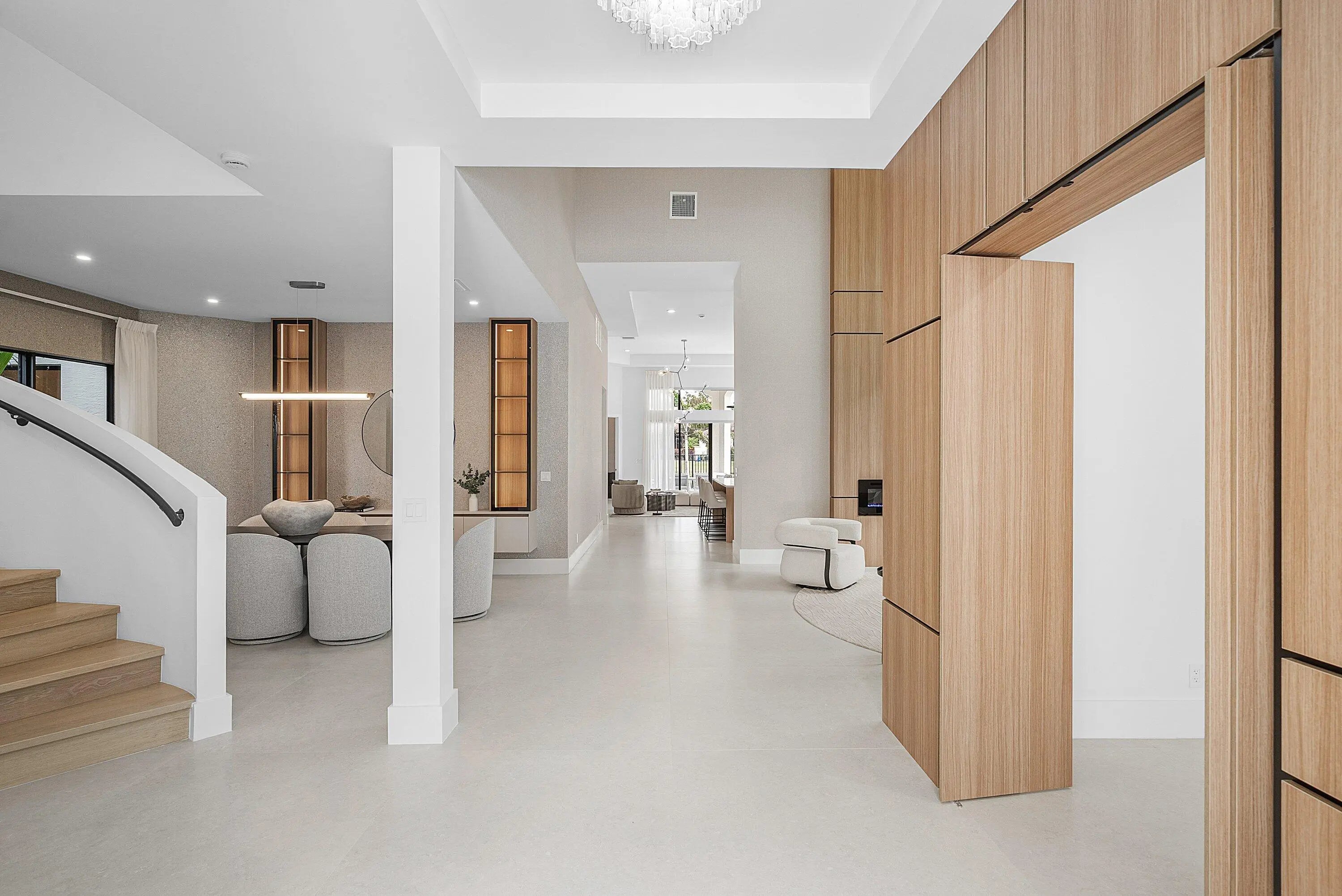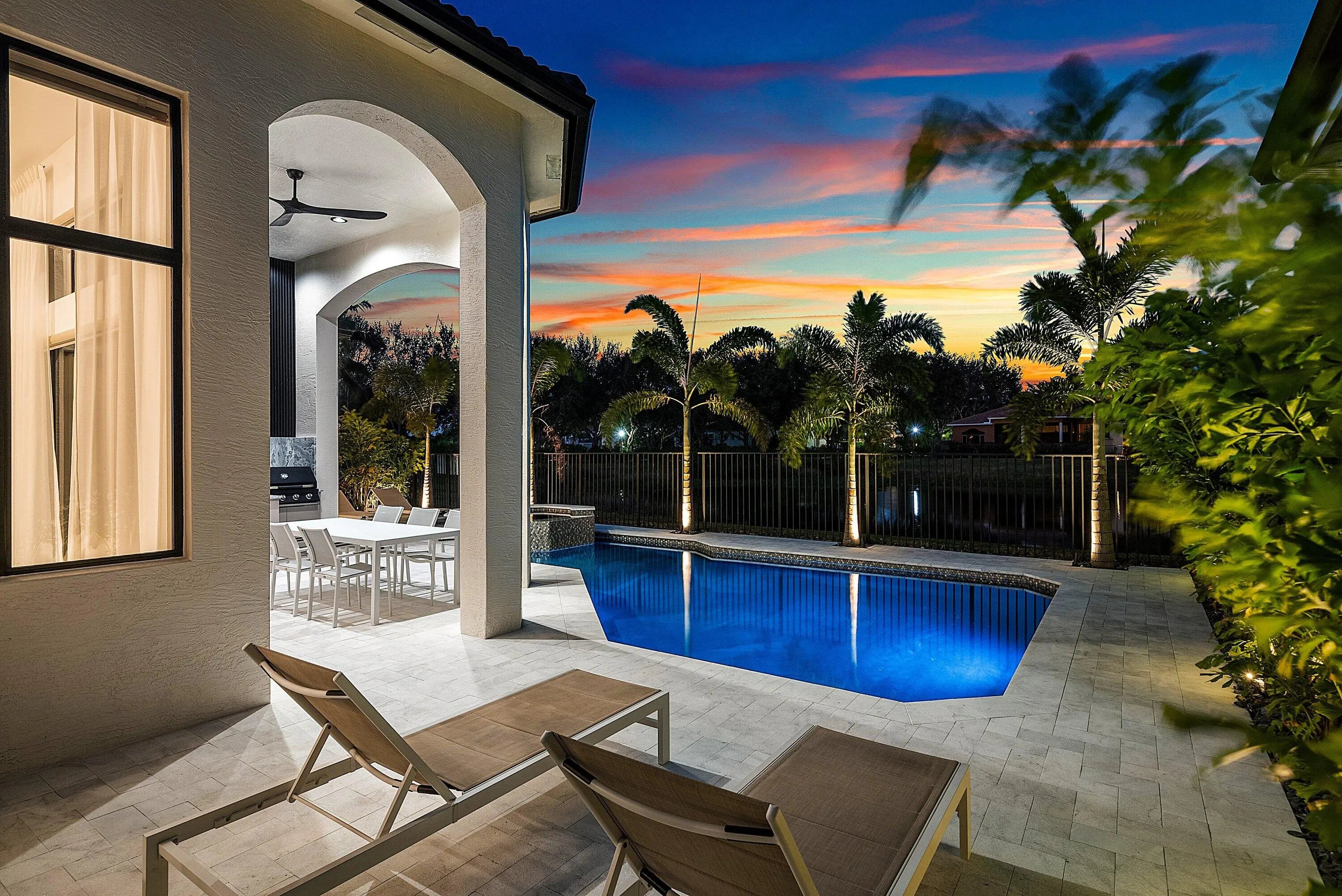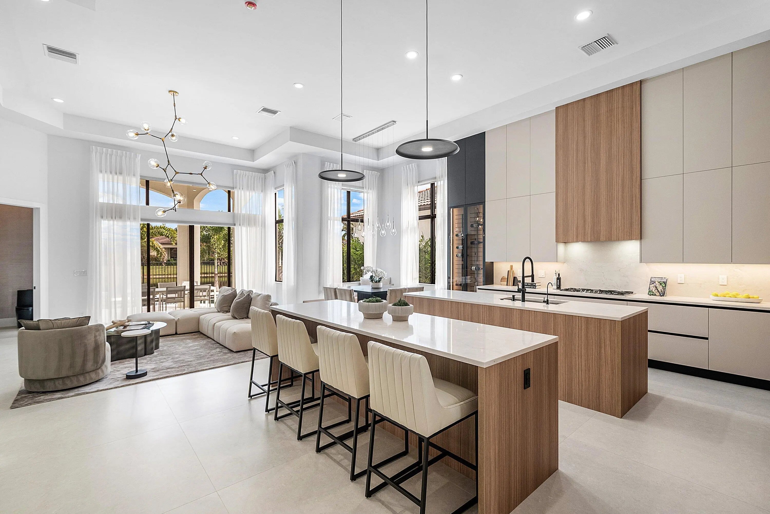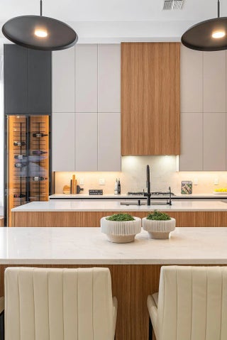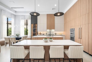 Introducing the Crown Jewel of Boca Raton: Luxurious Lakefront Living in The Oaks Nestled within one of Boca Raton's most prestigious gated communities, this extraordinary lakefront estate is a true masterpiece, offering over 200 feet of breathtaking water-frontage and an unparalleled blend of elegance, craftsmanship, and comfort. Every detail of this remarkable residence has been meticulously curated. The home features five spacious bedrooms, each with its own private ensuite bathroom, along with a custom-designed office perfect for working in style. At the heart of the home is a state-of-the-art Thermador kitchen, showcasing double islands, a double oven, microwave, and five-burner cooktop--a dream for culinary enthusiasts. Backlit cabinetry adds a touch of sophistication, while the custom breakfast area invites relaxed, everyday dining. The expansive living room is adorned with custom window treatments, oversized tile flooring, and an elegant yet welcoming ambiance. The formal dining area impresses with custom white oak built-ins and striking wine cork wallpaper, creating a truly memorable entertaining space. The primary suite is a private sanctuary, featuring custom lighting, a bespoke white oak bed frame and headboard, dual custom closets, and luxurious his-and-hers bathrooms with dual vanities and a stunning freestanding soaking tub. Throughout the home, distinctive designer light fixtures elevate every space, complemented by nearly $200,000 in custom white oak millwork and designer wallpaper finishes. The family room offers warmth and style with an electric faux fireplace, while a dramatic chandelier suspended from the soaring ceiling creates a grand first impression upon entry. The downstairs office is outfitted with custom white oak cabinetry and elegant drapery, providing a refined and productive workspace. Step outside to a private oasis where over $150,000 has been invested in exquisite landscaping and hardscaping. The outdoor space features a luxurious pool with new equipment and heater, a custom summer kitchen, and serene lake views perfect for relaxing or entertaining year-round. Additional highlights include impact windows, custom hidden entry doors, designer wallpaper throughout, and a striking 14-foot custom staircase feature that serves as a true architectural statement. This is more than a home it's a lifestyle. Perfectly positioned in The Oaks, this one-of-a-kind estate offers refined luxury, tranquility, and timeless sophistication. Don't miss the opportunity to own one of Boca Raton's most captivating residences where elegance meets serenity.