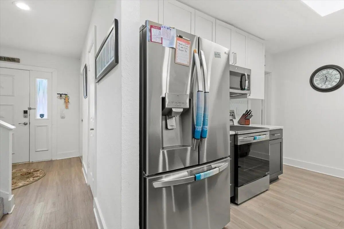 Lake View.. Light bright and airy 3BR/2.5BA townhouse in the all-age charming Palm City community of Lake Village. Step into high ceilings and laminate flooring throughout (carpet on stairs only). Updates include roof (2022), shutters and lanai impact windows (2020), new gutters (2024), interior whole house paint (2024), re-done pavers (2025), AC approx. 5-6 yrs, and brand-new appliances Jan 2025 (fridge, range, washer, dryer). Private covered patio with a peaceful lake view. One car garage. Short walk to the community pool and clubhouse; also a dog park and tennis. A short bike ride or walk to Bessey Creek Elementary (zoned for A-rated schools), Cummings Library, I-95 & Turnpike.. close to shopping, and restaurants and more.. a perfect mix of style, comfort, and location!