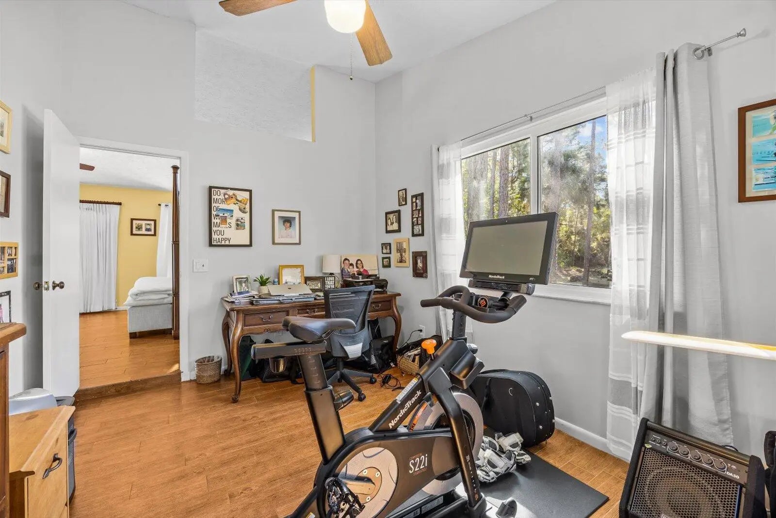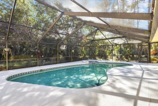 Tucked inside the gated enclave of Crane Creek within Martin Downs Country Club, this spacious home is surrounded by a tranquil, park-like landscape with mature trees and a lush wooded backdrop designed for ultimate peace and privacy. Outdoor living is exceptional, featuring a screened saltwater pool with solar heating, newer gutters, and a charming firepit area. Inside, tongue-and-groove ceilings add warmth and architectural character throughout the main living areas, complemented by a cozy wood-burning fireplace. The spacious 14 X 10 primary suite is complete with a sitting area and an attached flex space ideal for a private office, nursery, or exercise room. The kitchen is classically appointed with granite countertops, maple cabinetry, and a convenient butler pantry. All windows and doors are impact except for three which have panels. Residents may enjoy optional membership at The Village Club & Preserve, offering access to resort-style pools, tennis and pickleball courts, basketball, a fitness trail, and dog park. Golf enthusiasts will enjoy also optional in the gates of The West Villages and Crane Creek: Banyan Creek Golf Club (private) and Martin Downs Golf Club (public