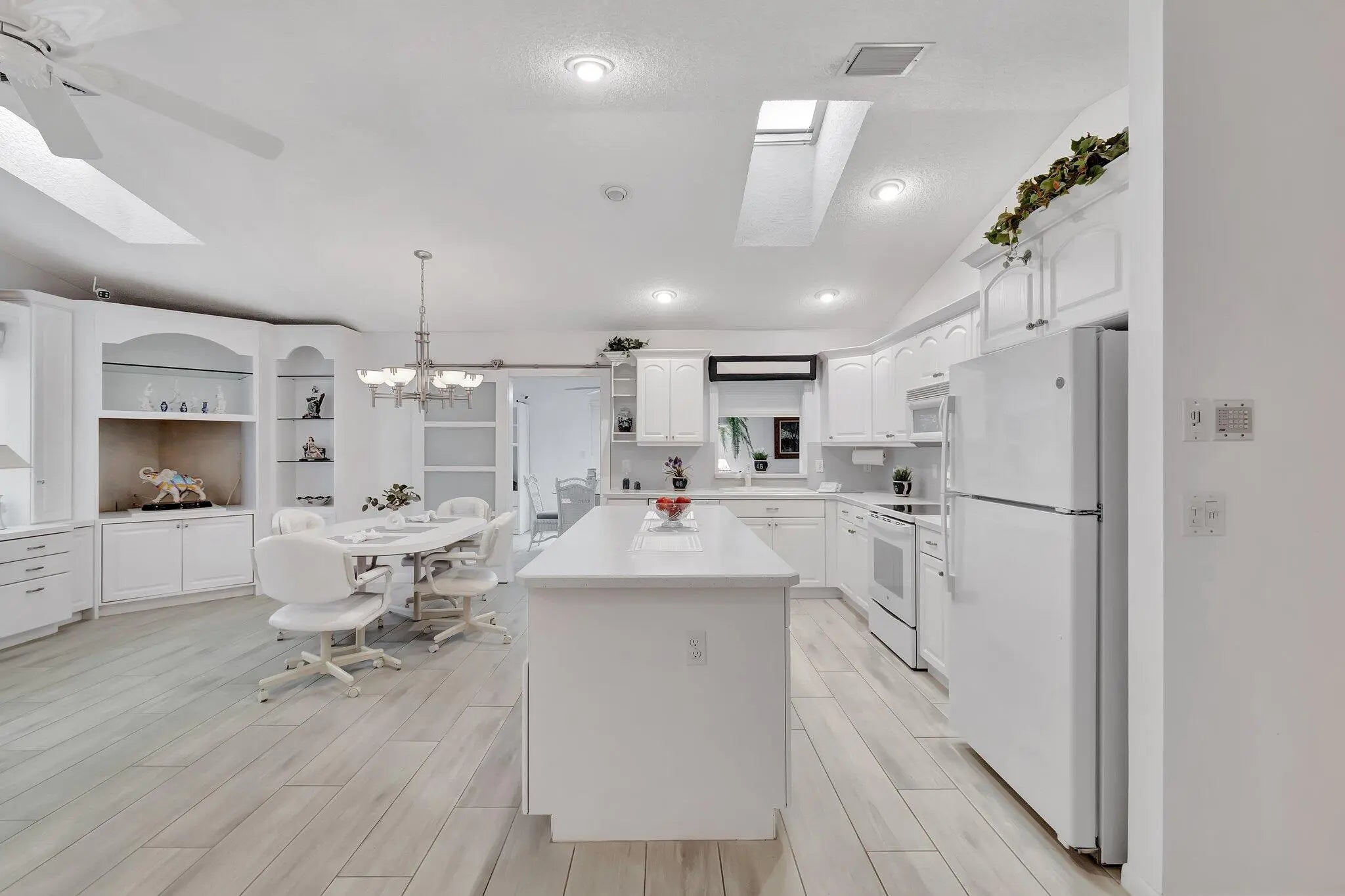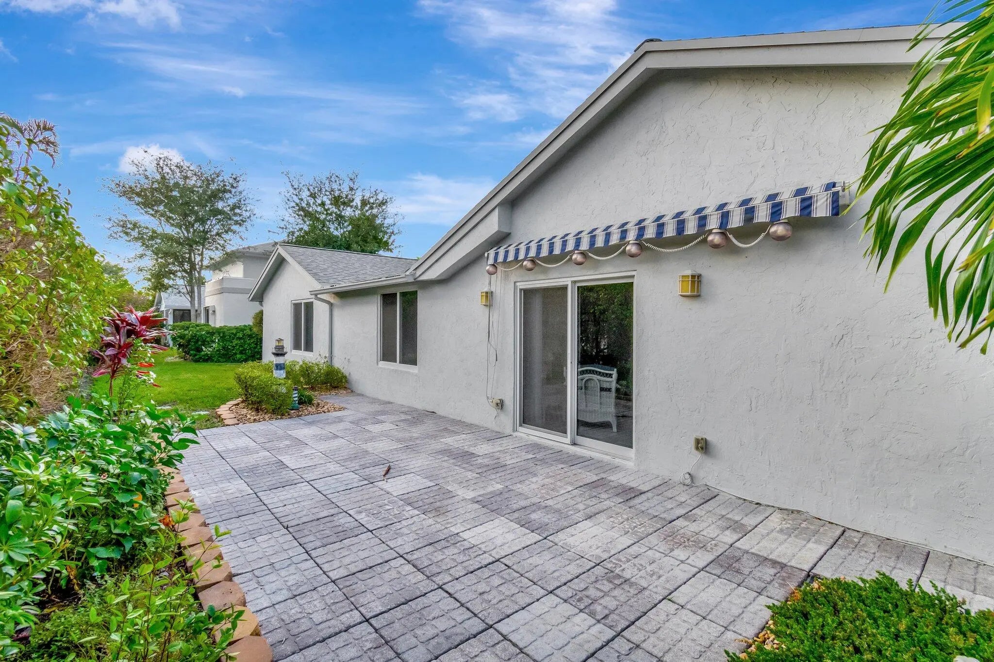 BACK ON MARKET, NEWLY PRICED, 2189 SQ. FT. IMPACT WINDOWS, UNIQUE FLEXIBLE FLOORPLAN OFFERS COMFORT AND CONVENIENCE. OPEN KITCHEN WITH ISLAND AND FAMILY ROOM AREA FOR ENTERTAINING, OPENS TO FLORIDA ROOM WITH PRIVATE BATHROOM TO CREATE 3RD BEDROOM. KITCHEN AND FLORIDA ROOM WITH LUXURY PLANK FLOORING. KITCHEN WITH AMPLE CABINETS, PANTRY, DESK AREA, LIGHT AND BRIGHT. LAUNDRY ROOM, CABINETS, 2 AC AREAS, GARAGE WITH AMPLE STORAGE CLOSETS. ENJOY PRIVATE OPEN PATIO WITH AWNING SURROUNDED BY PROFESSIONAL LANDSCAPING. RAINBERRY BAY ACTIVE ADULT COMMUNITY OFFERS 5 POOLS, CLUBHOUSE WITH GYM, CARD ROOMS, ARTS, ACTIVE TENNIS, PICKLEBALL, BOCCE, THEATER WITH ENTERTAINMENT, LAKE WITH WALKING PATH, PET FRIENLY.