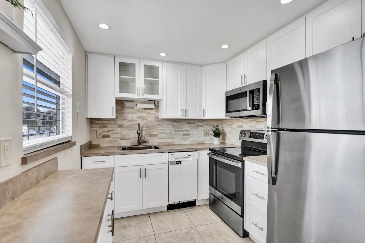 Welcome to this bright and well-maintained 2-bedroom, 2-bathroom second-floor end-unit condo located in the Monaco K subdivision of Kings Point in Delray Beach. This inviting unit features laminate wood flooring throughout, an updated kitchen with shaker-style cabinets, and nicely remodeled bathrooms. Additional improvements include a new electrical panel and new FPL disconnect, offering added peace of mind. The roof was replaced in 2025. Monthly maintenance is $816 and includes cable. A one-time $2,000 capital contribution is due at application submission. Rentals are permitted after 2 years of ownership. Pets are not permitted. The Monaco Clubhouse is just a short walk away! Residents of Kings Point enjoy an active 55+ lifestyle with exceptional amenities including three clubhouse multiple swimming pools, a natatorium, fitness center, theater, golf courses, tennis, pickleball, shuffleboard, bocce ball, racquetball, basketball, restaurants, salon, and a wide variety of clubs and activities. INFORMATION HEREIN NOT GUARANTEED AND SUBJECT TO ERRORS & OMISSIONS. ALL MEASUREMENTS APPROXIMATE.