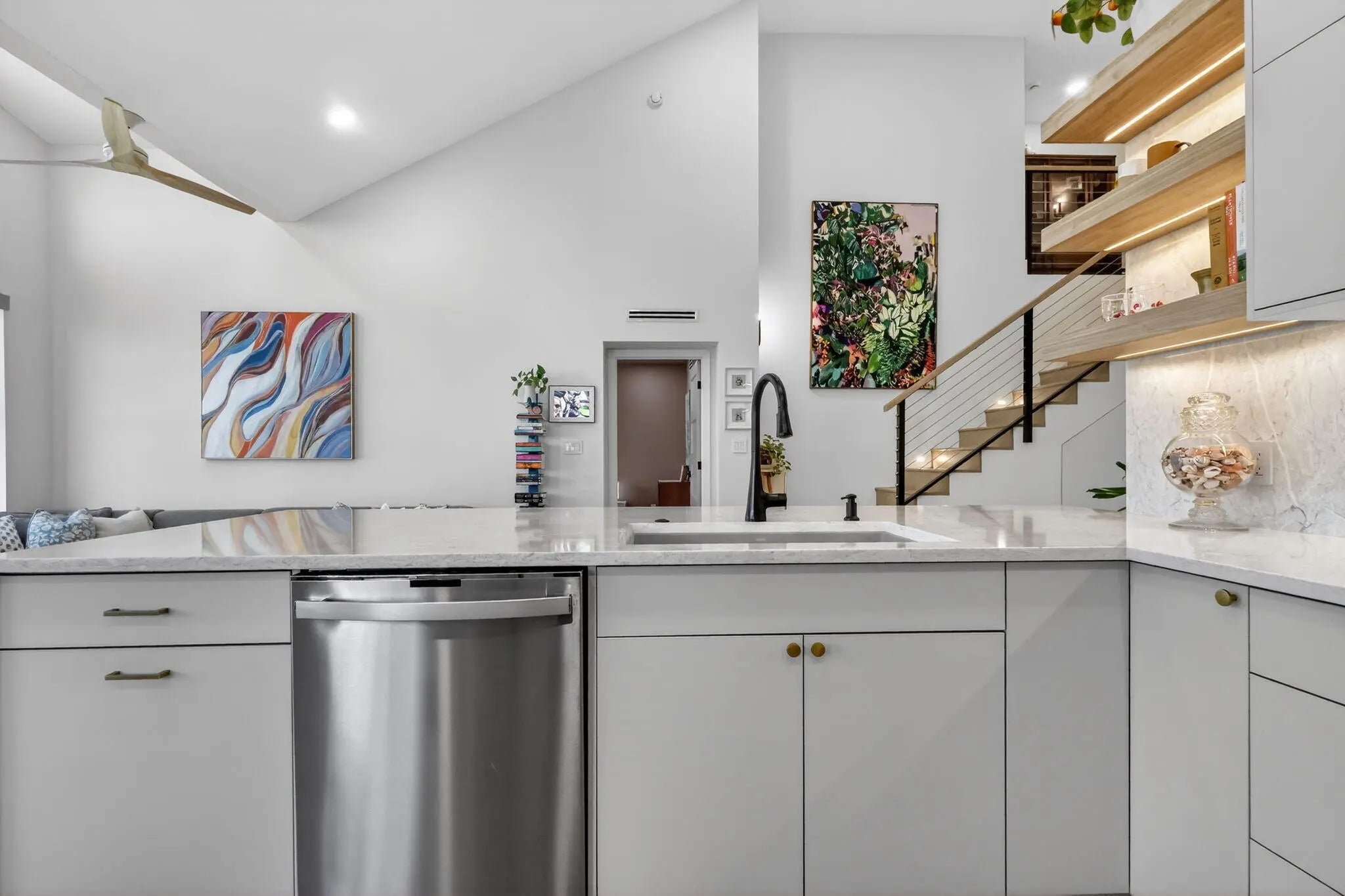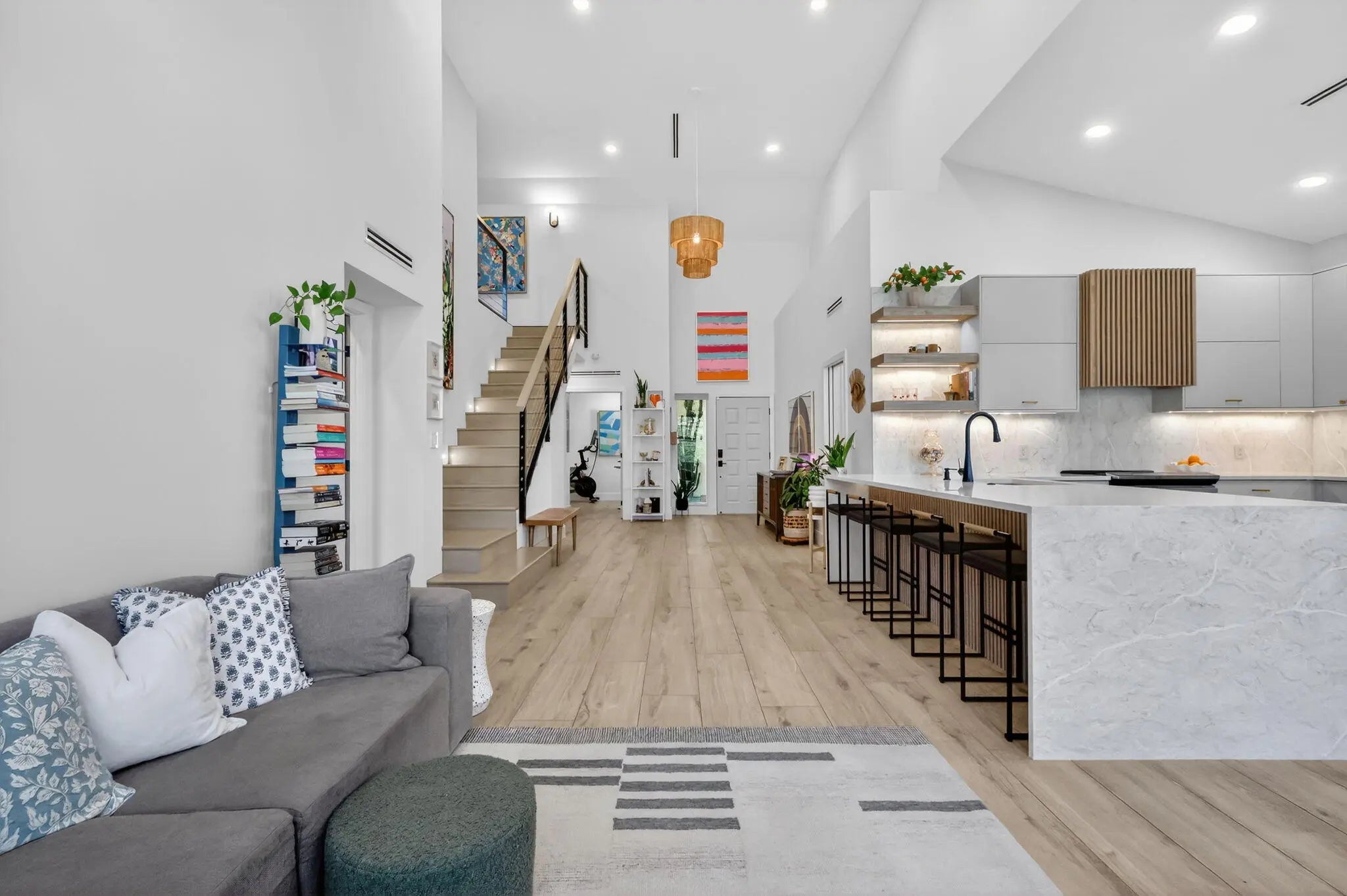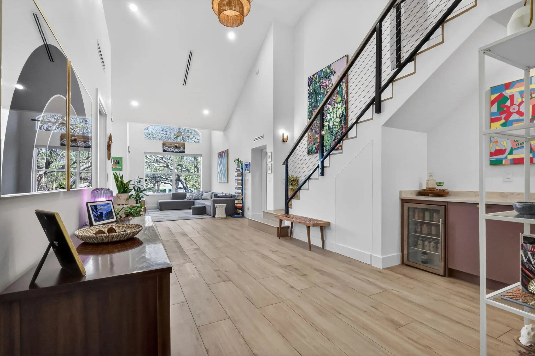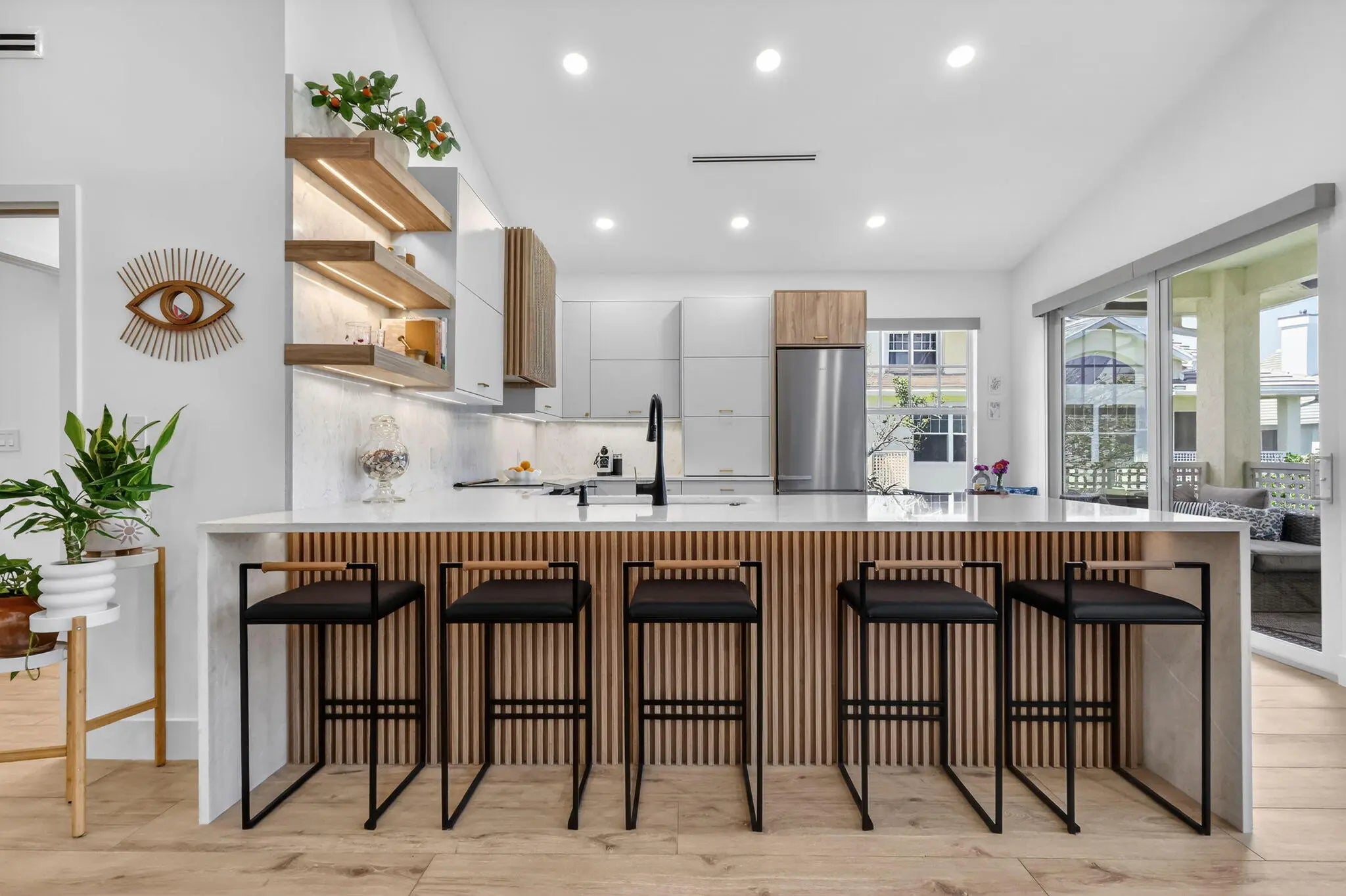 Completely updated and customized unit in Sea Colony. All renovations completed in 2024. 4 bedroom, 3 full bath. New plumbing throughout. New electrical throughout, replaced panel and added surge protector, ran new wiring throughout, recessed lighting in all rooms, all Lutron switches and outlets. Master bath with spacious 5 x 7 shower including 2 separate shower heads, rain head, and handheld. Toto bidet toilet, custom floating double vanity, custom built in linen cabinet. Fully renovated guest bathrooms with Kohler fictures. Custom wood staircase with custom steel railing and tension cables Custom dinette bench in kitchen with storage. Custom fluted vent hood. Custom Fluted island backsplash. Long wood plank flooring and Italian ceramic tile. Custom kitchen with European style cabinets Full renovation completed early 2024. Improvements/renovations included below: Custom kitchen with European style cabinets, quart countertops with waterfall edge and integrated backsplash Custom wet bar under stairs All new appliances: Miele fridge, GE profile dishwasher and induction stove, GE microwave, GE washer and dryer Enclosed loft Schlage keypad and door hardware New garage door seal and My Q opener New 50 gallon water heater with Watts hot water recirculating system - 2024 Overlooking pool and partial lake view New roof 2025 Impact Windows and slider 2016 HVAC 2016 - serviced twice yearly (last service 02/2026) - Resealed duct with 2024 Benjamin Moore Paint Custom Closet Built-ins All work was permitted and inspected. Permits: Jupiter Building Dept Windows (2016) : 16-002235-BLDR A/C (2016) : 16-009472-AC Electrical Sub (2023) : 23-073778-ELEC-R Roof (2024) : 24-077818-ROOF-C Interior (2024) : 23-072303-COMM Plumbing Sub : (2023) 23-073753-PLUMC Electric rewire (2024) : 23-073816-ELEC-C Plumbing re-route (2025) : 25-085159-PLUMC Garage (2018) : 17-010750-BLDR