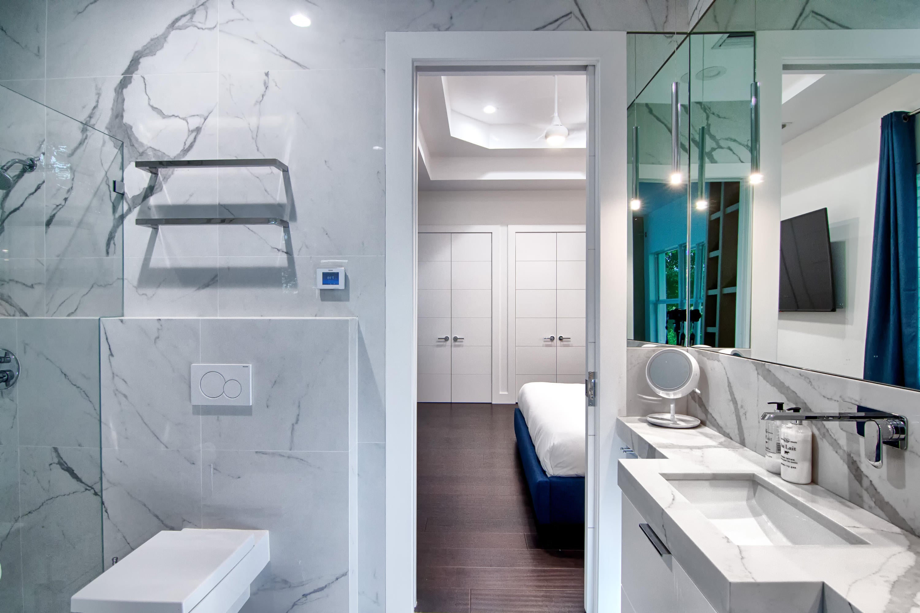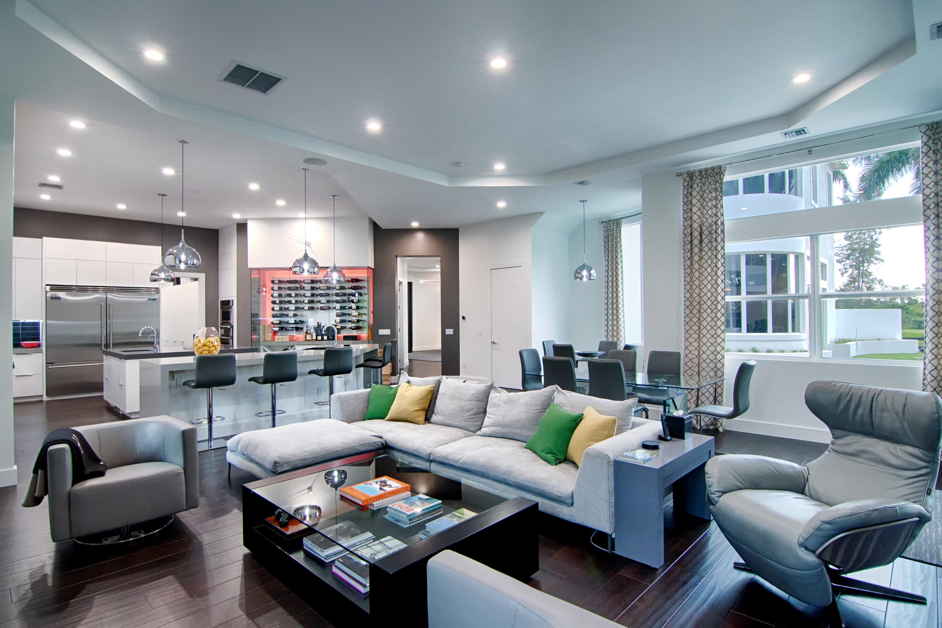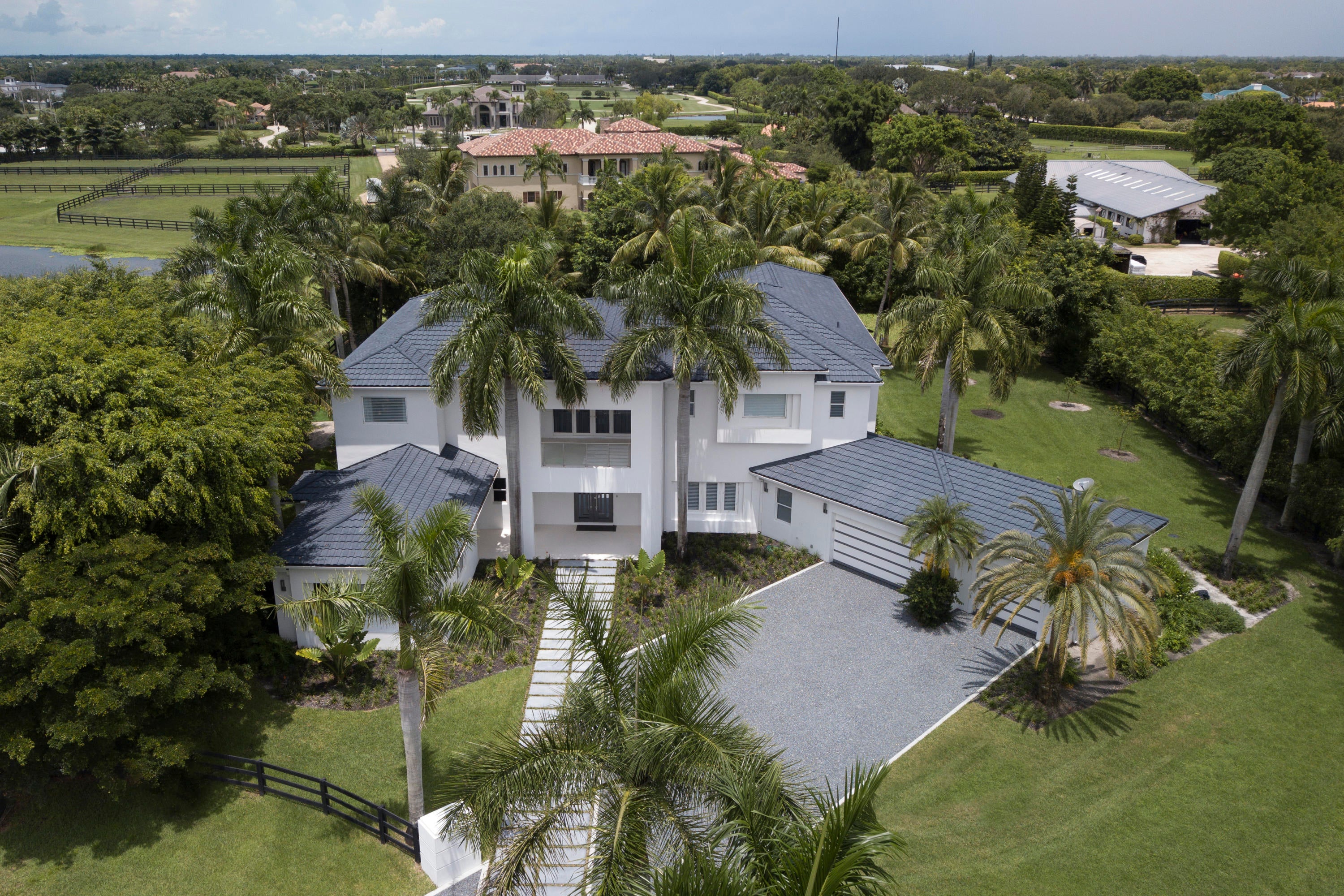 AVAILABLE FURNISHED AND TURNKEY! This incredible contemporary estate sits on a 1.4 acre lot situated in a private cul-de-sac. Located in the center of all of Wellington's equestrian activities in the prestigious community of Southfields. Fantastic views in every direction and total privacy. There is room for a tennis court or small barn. If you want a grand barn, riding ring and separate grooms quarters, the adjacent 2.7 acre lot is available for a total of 4.14 acres. Please see separate listing for details. For an additional fee, home can be sold fully furnished; inquire for more information.This incredible contemporary estate sits on a 1.4 acre lot situated in a private cul-de-sac. Located in the center of all of Wellington's equestrian activities in the prestigious community of Southfields. Fantastic views in every direction and total privacy. There is room for a tennis court or small barn. If you want a grand barn, riding ring and separate grooms quarters the adjacent 2.7 acre lot is also available for a total of 4.14 acres. Please see separate listing for details. For an additional fee, the home can be purchased fully furnished, inquire for more information. This residence has lavish details and is undoubtedly the finest contemporary residence in Wellington. Exceeds Palm Beach standards in every way. All doors have European style concealed hinges. All water closets are wall mounted. All lighting is LED. Not just functional, but artistic. The home is a very smart home, with lighting and sound features controlled with your phone. The sound system includes inside and outside speakers, with full surround sound in several areas. Custom made 10 feet tall steel entry doors invite you into a grand entrance gallery with dual staircases and floor to ceiling views of the stunning pool area that will have guests lounging outdoors until long after the sun sets. The resort like pool area contains a bath with a sauna and steam shower. The surrounding outdoor kitchen is in a covered area with seating for 15. Or seek refuge in front of the fireplace in the tiki hut and watch a movie. Climb a 15 foot high rock formation and enter the water slide that shoots you into the pool. Then swim into the hidden grotto or over to the in-water bar stools and be served a refreshing drink from the sunken bar. The residence boasts 10,500 total square feet, with five bedrooms, five full bathrooms and 2 half bathrooms. There are two large home offices with custom built-in bookcases. One office has a full bath and can be repurposed as the 6th bedroom. The other office contains a half bath. As you walk from room to room you will say wow. The master bedroom suite consists of an extremely large bedroom, an attached workout or massage room, a morning kitchen with two refrigerator drawers and a built in concealed microwave and sink, two walk in closets, and a glamorous large master bath with Jacuzzi tub, dual vanities, large frameless glass walk in shower, heated flooring, and an infrared sauna. The large private outdoor balcony, wrapped in a stainless steel railing, is partially covered and partially open with an outdoor shower. There are 4 additional bedrooms with ensuite bathrooms. Two of those bedrooms form a separate suite with a kitchen and it's own separate outside entrance door. The huge kitchen family room area has dinner seating for fifteen. The spectacular kitchens contains a glass walled, humidity and temperature controlled wine room. There are two large Viking refrigerators, a large Viking range, a Thermador oven, microwave and warming drawer, two Sub Zero refrigerator drawers, and 4 Fisher Paykel dishwasher drawers. The large game room has a wet bar with glass illuminated shelves. Double doors lead out to the pool area. Naturally, the theatre portion has a starlight ceiling. There are laundry rooms on both levels. Shown by appointment to qualified buyers.