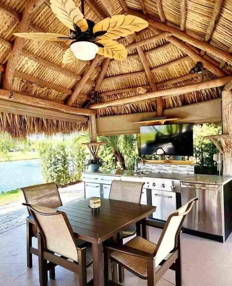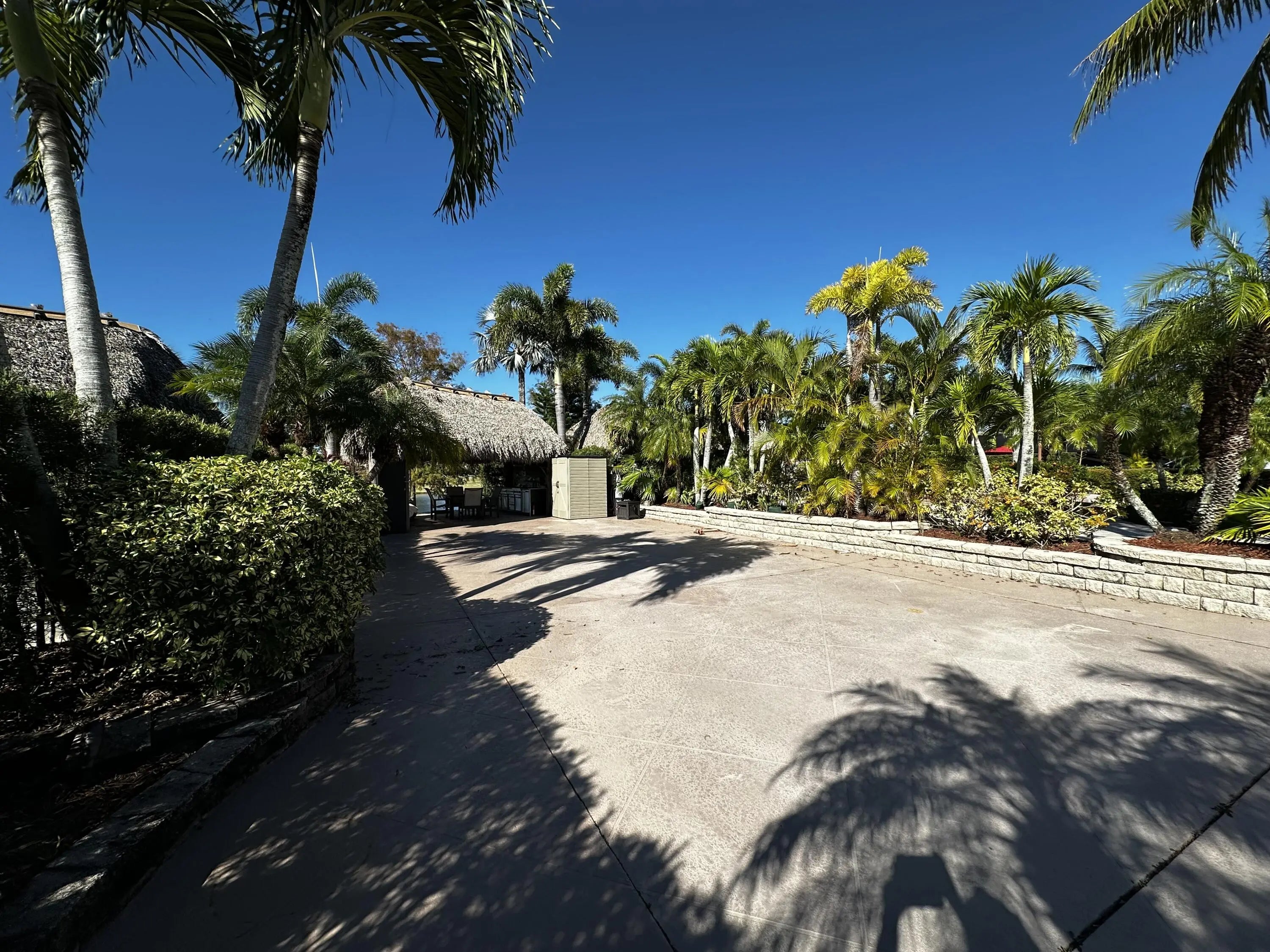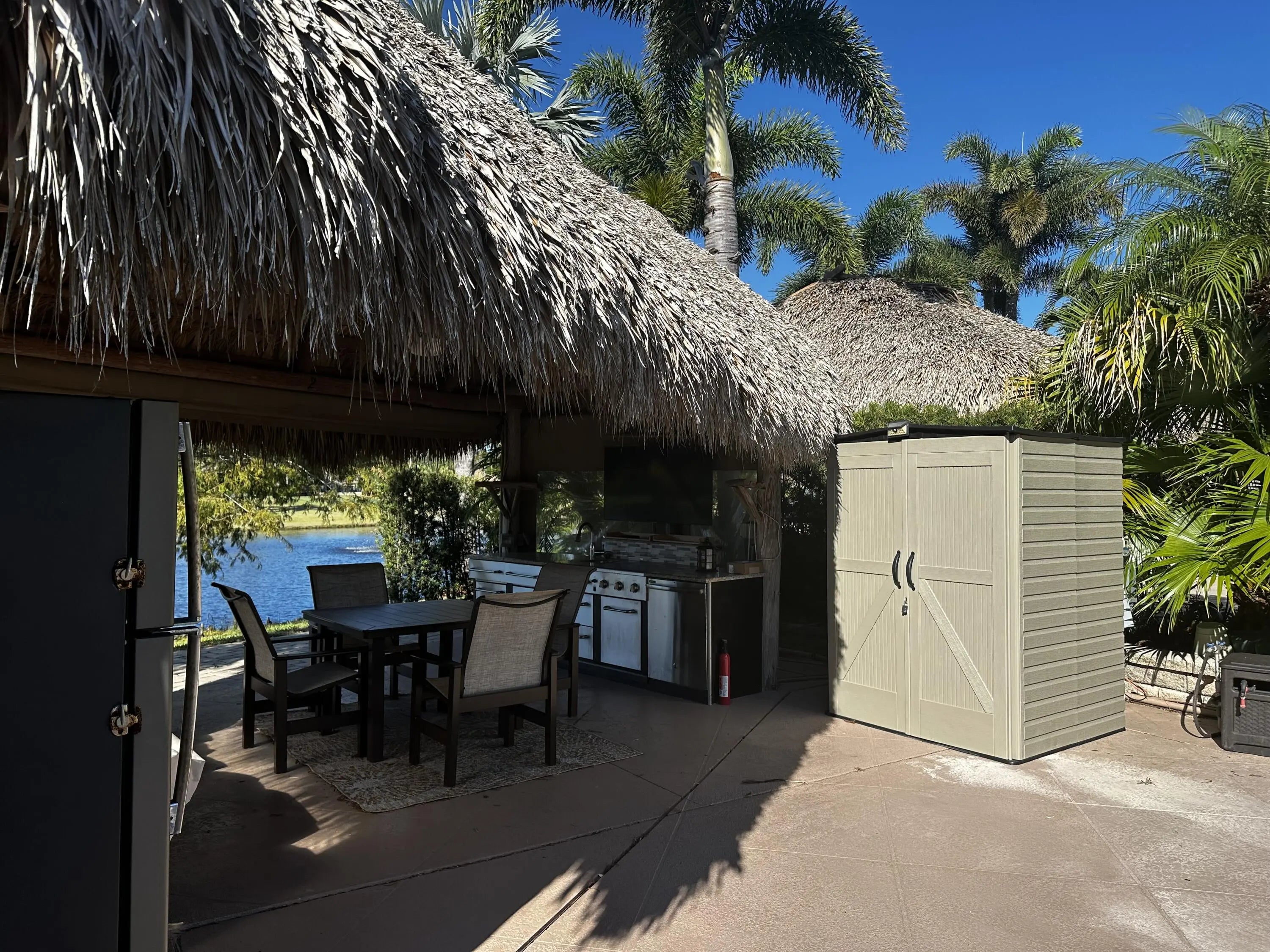 Paradise defined at the Motorcoach Resort at St. Lucie West! If beautiful sunsets over a lake and the tranquility of water fountains are your idea of paradise - look no further! Great back-in lot located close to the main entrance and the clubhouse. Large tiki with well equipped kitchen including a dishwasher and full size refrigerator. Motorized eisenglass shades deploy at the push of a button to allow for outdoor enjoyment in case of inclement weather or chilly night. Nice landscaping and mature trees add privacy and shade. Easily accommodates a 45' coach! Also a designated spot for your golf cart. 18 hole golf course, pool, gym, pickleball, dog parks are only a few of the amenities that accent a full social calendar during season! Class A coaches only for this gated community.