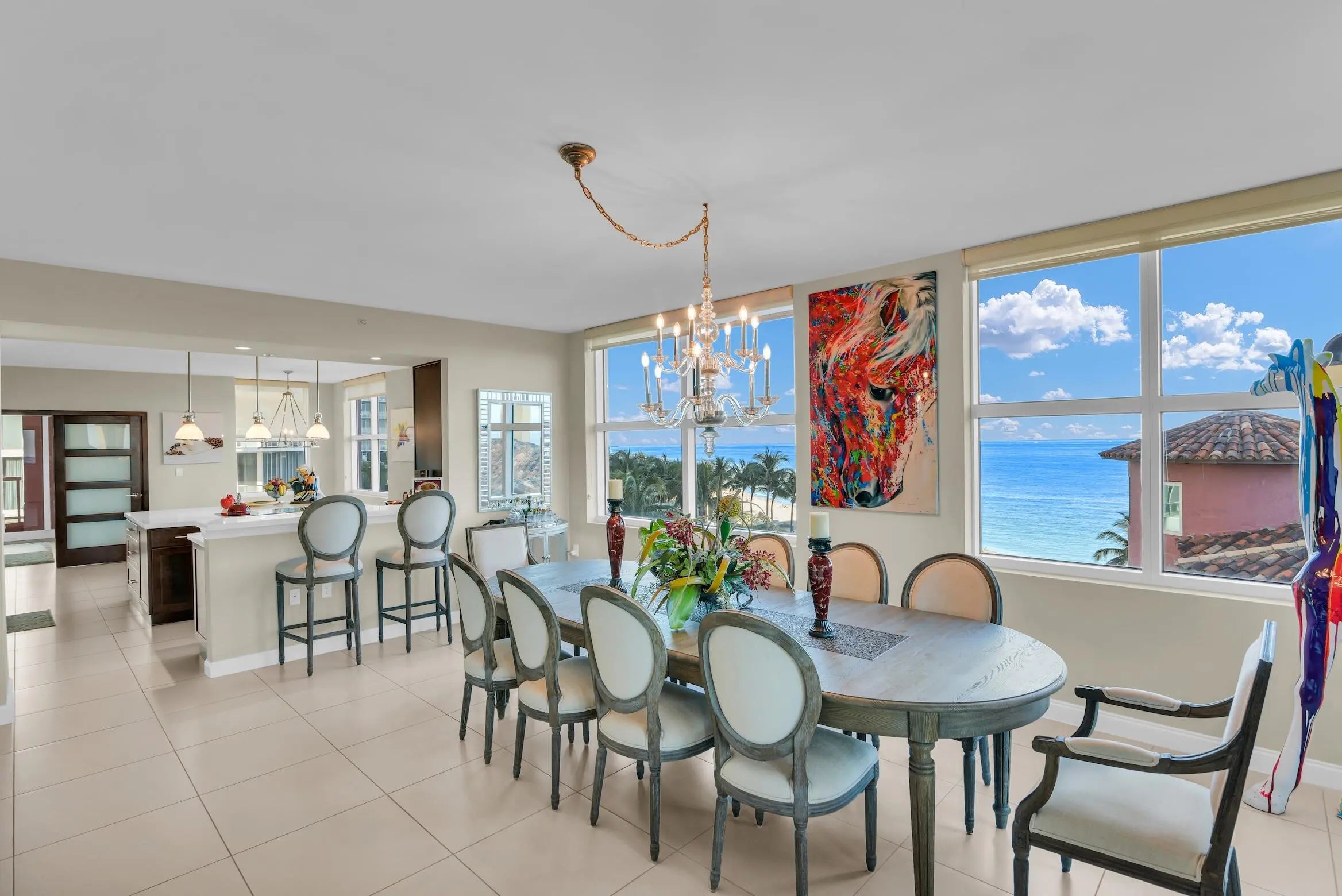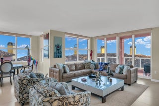 FAMILY ROOM, LIVING ROOM, AND KITCHEN FURNITURE INCLUDED!!! Welcome to this meticulously designed, move-in ready oceanfront condo, where luxury meets breathtaking views! This spacious 3 bed, 3.5 bath plus den/4th bedroom residence offers the perfect blend of modern elegance and coastal living. Each of the three bedroom suites are generously sized. The primary suite offers a large walk-in closet with built-in shelving. The en-suite bath features dual vanities, a soaking tub, and a separate glass-enclosed shower. This spacious Venice Floor Plan unit is completely updated. 2 assigned parking spaces.
