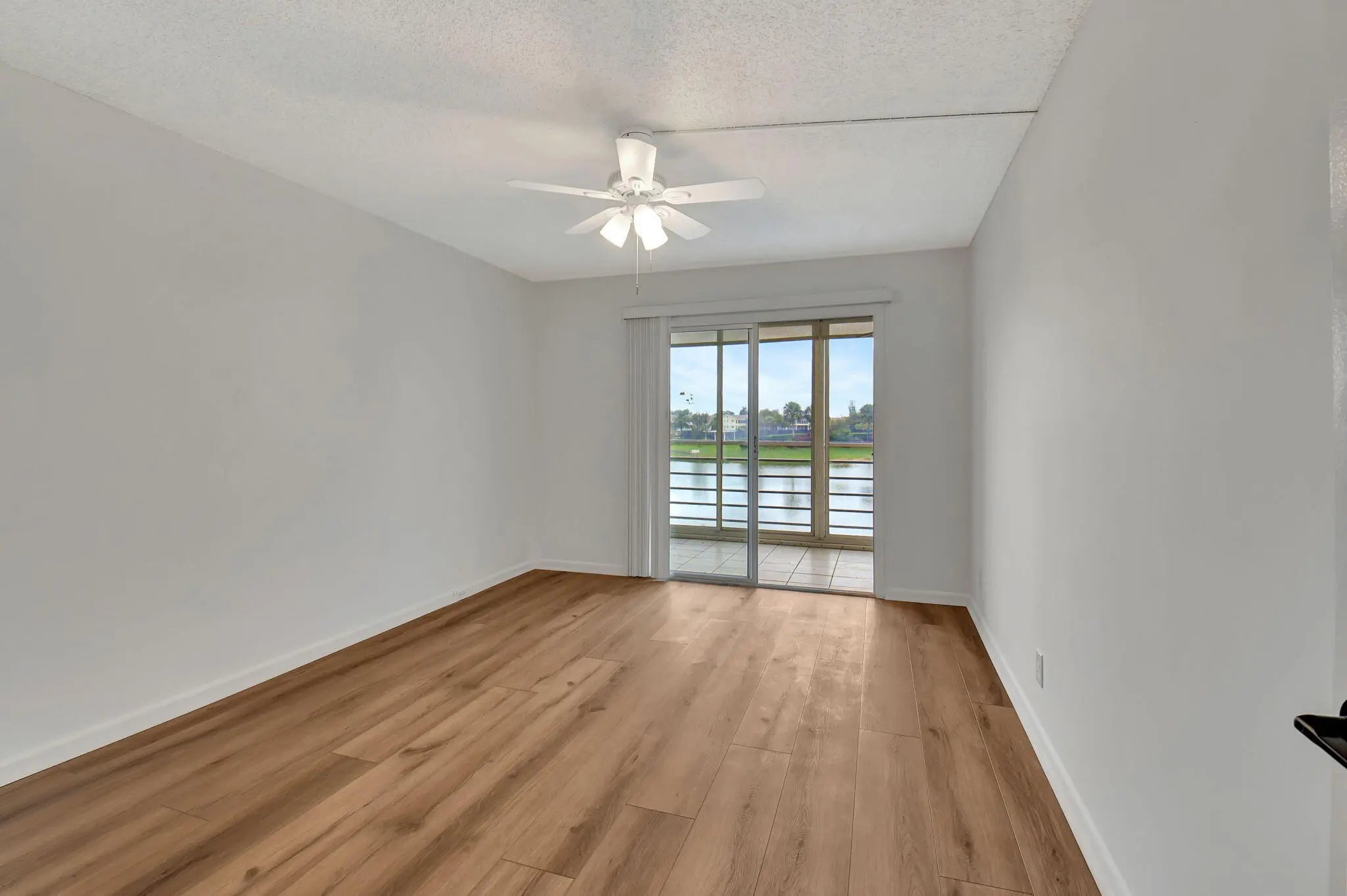 A MUST SEE!! New luxury vinal floors thruout. Gorgeous water view from glass enclosed patio with metal accordian shutters. Completely updated 2 bedroom 1-1/2 baths. Each bedroom has a sliding glass door to patio,. Walk in closet in master. Granite kitchen has newer appliances and upgraded cabinetry. All newly installed lovely luxury wood flooring throughout entire home and freshly painted. New window blinds have been installed. This building has a garbage shoot near elevator. Bring your fussiest buyers and sell!!!