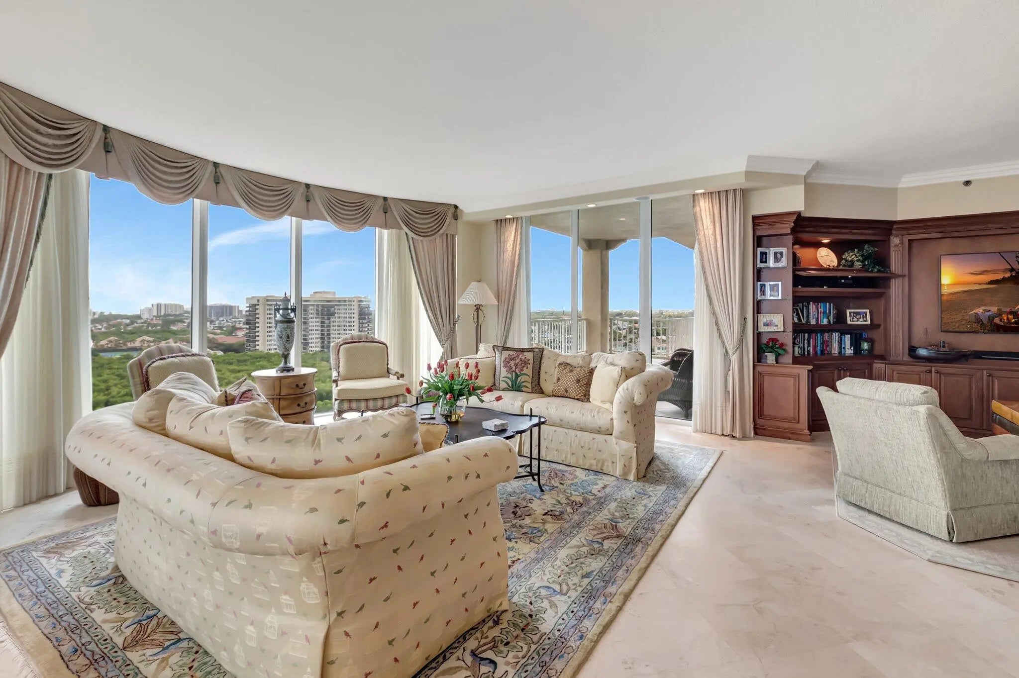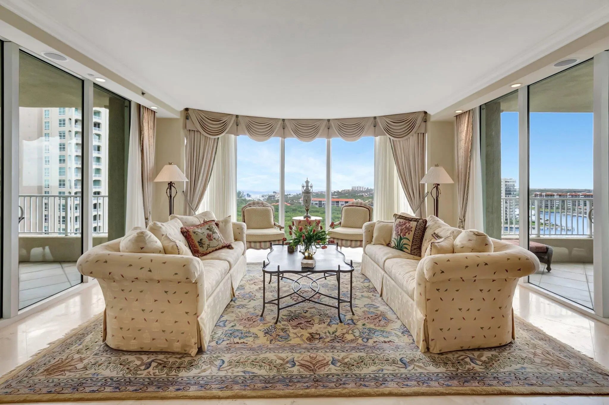 IMMACULATE CORNER APARTMENT WITH AMAZING PANORAMIC VIEWS OF OCEAN, INTRACOASTAL AND CITY.A TRUE THREE BEDROOM WITH THREE AND A HALF BATHS. DESIGNED AND FURNISHED BY P & H INTERIORS. SOME OWNER FINANCING IS AVAILABLE. BEING SOLD COMPLETELY FURNISHED READY TO MOVE IN. TWO GARAGE PARKING SPACES INCLUDED WHICH IS A REQUIREMENT AT TOSCANA IF YOU HAVE TWO CARS. NEW AC UNIT AND HOT WATER TANK.
