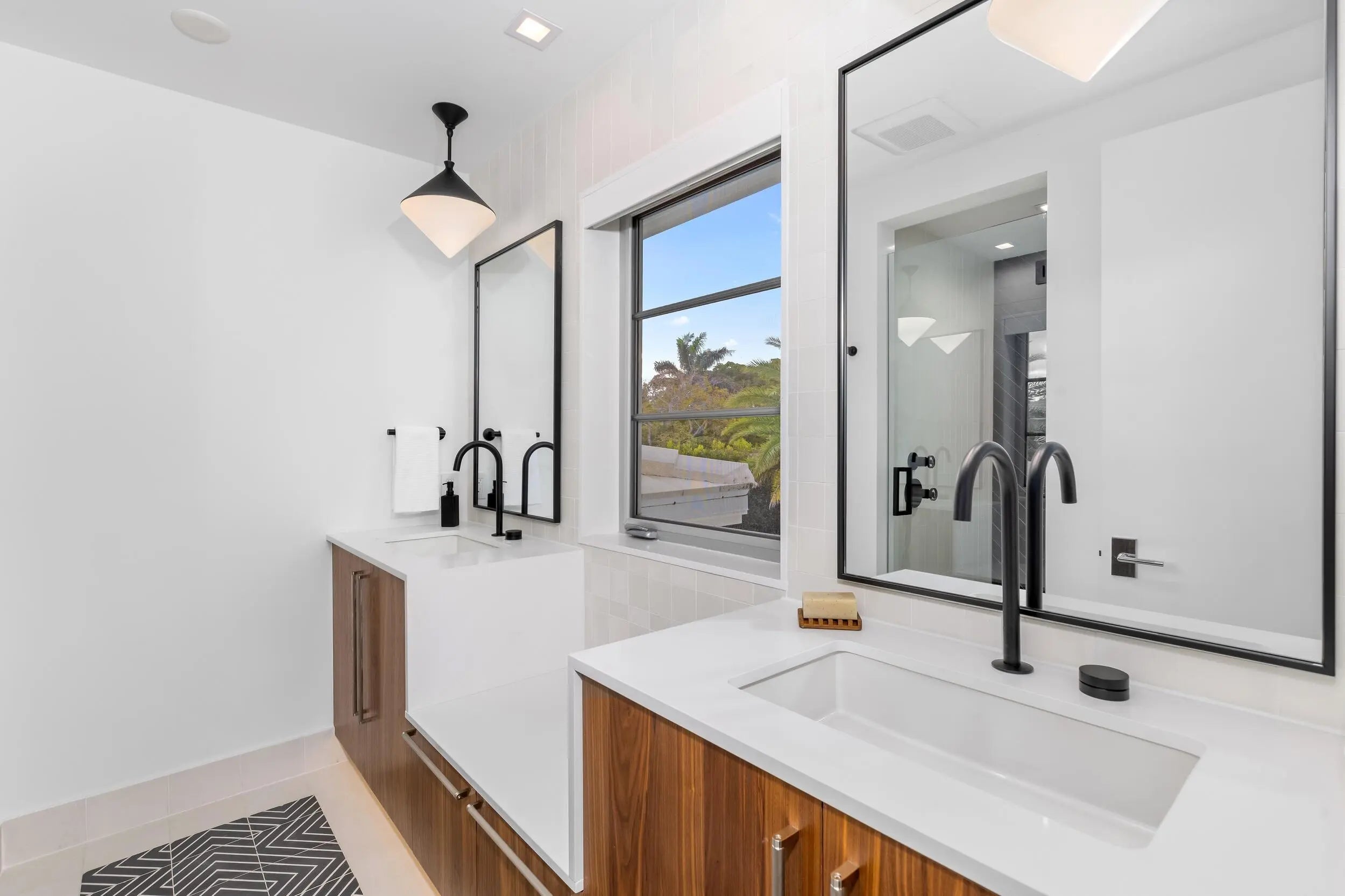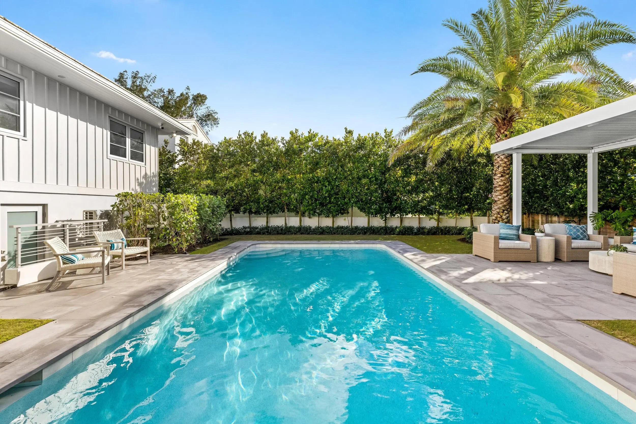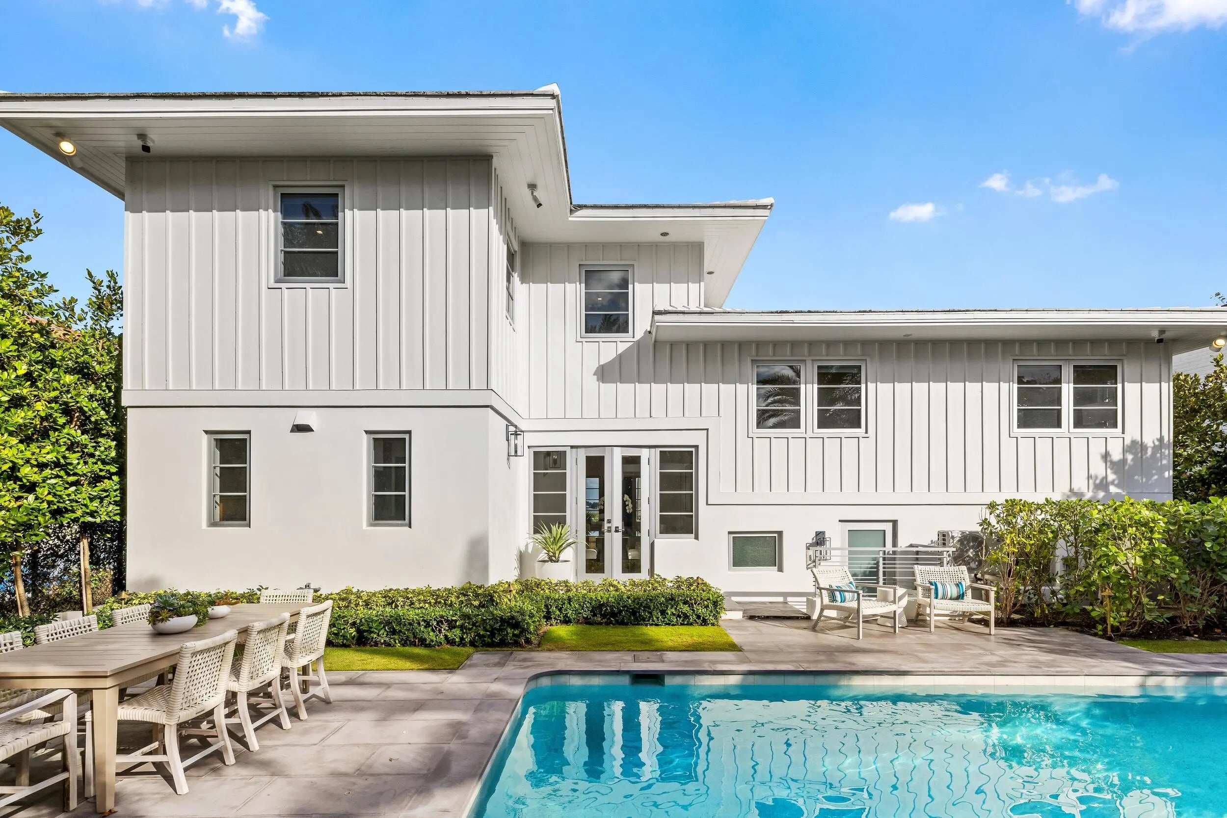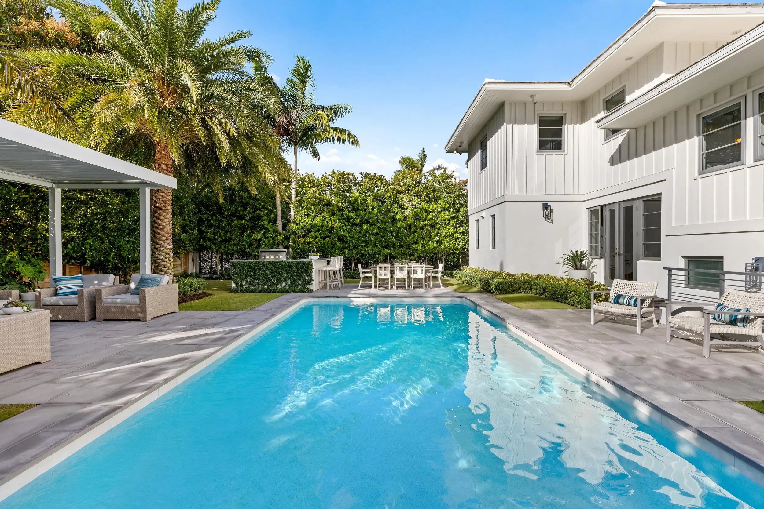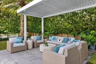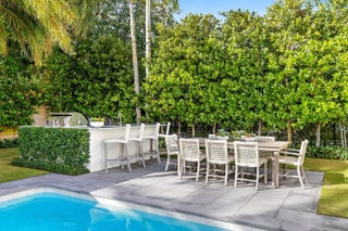 Waterfront 4BR/5.1BA Mid-Century home recently remodeled with beautiful finishes. Fantastic lakefront seating area. Light-filled living room with fireplace and views of the Intracoastal. Gorgeous kitchen with Thermador appliances, custom cabinetry, and oversized island with breakfast bar. Beautiful hardwood flooring and finishes throughout. Stunning resort-style backyard with built-in summer kitchen, covered lounge area, open dining patio, and large pool.