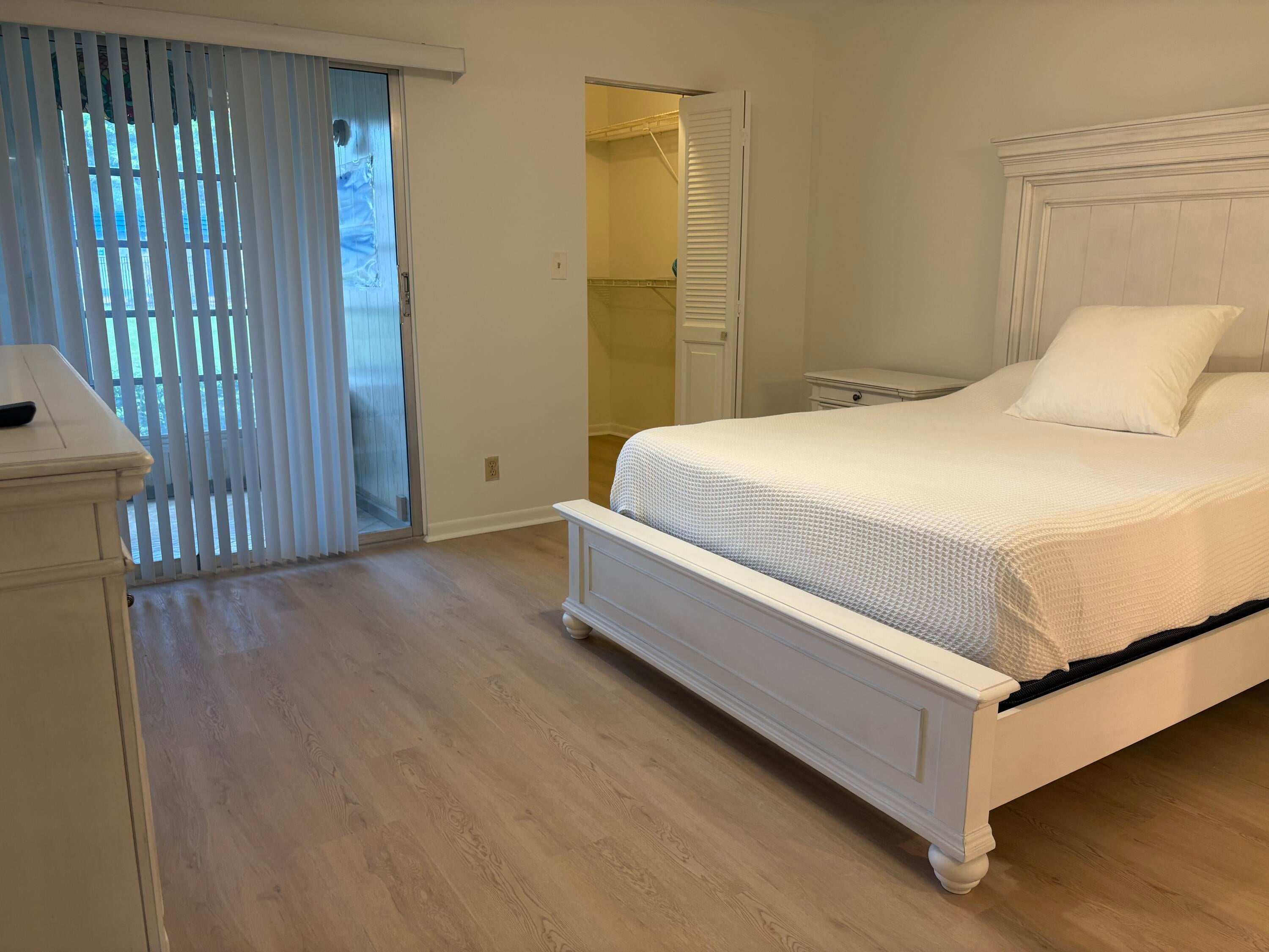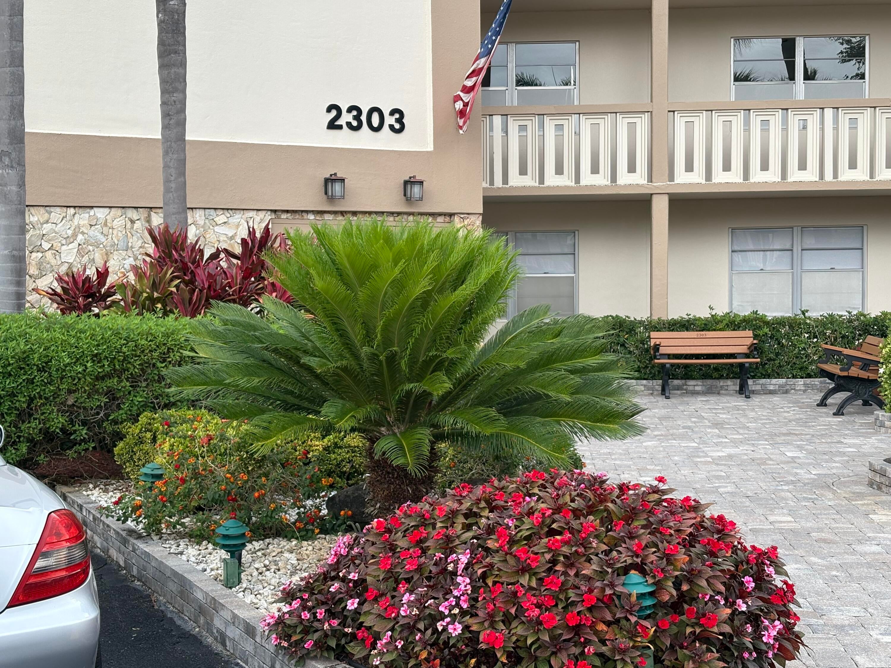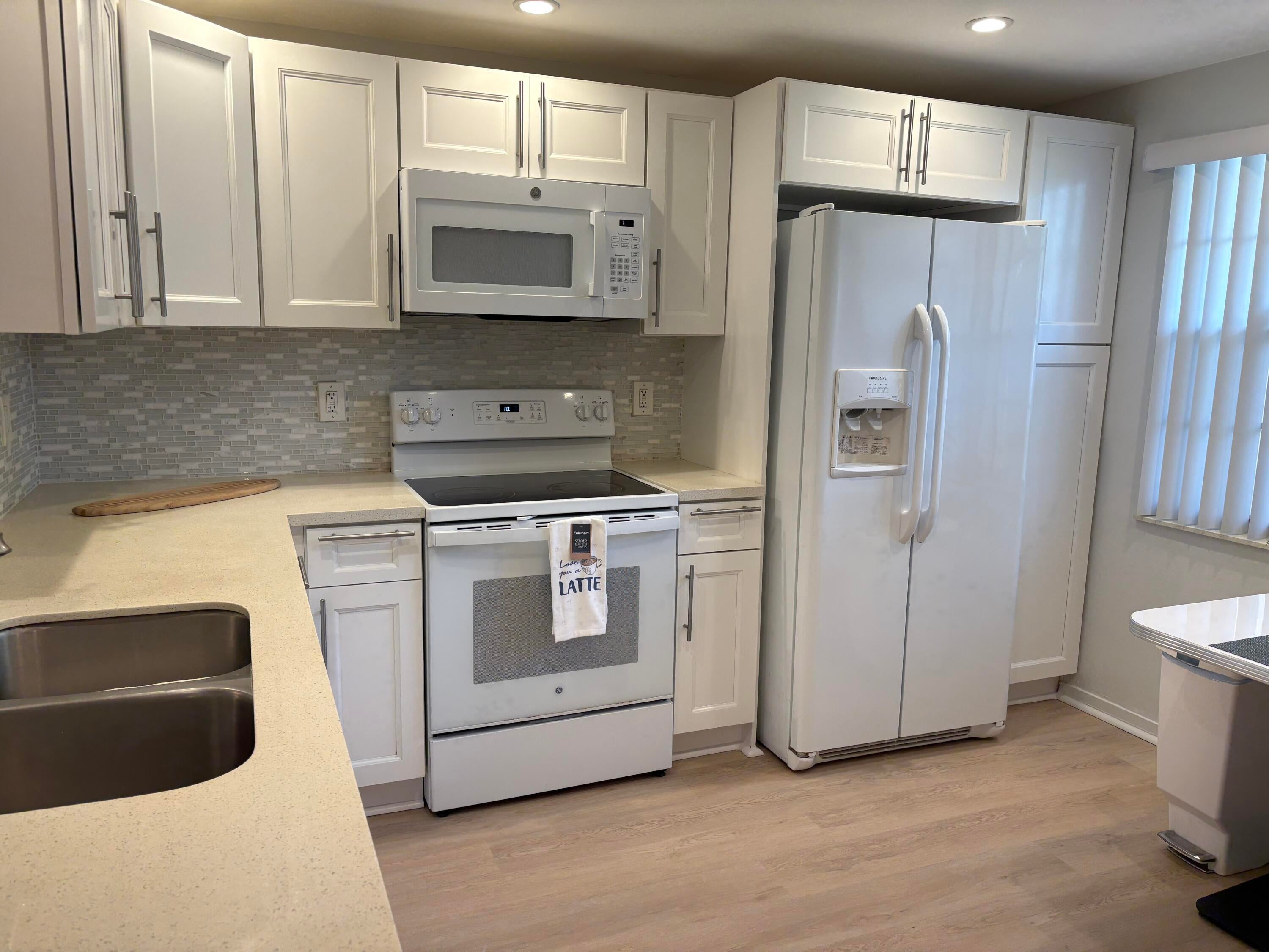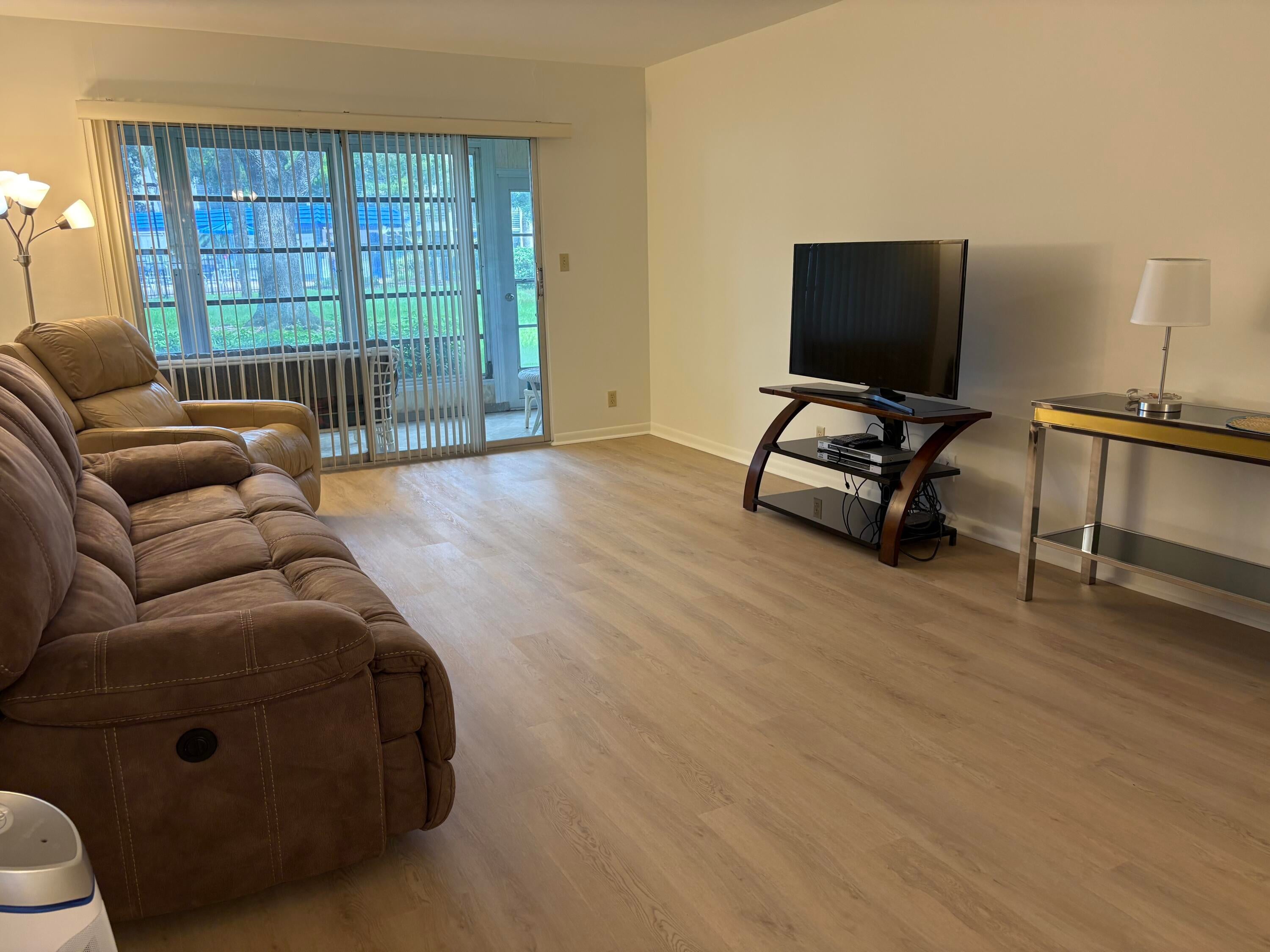 Sasional Rental Welcome home to this beautiful SUNNY 2 bed/2bath GROUND FLOOR condo, with parking spot nearby front door for easy access from shopping, etc. Steps bus and pool Just painted,new laminate like flooring throughout.Remodeled kitchen features a bar, custom built high-end white wood dovetailed cabinetry with soft-close doors and drawers, pull-outs, crystal clean engineered white quartz counter tops, Kohler high-line faucet, newer dishwasher and recessed lighting! Enjoy a custom made white and steel diner table, great for breakfast, coffee or dessert! The morning sun pours through front window with a palm tree view from the east facing kitchen, and long beautiful sunsets can be viewed on the back patio, which faces west, and you can walk direc