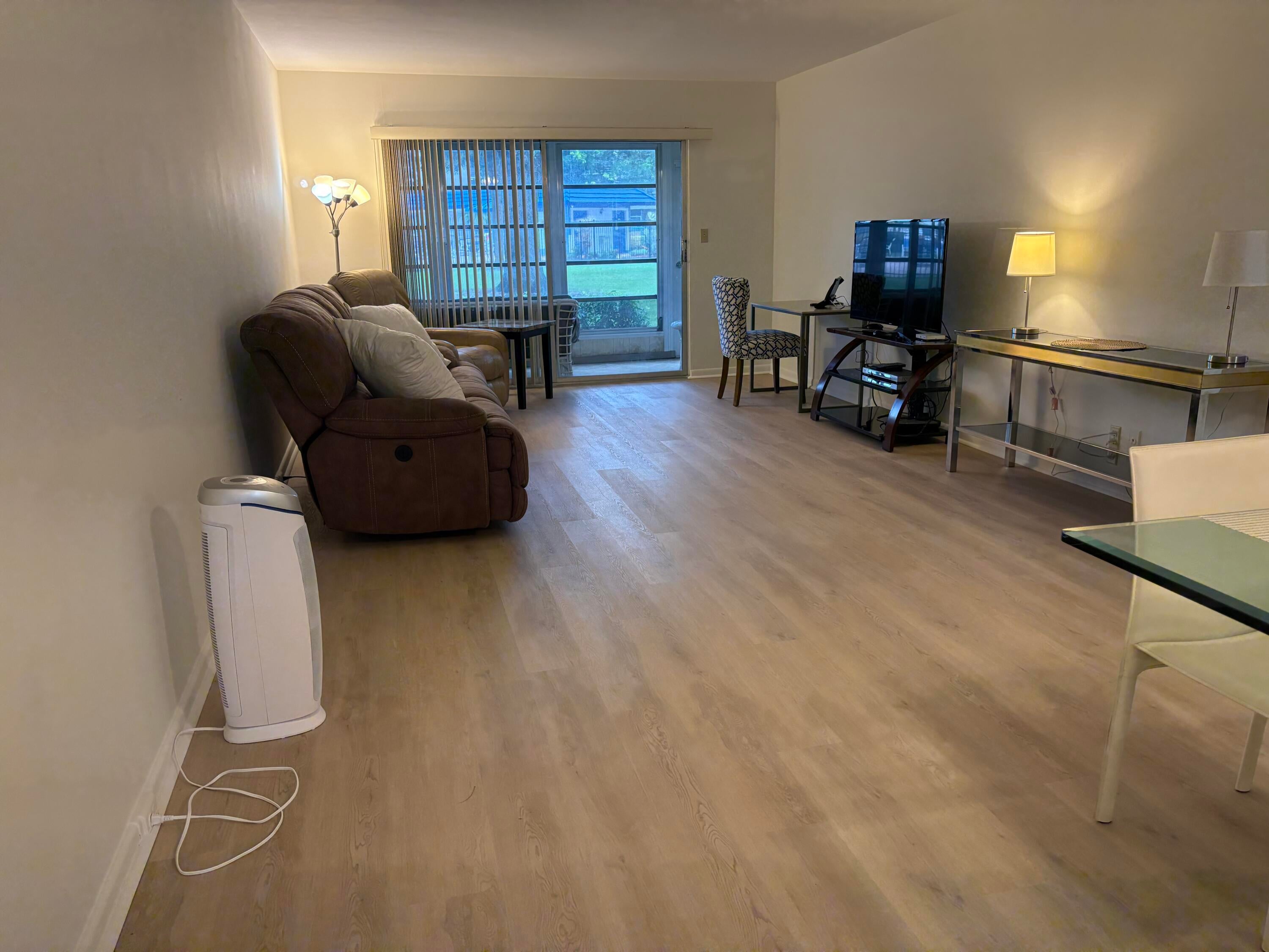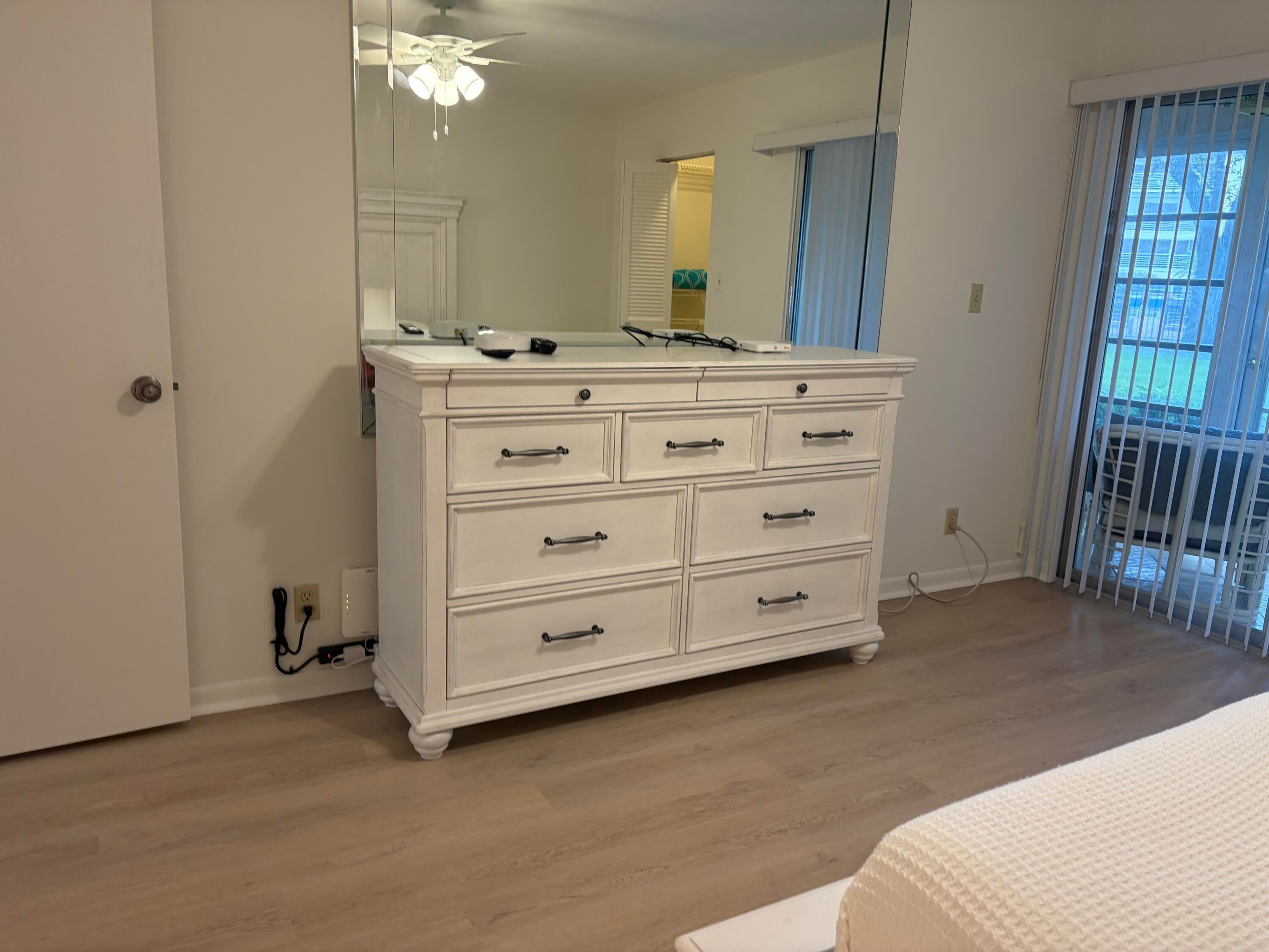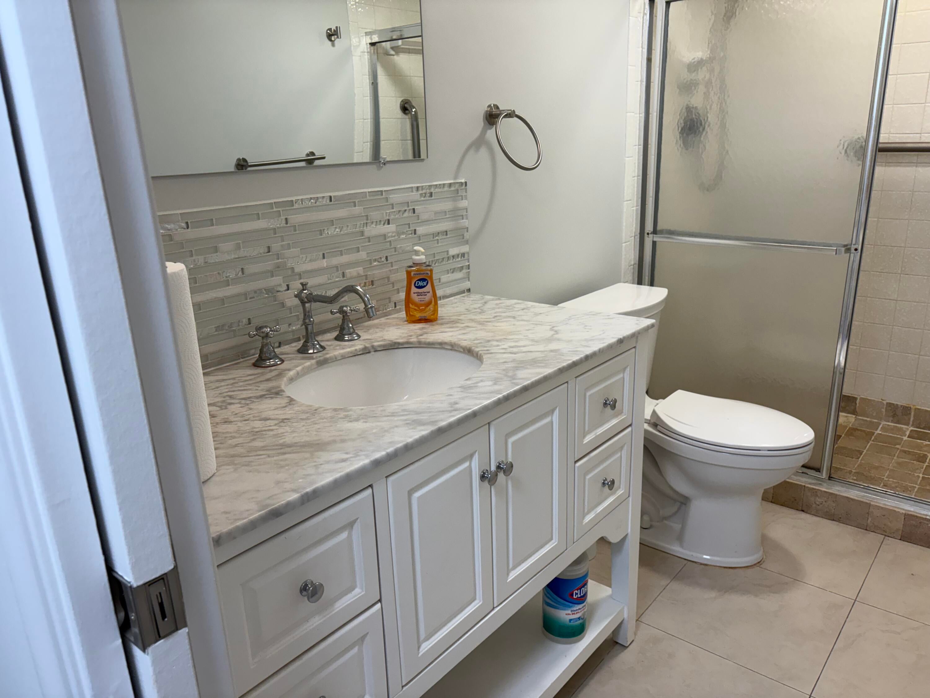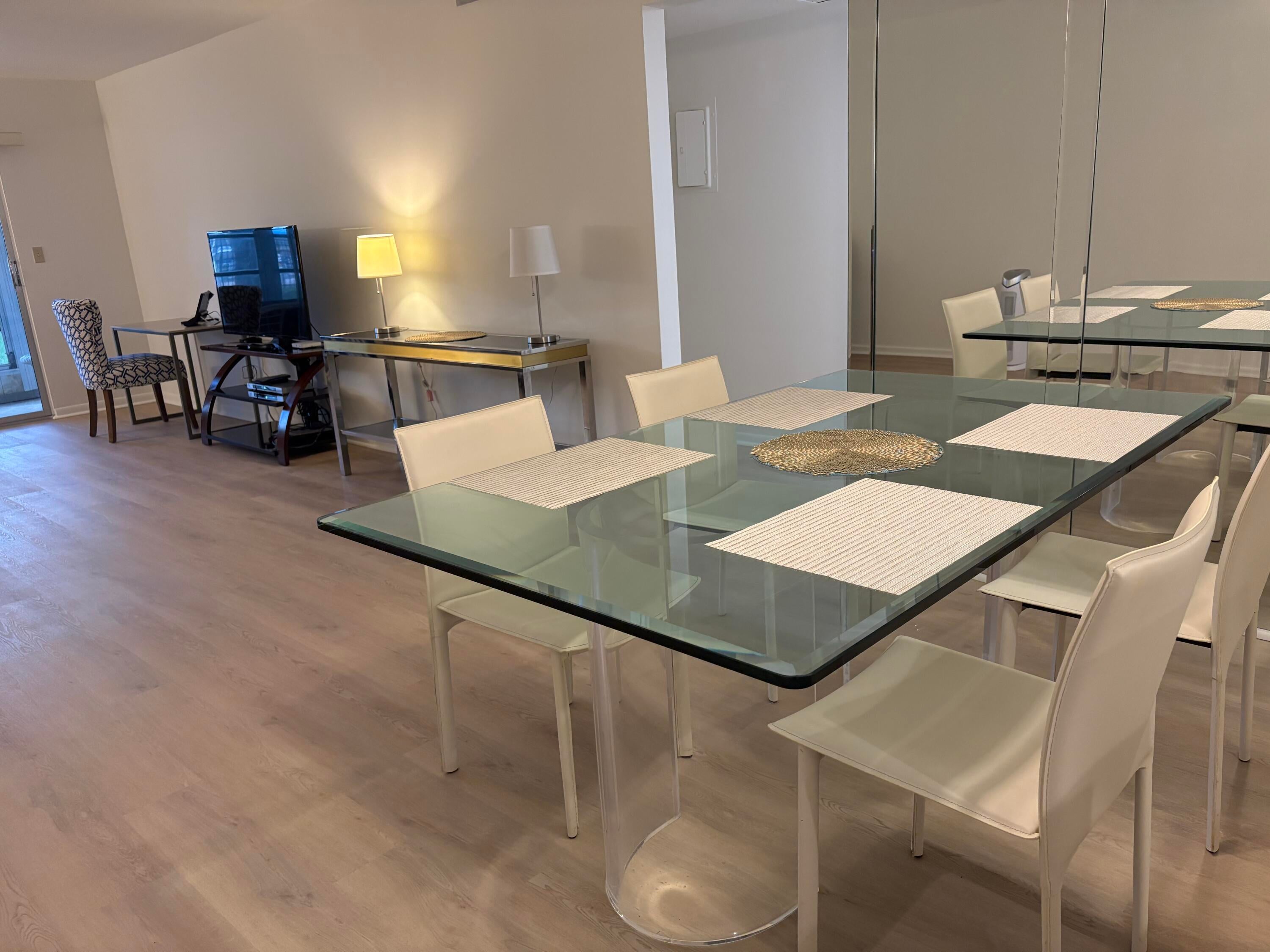 Sasional Rental Welcome home to this beautiful SUNNY 2 bed/2bath GROUND FLOOR condo, with parking spot nearby front door for easy access from shopping, etc. Steps bus and pool Just painted,new laminate like flooring throughout.Remodeled kitchen features a bar, custom built high-end white wood dovetailed cabinetry with soft-close doors and drawers, pull-outs, crystal clean engineered white quartz counter tops, Kohler high-line faucet, newer dishwasher and recessed lighting! Enjoy a custom made white and steel diner table, great for breakfast, coffee or dessert! The morning sun pours through front window with a palm tree view from the east facing kitchen, and long beautiful sunsets can be viewed on the back patio, which faces west, and you can walk direc