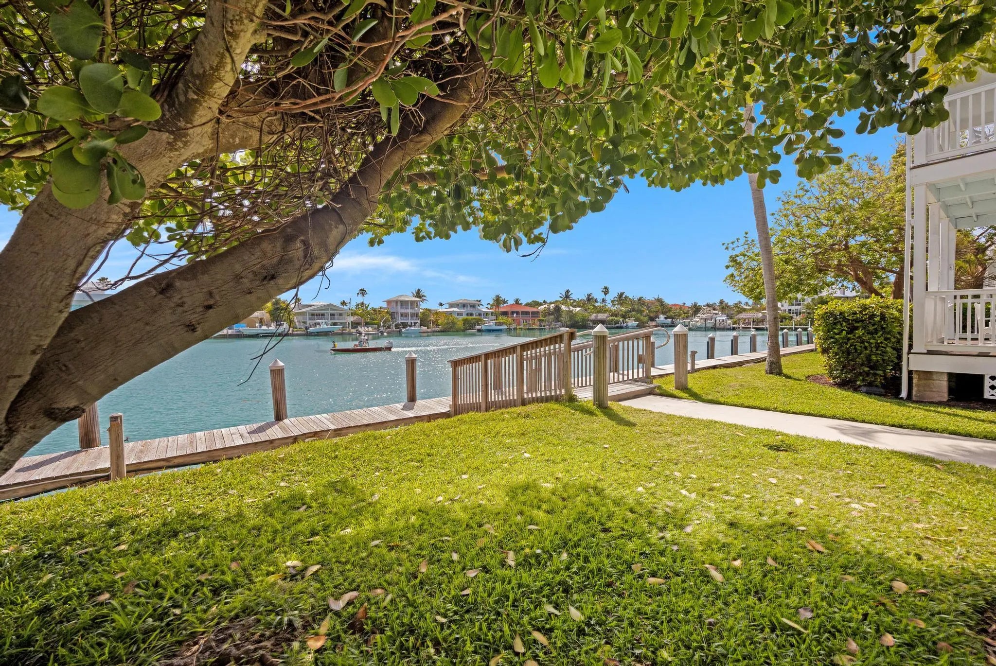 The Perfect fully furnished weekend escape, or high yield, fully managed resort style rental property! Experience the charm of the Florida Keys in this beautifully updated 2-bedroom, 1.5-bath villa at The Village at Hawks Cay. Set along a beautiful and wide canal, this waterfront property offers spectacular views and a peaceful setting ideal for relaxation and entertaining (and the color of the water truly is that amazing)! The interior was renovated a few years ago, featuring clean white cabinetry, stone countertops, a uniquely large remodeled bathroom upstairs and powder room downstairs. Rentable or ownable dock space is directly out back!Enjoy the gentle sea breeze and scenic waterway views from both upper and lower balconies -- perfect for quiet mornings or watching passing boats.