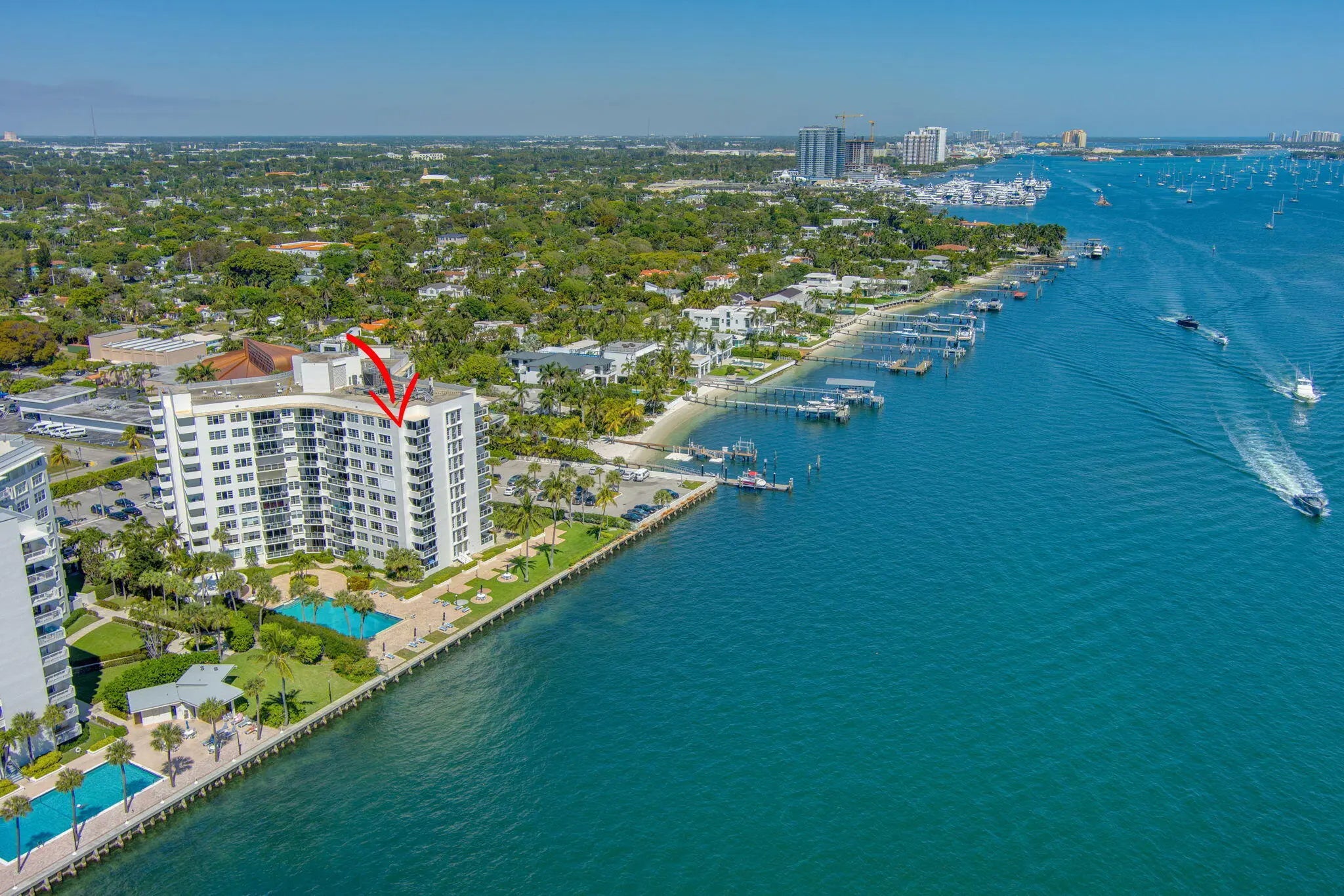 AVAILABLE UNFURNISHED ONLY AND FOR ANNUAL RENTAL. Step into the perfect blend of retro charm and modern convenience in this stylish one-bedroom condo located in one of West Palm Beach's most sought-after buildings. Perched on the first floor, this unit boasts a private entrance and gated access, making it effortless to transition from your car to your home. Enjoy breathtaking views of the pool and the shimmering Intracoastal Waterway right from your doorstep. The kitchen and bathroom have both been thoughtfully restored to celebrate its 1960s heyday, delivering a nostalgic yet fresh aesthetic--retro vibes meet contemporary functionality with sleek appliances and finishes. Offered fully furnished, this condo is move-in ready, allowing you to embrace waterfront living with ease.