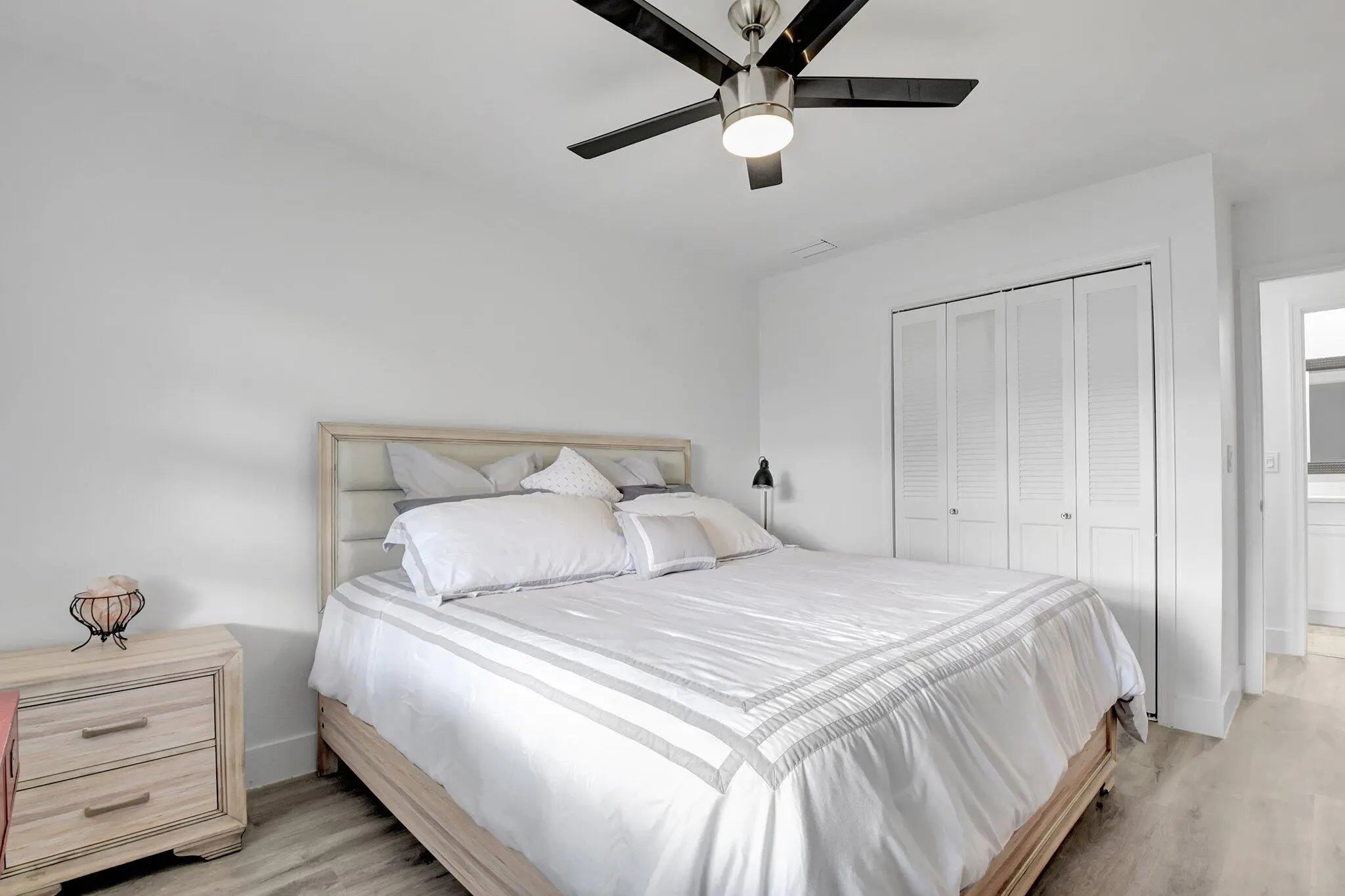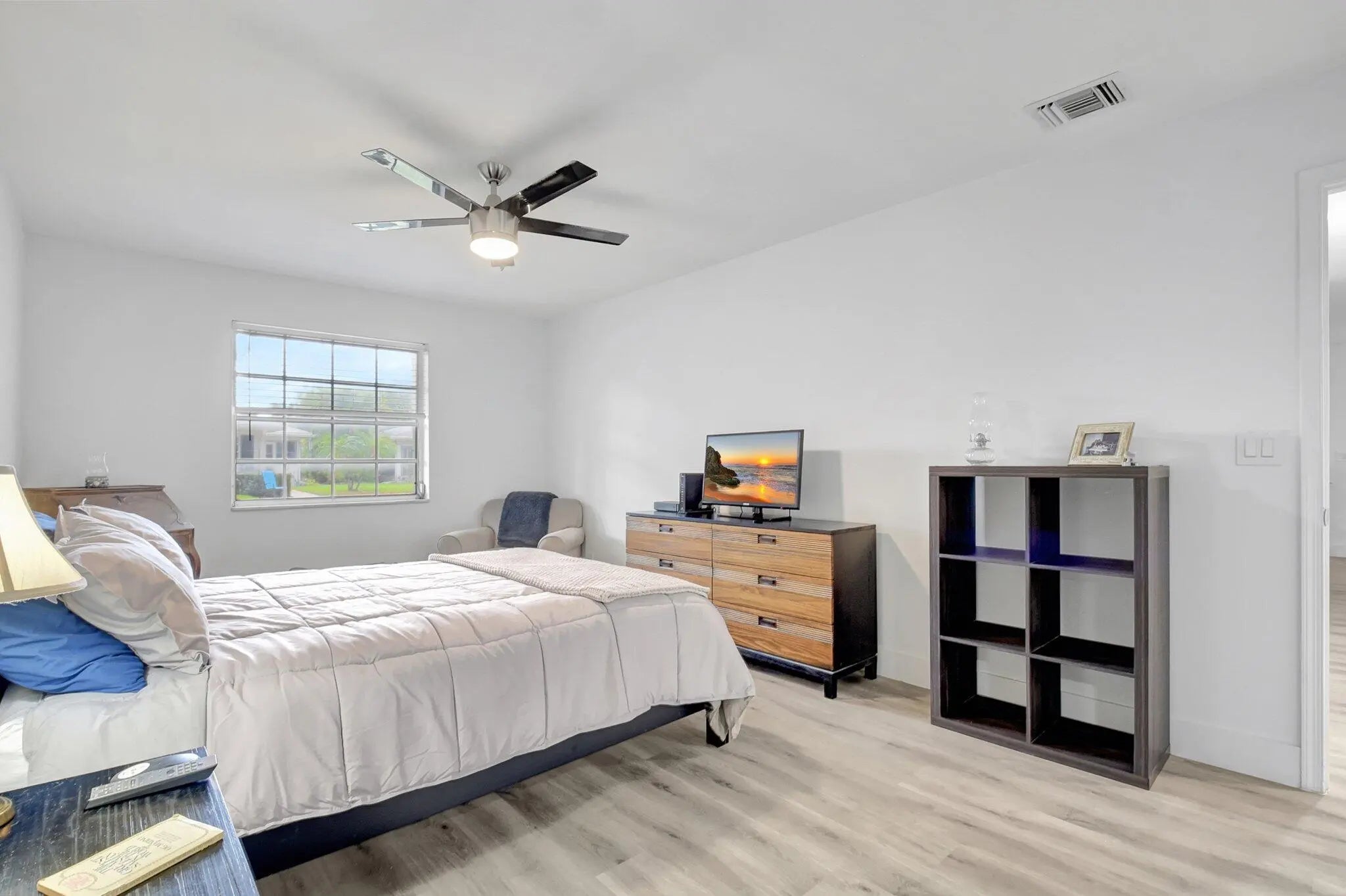 This updated villa features modern white Shaker style kitchen cabinets and quartz countertops with stainless steel appliances, renovated bathrooms and beautiful laminate flooring throughout. New HVAC installed in 2025,accordion hurricane shutters and a new roof installed in 2021 provide peace of mind all year round. Unit boasts a screened patio and Washer/Dryer housed in it's own utility closet. Large primary suite has a walk-in and 2 additional closets plus a beautiful en-suite bath. Generous second bedroom is perfect for guests or home office. Limetree is a welcoming 55+ Active Adult community centrally located in Boynton Beach, and comprised of 392 single story villas featuring white brick elevations. The community offers a blend of comfort, convenience, and vibrant social living