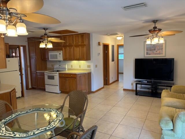 Over 55 community! - walking distance to Juno Beach and Pier! Technically a 3/2 sf home, however, legal desc. is condo.It is set up as a main home and efficiency, but must be rented as one property. Walk into a large open space to the kitchen, living room, and dining area - all with tile floors, and inside laundry. Attached efficiency has a sperate entrance, but can also be accessed through main home.There is plenty of parking with a carport on the west, and additional parking to the east. Assoc. has a club house, shuffleboard, and bocce ball court. One cat or dog less than 20 lbs. Also available seasonally for 2700 a month November 2025-April 2026.
